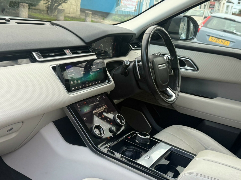 ONE OWNER FROM NEW, VISIT OUR WEBSITE FOR UPDATED STOCK WWW.CARZ4LESS.CO.UKThis 2018 Land Rover Range Rover Velar D180 R-Dynamic SE is a superb example, having been owned by just one careful keeper since new. This stylish SUV boasts a powerful yet efficient 2.0 litre diesel engine, delivering Euro 6 emissions compliance and a capable Four Wheel Drive system. The R-Dynamic SE trim level ensures a premium experience, enhanced by a host of notable features. Enjoy immersive audio with the 825W Meridian Surround Sound System, and maintain perfect comfort with Two Zone Climate Control. The 10 way powered seats offer driver memory and heated front functionality, while the Rear View Camera and Blind Spot Monitor provide added confidence and safety on every journey.This Range Rover Velar offers impressive performance, achieving 0-60mph in just 8.5 seconds, demonstrating its dynamic capability. Its fuel economy is also a significant advantage, achieving an excellent 48 mpg, making it a more economical choice compared to many similar vehicles. Furthermore, the generous boot space provides ample room for luggage or shopping, proving its practicality for everyday life and longer trips. With a substantial towing weight of 2400 kg, this Velar is also well equipped for towing needs.. 10-Way Powered Seats with Driver Memory and Heated Front, 12.3in TFT Full Digital Instrument Cluster, 20in Alloy Wheels - 10 Spoke - Style 1032 with Satin Dark Grey Finish, 325mm Front Brakes, 360 Degree Parking Aid, ABS - Anti Lock Braking System, Adaptive Dynamics, Airbags - Curtain, Airbags - Driver, Airbags - Front Passenger, All Season Tyres, Auto-Dimming - Power Fold - Heated Door Mirrors with Approach Lights, Black Roof Rails, Blind Spot Monitor, Body Coloured Roof, Bright Metal Pedals, Carpet Mats, Cruise Control and Speed Limiter, D180 Badge, DAB - Digital Audio Broadcast, Driver Condition Monitor, EPAS - Electronic Power Assisted Steering, ESP - Electronic Stability Program, Ebony Headlining, Emergency Braking, Flush Deployable Door Handles, Front Fog Lights, Gloss Black Mirrors with Narvik Black Scalps, Glovebox - Lockable, Heated Windscreen, InControl Apps, InControl Remote, Interactive Driver Display, Interior Lighting, Intrusion Sensor, Keyless Entry, Lane Departure Warning, Leather Steering Wheel with Chrome Bezel, Manually Adjustable Steering Column, Matrix LED Headlights with Signature DRL, Meridian Surround Sound System 825W, Metal Front Treadplates with R-Dynamic Branding, Metal Loadspace Scuff Plate, Morzine Headlining, Navigation Pro, Open Rear Differential, Power Socket Pack 1, Powered Gesture Tailgate, Pro Services and Wi-Fi Hotspot, Rear View Camera, Reduced Section Spare Wheel, Reverse Traffic Detection, Satin Chrome Gearshift Paddles, Shadow Aluminium Trim Finisher, Standard IP End Caps, Standard Interior, TCS - Traction Control System, TPMS - Tyre Pressure Monitoring System, Terrain Response, Torque Vectoring, Traffic Sign Recognition and Adaptive Speed Limiter, Two-Zone Climate Control, Windows - Electric Front.