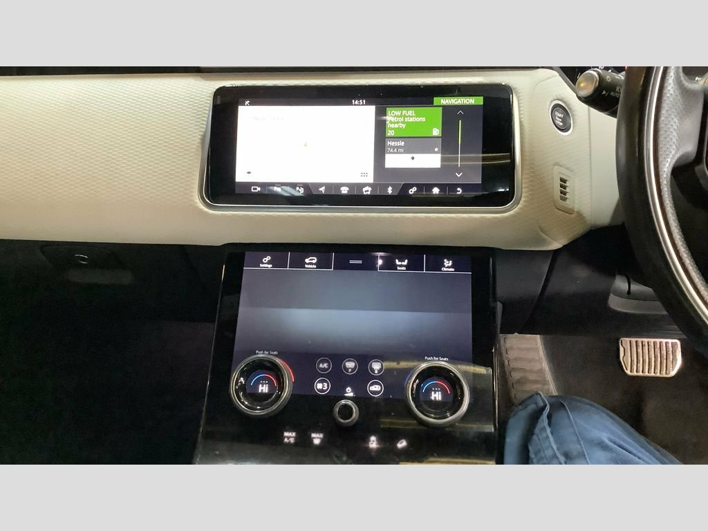 This 2018 Land Rover Range Rover Velar D180 R-Dynamic SE boasts a clear vehicle history check, offering peace of mind for its next owner. This stylish SUV features a powerful 2.0L Diesel engine paired with Four Wheel Drive, ensuring capable performance in various conditions. It meets Euro 6 emission standards and comes with an MOT valid until July 2026. Notable features include convenient HomeLink for garage door operation, striking 20in Alloy Wheels with a Gloss Black finish, and a luxurious Fixed Panoramic Roof that floods the cabin with natural light. Keyless entry adds to the ease of use, while Park Assist with front and rear sensors makes manoeuvring simple. The Range Rover Velar D180 R-Dynamic SE offers an impressive 0-60mph acceleration time of just 8.5 seconds, demonstrating its dynamic capability. Its substantial towing weight of 2400 kg makes it a practical choice for those needing to tow. Furthermore, the generous boot space provides ample room for luggage or shopping, highlighting its versatility for everyday life and adventures. These elements combined show how this Range Rover Velar is a well equipped and capable vehicle. Perforated Windsor Leather - Light Oyste, Santorini Black, Illuminated Metal Loadspace Scuff Plate, Heated Steering Wheel, Privacy Glass, 18in Full Size Spare Wheel, HomeLink - Garage Door Opener, 20in Alloy Wheels - 7 Spoke - Style 7014, Fixed Panoramic Roof, 10-Way Powered Seats with Driver Memory , 20in Alloy Wheels - 10 Spoke - Style 103, 325mm Front Brakes, 360 Degree Parking Aid, 40-20-40 Split Fold Rear Seat, ABS - Anti Lock Braking System, Acoustic Laminated Windscreen, Adaptive Dynamics, Air Quality Sensor, Airbags - Curtain, Airbags - Driver, Airbags - Front Passenger, Airbags - Front Side, All Season Tyres, Auto-Dimming - Power Fold - Heated Door , Auto-Dimming Interior Rear View