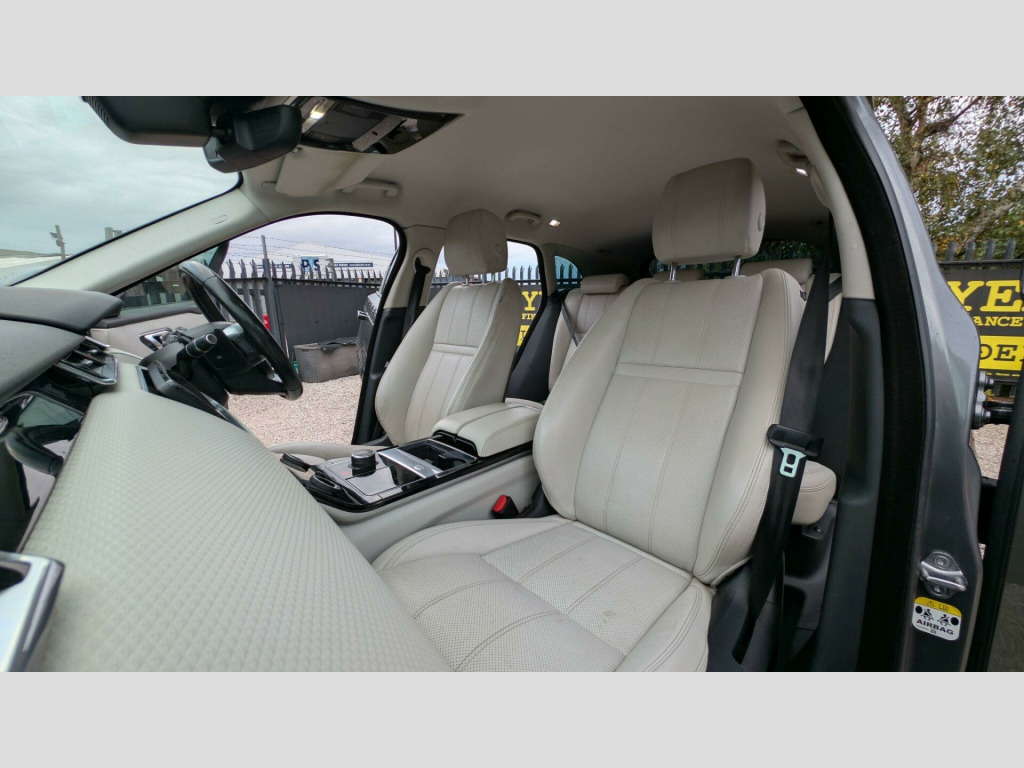 This 2018 Land Rover Range Rover Velar D180 S is presented with a clear vehicle history check, offering peace of mind for its next owner. This stylish SUV features a 2.0 litre diesel engine paired with Four Wheel Drive, ensuring capable performance in various conditions. As a Euro 6 compliant vehicle, it meets modern emissions standards. The S trim level includes desirable features such as 21 inch alloy wheels with a Satin Dark Grey finish, Adaptive Dynamics for a refined ride, and Two Zone Climate Control for personalised comfort. For convenience and safety, it also comes equipped with a Rear View Camera and Rear Parking Aid.The Range Rover Velar D180 S boasts a substantial boot space, making it ideal for families and those who require ample storage. Its acceleration from 0 to 60 miles per hour in just 8.5 seconds demonstrates its responsive power. The towing weight of 2400 kg further enhances its versatility, allowing for the transport of trailers or caravans. These highlights, including the advanced driver aids and impressive performance figures, position this Velar as a compelling choice compared to other vehicles in its class. -way powered seats with driver memory and heated front, 19in alloy wheels - 5 spoke - style 5046, 325mm front brakes, abs - anti lock braking system, adaptive dynamics, airbags - curtain, airbags - driver, airbags - front passenger, all season tyres, analogue dials with central tft display, auto-dimming - power fold - heated door mirrors with approach lights, black gearshift paddles, black roof rails, body coloured roof, carpet mats, cosmic grey trim finisher, cruise control and speed limiter, d180 badge, dab - digital audio broadcast, epas - electronic power assisted steering, esp - electronic stability program, emergency braking, flush deployable door handles, glovebox - lockable, heated windscreen, incontrol apps, incontrol remote, interior lighting, intrusion sensor, keyless entry, lane departure warning, leather steering wheel, light oyster headlining, manually adjustable steering column, meridian sound system 380w, metal front treadplates, metal loadspace scuff plate, morzine headlining, navigation pro, open rear differential, parking aid - rear, power socket pack 1, powered gesture tailgate, premium led headlights with signature drl, pro services and wi-fi hotspot, rear view camera, reduced section spare wheel, standard ip end caps, standard interior, tcs - traction control system, tpms - tyre pressure monitoring system, terrain response, torque vectoring, two-zone climate control, windows - electric front, 21in alloy wheels - 10 spoke - style 1033 with satin dark grey finish