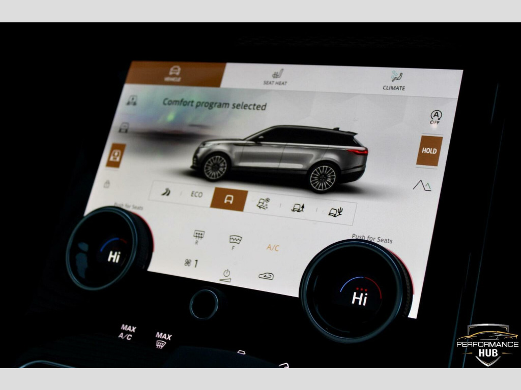 We are proud to present this Range Rover Velar now in stock with an array of extras from factory finished in the beautiful White . This car has phenomenal spec including, Meridian sound system, virtual cockpit, driver memory seats, lane assist, 360 reverse camera, cruise control, dual zone climate control, keyless start, daytime running headlights, upgraded wheels, contrast roof, DAB , sat nav, electric seats, satellite navigation, privacy glass, heated seats, folding side mirrors, parking sensors, xenon headlights, plus much more