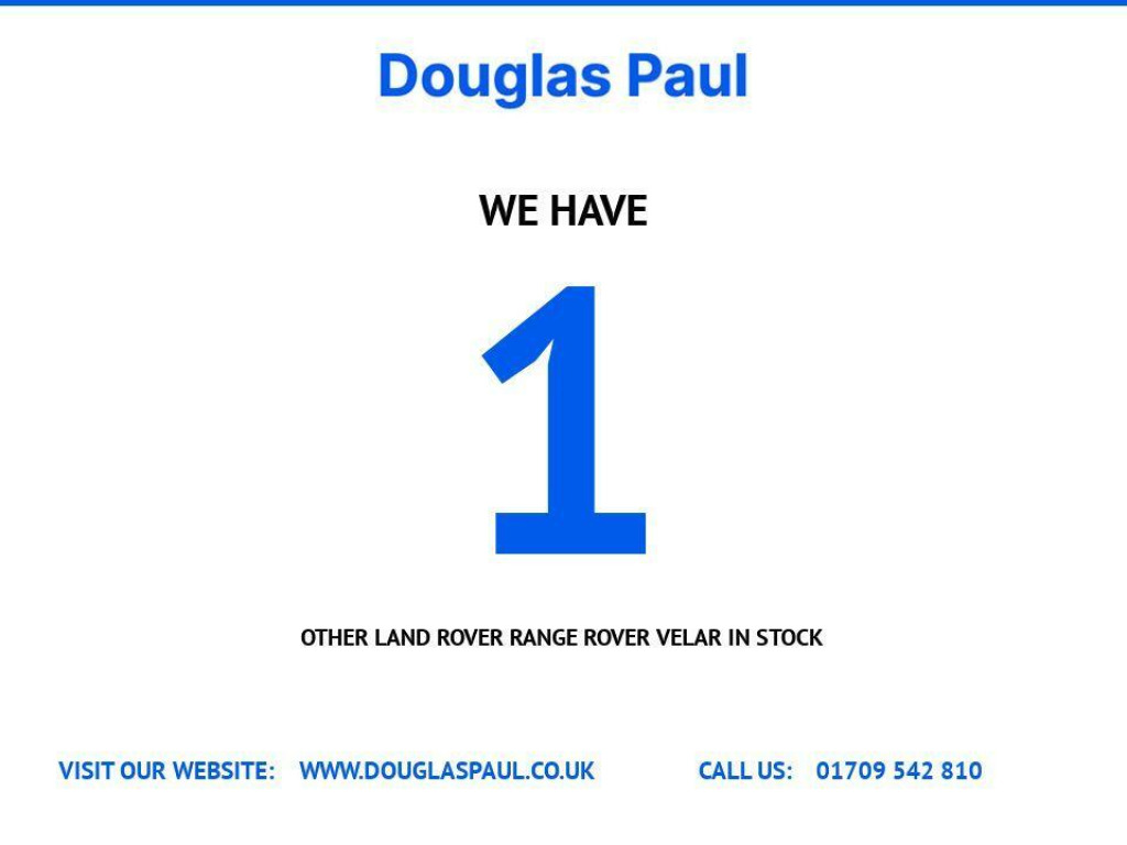 . 12.3in TFT Full Digital Instrument Cluster, 20-Way Powered Seats with Driver-Passenger Memory - Massage and Heated-Cooled Front, 21in Alloy Wheels - 10 Spoke - Style 1033 with Satin Dark Grey Finish, 325mm Front Brakes, 360 Degree Parking Aid, 40-20-40 Split Fold Rear Seat, ABS - Anti Lock Braking System, Acoustic Laminated Windscreen, Adaptive Cruise Control with Stop and Go, Adaptive Front Lighting, Air Quality Sensor, Airbags - Curtain, Airbags - Driver, Airbags - Front Passenger, Airbags - Front Side, All Season Tyres, Auto-Dimming - Power Fold - Heated Door Mirrors with Approach Lights, Auto-Dimming Interior Rear View Mirror, Automatic Headlight Levelling, Automatic Headlights, Automatic High Beam Assist, Blind Spot Assist, Bluetooth Connectivity, Body Coloured Roof, Brake Pad Wear Indicator, Bright Metal Pedals, CBC - Cornering Brake Control, Carpet Mats, Coil Suspension, Cornering Lights, D240 Badge, DAB - Digital Audio Broadcast, DSC - Dynamic Stability Control, Driver Condition Monitor, EBA - Emergency Brake Assist, EBD - Electronic Brake-Force Distribution, EPAS - Electronic Power Assisted Steering, EPB - Electronic Park Brake, ETC - Electronic Traction Control, Ebony Headlining, Electric Windows with One-Touch Open-Close and Anti-Trap, Electrically Adjustable Steering Column, Emergency Braking, Extended Leather Upgrade, Flush Deployable Door Handles, Follow Me Home Lighting, Front Fog Lights, Front and Rear Cupholders, Gloss Black Mirrors with Narvik Black Scalps, Glovebox - Lockable, HDC - Hill Descent Control, HSE Badge, Headlight Powerwash, Heated Rear Window with Timer, Heated Windscreen, High Speed Emergency Braking, Hill Launch Assist, Illuminated Vanity Mirrors, InControl Apps, InControl Remote, Interactive Driver Display, Interior Lighting, Intrusion Sensor, Keyless Entry, Lane Keep Assist, Leather Steering Wheel with Atlas Bezel, Loadspace Cover, Low Traction Launch, Matrix LED Headlights with Signature DRL, Meridian Surround Sound System 825W, Metal Front Treadplates with R-Dynamic Branding, Metal Loadspace Scuff Plate, Morzine Headlining, Navigation Pro, Open Differential with Torque Vectoring by Braking, Park Assist, Passive Front Headrests, Passive Suspension, Power Operated Child Locks, Power Socket Pack 1, Powered Gesture Tailgate, Pro Services and Wi-Fi Hotspot, R-Dynamic Exterior Pack, RSC - Roll Stability Control, Rain Sensing Windscreen Wipers, Rear Centre Headrest, Rear ISOFIX, Rear Traffic Monitor, Rear View Camera, Rear Wash Wiper, Reduced Section Spare Wheel, Satin Chrome Gearshift Paddles, Seat Belt Reminder, Shadow Aluminium Trim Finisher, Standard IP End Caps, TPMS - Tyre Pressure Monitoring System, TSA - Trailer Stability Assist, Tailgate - Boot Lid Spoiler, Terrain Response with Dynamic Program, Torque Vectoring, Traffic Sign Recognition and Adaptive Speed Limiter, Two-Zone Climate Control, Unpainted Brake Calipers, Velar and R-Dynamic Badge, Voice Control, Privacy Glass.