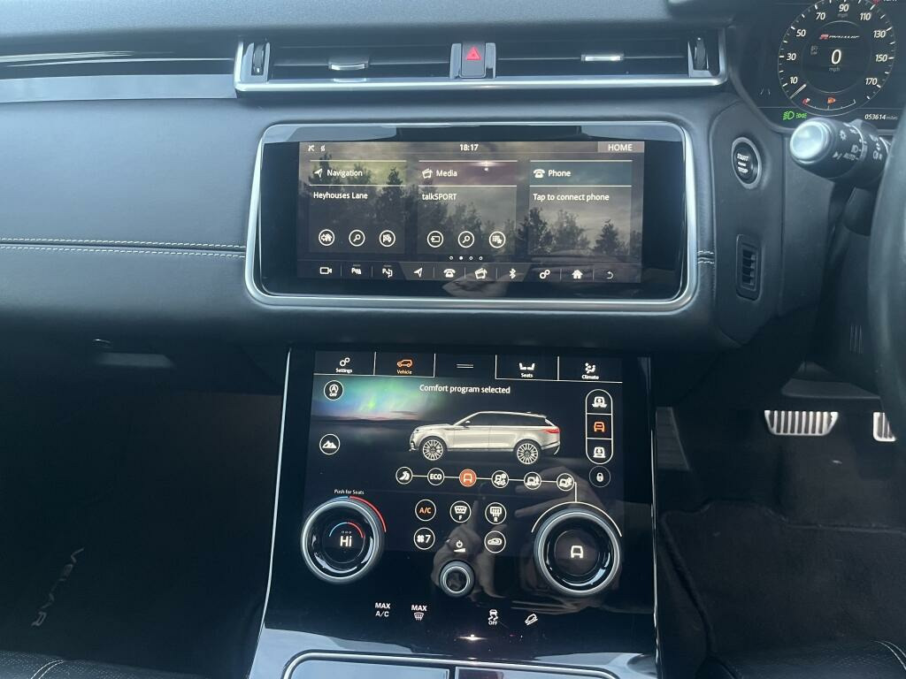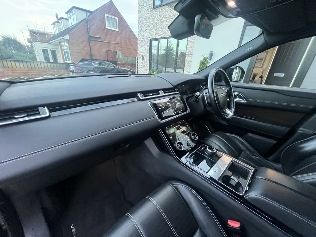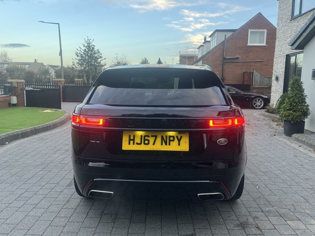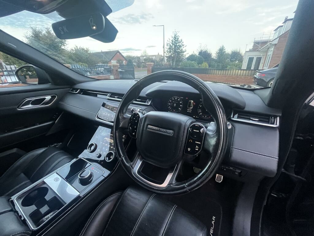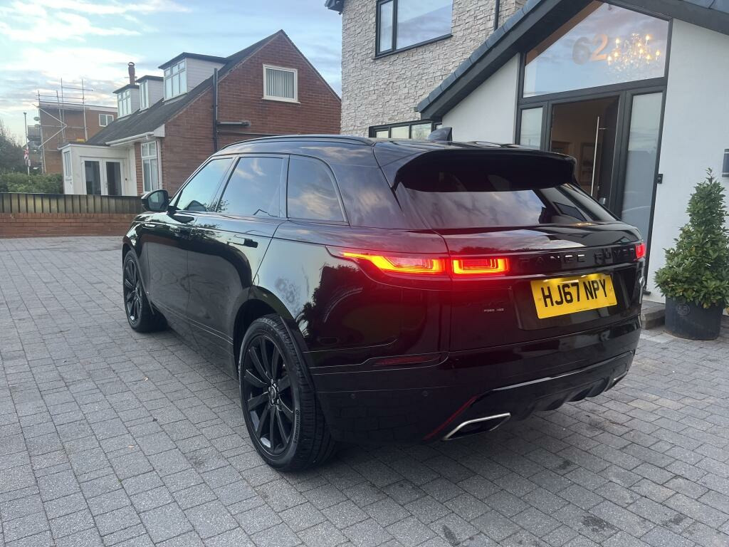 This stunning 2017 Range Rover Velar is finished in sleek Santorini Black with a matching full black leather interior, giving it a sophisticated and timeless look. With just 53,000 miles on the clock, it offers a perfect balance of performance, comfort, and style. Meticulously maintained and in excellent condition inside and out, this Velar is the ideal choice for anyone looking for a luxury SUV that stands out on the road. The black-on-black finish gives it a bold, executive presence, while the refined interior and advanced tech ensure every journey is first-class. Backed by service history and available with full dealer facilities. Call today to book an appointment to view the car.. Adaptive cruise control, Adaptive steering, Digital Instrument Cluster, Gesture tailgate/boot lid opening and closing, Multifunction steering wheel, Navigation system, Service interval indicator, Steering wheel audio controls, Travel data recorder, Trip computer, Windscreen heating, Leather seat upholstery, Solid Paint, 18'' Alloy wheels, 19'' Alloy wheels, 20'' Alloy wheels, Alloy wheels, Space saver spare wheel, Spare wheel, 12V power outlet in luggage area, Audio remote control, Centre console media control touchpad, Digital radio, Front centre armrest, Front head restraints, Front interior 12V power outlet, Radio/CD, Rear armrest, Rear headrests, Rear interior 12V power outlet, Steering wheel rake adjustment, Steering wheel reach adjustment, USB input, Body coloured bumpers, Roof rails, Windscreen wash-nozzle heated, Alarm, Immobiliser, Remote central locking.