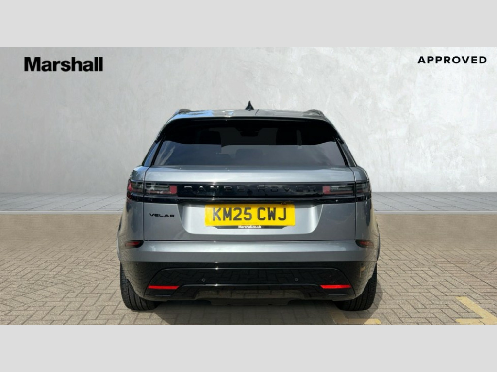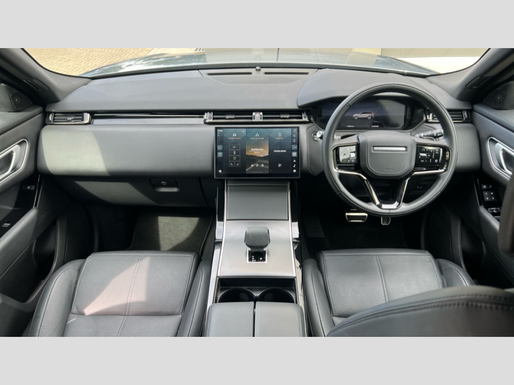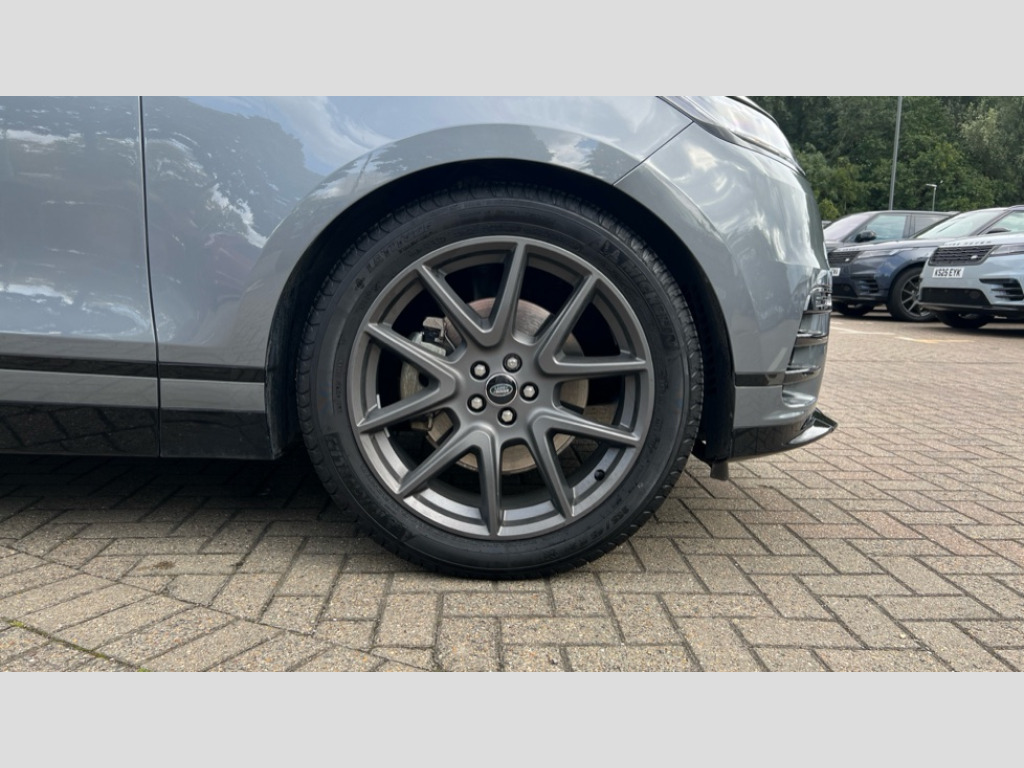 Extended Warranties are available – ask for details Adaptive cruise control with steering assist, Android Auto, Apple CarPlay, Blind spot assist, Bluetooth connectivity, Brake pad wear indicator warning light, Driver condition monitor, eCall emergency call system, Front and rear parking aid, InControl remote, Land Rover InControl apps, Lane keep assist, Pivi pro with connected navigation, Rear collision monitor, Rear traffic monitor, Service indicator, Speed proportional electronic power assisted steering (EPAS), Traffic sign recognition with adaptive speed limiter, Trip computer, Voice control system, Wireless device charging, 8 speed automatic transmission, Adaptive dynamics, All terrain progress control, Electronic air suspension, Open differential with torque vectoring by braking, Single speed transfer box, DAB radio, Steering wheel mounted controls, 3rd brake light, Acoustic laminated windscreen, Auto dimming interior rear view mirror, Automatic headlamp levelling, Automatic headlights, Body coloured bumpers, Boot protection plate, Electric windows with one touch open/close and anti trap, Flush deployable exterior door handles, Follow me home headlights, Heated rear window with timer, Heated washer jets, Heated windscreen, Metal front tread plates, Metal load space scuff plates, Pixel LED headlights with signature DRL, Power fold, auto-dimming, heated door mirrors with memory and approach lights, Rain sensor windscreen wipers, Rear animated directional indicators, Rear fog lights, Rear side wing doors, Rear wash/wipe, Tailgate/boot lid spoiler, Trailer stability assist, Velar badge, 3 seat bench in 2nd row, Ambient lighting, Bright metal pedals, Carpet mats, Driver/passenger sunvisors with illuminated vanity mirrors, Ebony morzine headlining, Electrically adjustable steering column, Extended leather upgrade, Heated steering wheel, Isofix system on outer rear seats, Loadspace cover, Overhead lighting console, Overhead stowage for sunglasses, Passive front headrests, Rear air vents, Rear centre headrest, Single front passenger seat, Twin front cupholders, Twin sliding front centre armrest, Online pack with data plan - Velar, Power socket pack 2 - Velar, 355mm Front and 325mm Rear brakes, 3x3 point rear seatbelts, Anti-lock braking system (ABS), Cornering brake control, Curtain airbags, Customer configurable autolock, Door side intrusion beams, Driver airbag, DSC - Dynamic Stability Control, Electronic brake force distribution, Electronic parking brake, Electronic traction control, Emergency braking, Front and rear seatbelt reminder, Hill descent control, Hill launch assist, Low traction launch, Passenger airbag, Power operated child locks, Rear airbags, Roll stability control, Side airbags, Tyre pressure monitoring system (TPMS), Global lock and unlock switch on driver door, Immobiliser, Intrusion sensor, Keyless entry, Lock only switch on front passenger door, Locking wheel nuts, Perimetric alarm, Remote central locking, All season tyres
