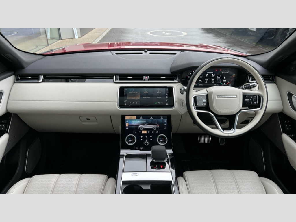 Land Rover Range Rover Velar 2.0 D200 R-Dynamic HSE 5dr Auto 10" touch screen, Adaptive cruise control with steering assist, Android Auto, Apple car play, Blind spot assist, Bluetooth connectivity, Brake pad wear indicator warning light, Driver condition monitor, InControl remote, Interactive Driver display instrument cluster, Land Rover InControl apps, Lane keep assist, Pivi pro connected includes upgraded infotainment, smart settings, connected navigation pro, Nuance speech licence, Push button start, Rear collision monitor, Rear traffic monitor, Service indicator, Speed proportional electronic power assisted steering (EPAS), Traffic sign recognition with adaptive speed limiter, Trip computer, Voice control system, 8 speed automatic transmission, Adaptive dynamics, All terrain progress control, Electronic air suspension, Open differential with torque vectoring by braking, Single speed transfer box, Digital Audio Broadcast radio-DAB, Steering wheel mounted controls, Acoustic laminated windscreen, Adaptive front lighting system, Auto dimming interior rear view mirror, Automatic headlamp levelling, Automatic headlights, Body coloured bumpers, Boot protection plate, Electric heated/power fold door mirrors with approach lights and auto dimming driver side, Electric windows with one touch open/close and anti trap, Flush deployable exterior door handles, Follow me home headlights, Heated rear window with timer, Heated windscreen, HSE badge, Metal load space scuff plates, Rain sensor windscreen wipers, Rear fog lights, Rear wash/wipe, Tailgate/boot lid spoiler, Trailer stability assist, Velar and R-dynamic badge, Ambient lighting, Bright metal pedals, Driver/passenger sunvisors with illuminated vanity mirrors, Electric adjustable steering column, Isofix system on outer rear seats, Loadspace cover, Overhead lighting console, Overhead stowage for sunglasses, Passive front headrests, Rear air vents, Rear centre headrest, Satin chrome gearshift paddles, Twin front cupholders, Twin sliding front centre armrest, Online pack with data plan - Velar, 355mm front brakes and 325mm rear brakes, 3x3 point rear seatbelts, Anti-lock braking system (ABS), Cornering brake control, Curtain airbags, Customer configurable autolock, Door side intrusion beams, Driver airbag, DSC - Dynamic Stability Control, Electronic brake force distribution, Electronic parking brake, Electronic traction control, Emergency brake assist, Emergency braking, Front and rear seatbelt reminder, Hill descent control, Hill launch assist, Low traction launch, Passenger airbag, Power operated child locks, Rear airbags, Roll stability control, Side airbags, Tyre pressure monitoring system, Unpainted brake calipers, Global lock and unlock switch on driver door, Immobiliser, Intrusion sensor, Keyless entry, Lock only switch on front passenger door, Locking wheel nuts, Perimetric alarm, Remote central locking