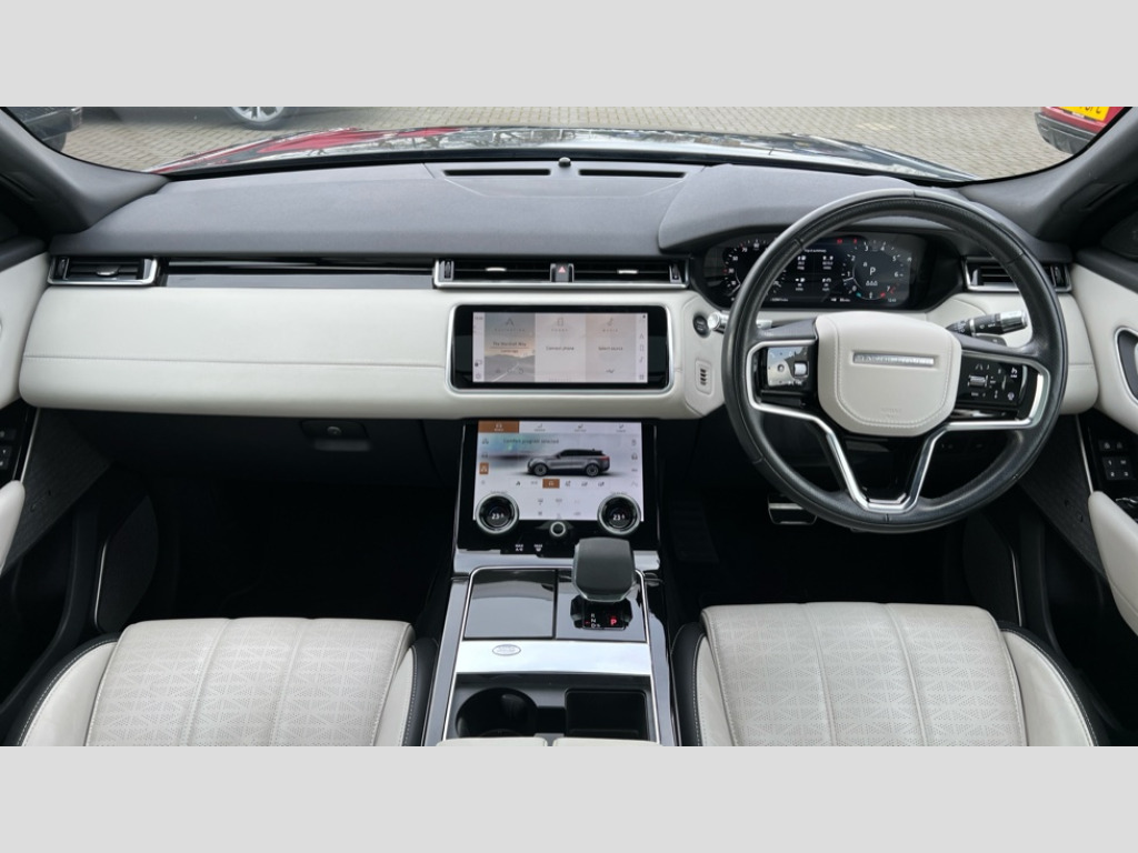 Land Rover Range Rover Velar 2.0 P250 R-Dynamic HSE 5dr Auto 10" deployable touchscreen, Adaptive cruise control with steering assist, Android Auto, Apple car play, Blind spot assist, Bluetooth connectivity, Brake pad wear indicator warning light, Driver condition monitor, eCall emergency call system, InControl remote, Land Rover InControl apps, Lane keep assist, Pivi pro with connected navigation, Push button start, Rear collision monitor, Rear traffic monitor, Service indicator, Speed proportional electronic power assisted steering (EPAS), Traffic sign recognition with adaptive speed limiter, Trip computer, Voice control system, 8 speed automatic transmission, Adaptive dynamics, All terrain progress control, Electronic air suspension, Open differential with torque vectoring by braking, Single speed transfer box, Digital Audio Broadcast radio-DAB, Steering wheel mounted controls, Acoustic laminated windscreen, Adaptive front lighting system, Auto dimming interior rear view mirror, Automatic headlamp levelling, Automatic headlights, Body coloured bumpers, Boot protection plate, Electric heated/power fold door mirrors with approach lights and auto dimming driver side, Electric windows with one touch open/close and anti trap, Flush deployable exterior door handles, Follow me home headlights, Heated rear window with timer, Heated washer jets, Heated windscreen, LED 3rd brake light, Metal load space scuff plates, No badge - Removes engine badge, Rain sensor windscreen wipers, Rear animated directional indicators, Rear fog lights, Rear side wing doors, Rear wash/wipe, Tailgate/boot lid spoiler, Trailer stability assist, Velar and R-dynamic badge, 3 seat bench in 2nd row, Ambient lighting, Bright metal pedals, Driver/passenger sunvisors with illuminated vanity mirrors, Electric adjustable steering column, Isofix system on outer rear seats, Loadspace cover, Overhead lighting console, Overhead stowage for sunglasses, Passive front headrests, Rear air vents, Rear centre headrest, Satin chrome gearshift paddles, Single front passenger seat, Twin front cupholders, Twin sliding front centre armrest, Online pack with data plan - Velar, 355mm front brakes and 325mm rear brakes, 3x3 point rear seatbelts, Anti-lock braking system (ABS), Cornering brake control, Curtain airbags, Customer configurable autolock, Door side intrusion beams, Driver airbag, DSC - Dynamic Stability Control, Electronic brake force distribution, Electronic parking brake, Electronic traction control, Emergency brake assist, Emergency braking, Front and rear seatbelt reminder, Hill descent control, Hill launch assist, Low traction launch, Passenger airbag, Power operated child locks, Rear airbags, Roll stability control, Side airbags, Tyre pressure monitoring system, Unpainted brake calipers, Global lock and unlock switch on driver door, Immobiliser, Intrusion sensor, Keyless entry, Lock only switch on front passenger door, Locking wheel nuts, Perimetric alarm, Remote central locking