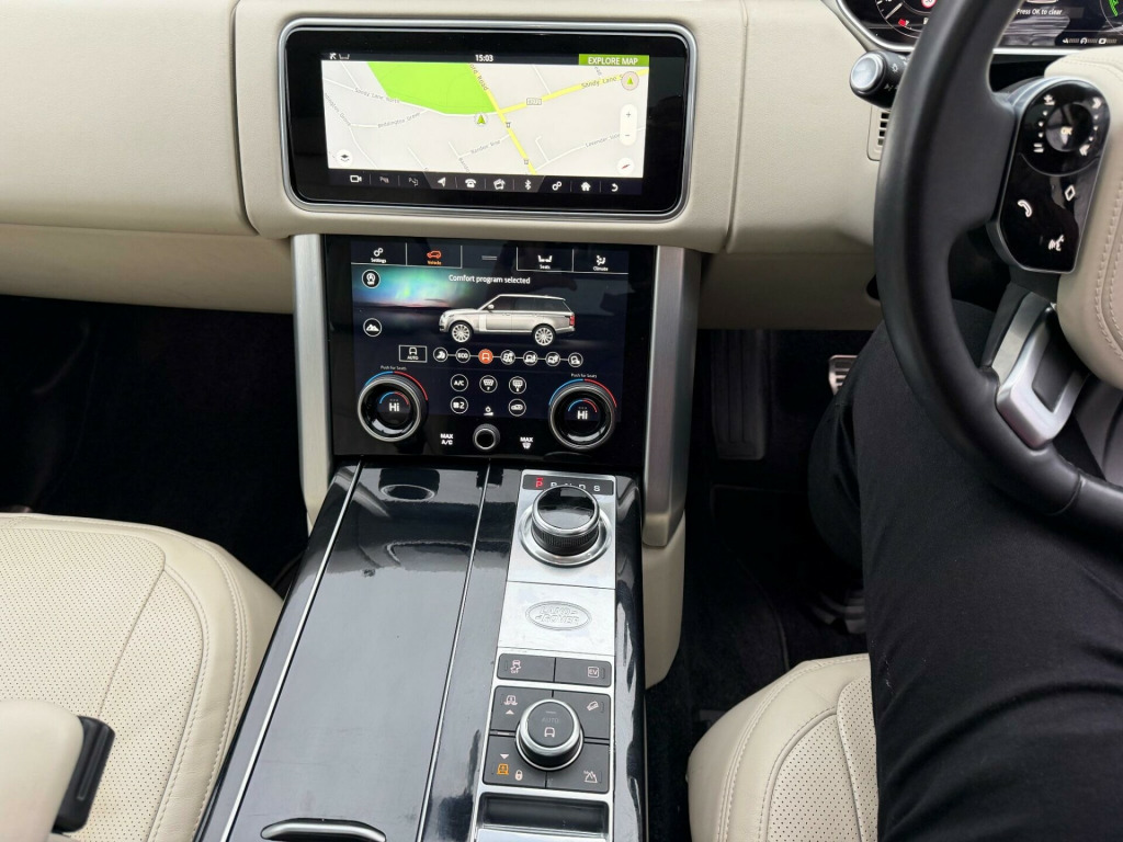 This 2021 Land Rover Range Rover P400e Westminster is a superb example, having had only one owner since new. It boasts a sophisticated 2.0 litre petrol plug in hybrid engine, paired with a capable four wheel drive system, and meets Euro 6 emissions standards. The Westminster trim level ensures a premium experience, enhanced by features such as Bluetooth connectivity, automatic headlights, and striking Matrix LED headlights with signature daytime running lights. Navigating tight spaces is made effortless with front and rear parking aids, while the heated steering wheel adds a touch of comfort during colder journeys.With an impressive acceleration of 0 to 60 miles per hour in just 6.0 seconds, this Range Rover offers a dynamic driving experience. Its robust towing weight of 2500 kg makes it a versatile choice for various needs. These highlights demonstrate the vehicle's superior performance and advanced technology compared to other similar models, offering a refined and powerful drive. v power socket, 20-way heated front seats with power recline heated rear seats, 21in alloy wheels - 7 split spoke style 7001 with light silver diamond turned finish, abs - anti lock braking system, acoustic laminated windscreen, adaptive dynamics, airbags - curtain, airbags - front side, android auto, apple carplay, armrests - front - driver and passenger, atlas exterior accents, auto access height, auto-dimming interior rear view mirror, auto-dimming power fold - heated door mirrors with memory and approach lights, automatic headlights, black gearshift paddles, bluetooth connectivity, bonnet and tailgate lettering - atlas, bright metal pedals, cbc - cornering brake control, carpet mats, centre console with storage and armrest, centre high mounted stop light, configurable ambient interior lighting, connect pro pack, cruise control and speed limiter, customer configurable autolock, customer configurable single point entry, dab - digital audio broadcast, dsc - dynamic stability control, ebd - electronic brake-force distribution, epas - electronic power assisted steering, epb - electronic park brake, etc - electronic traction control, electric windows with one-touch open-close and anti-trap, electrical towing preparation, electrically adjustable steering column, electronic air suspension, emergency braking, follow me home lighting, front airbags with passenger seat occupant detector, front bumper accent - atlas, front centre console cooler compartment, front fog lights, front grille mesh - gloss black, front grille mesh edging - atlas, front and rear cupholders, front and rear grab handles, front and rear parking aid, front and rear recovery eyes, glovebox - lockable, grey anodised brake calipers with land rover script, hdc - hill descent control, headlight power wash, heated rear window, heated windscreen, hill launch assist, illuminated metal treadplates with brand-name script, interactive driver display, intrusion sensor, keyless entry, laminated front and rear side glass, lane departure warning, leather steering wheel, loadspace compartment light, loadspace cover - hinged with hardcover, locking wheel nuts, low traction launch, luggage tie-downs in loadspace, matrix led headlights with signature drl, meridian surround sound system, mirror caps - body coloured, multi-function steering wheel, navigation pro, no badges, no cd-dvd player, no rear seat entertainment, non smokers pack, perimetric and volumetric alarm with engine immobilisation, power operated child locks, powered gesture tailgate - boot lid, privacy glass, pro services and wi-fi hotspot, protect, public charging cable, push button start, rsc - roll stability control, rain sensing windscreen wipers, rear centre armrest, rear fog lights, rear isofix, rear lights - led, rear view camera, rear wash wiper, remote premium, roof - body coloured, secure tracker pro (12 month subscription from new), side accent and door graphic - atlas, side repeater indicators in mirror, sliding panoramic roof, soft door close, steering wheel - heated, suedecloth headlining - cirrus, suedecloth headlining - ivory, tpms - tyre pressure monitoring system, tsa - trailer stability assist, tv - digital, tailgate finisher in atlas, terrain response 2, three zone climate control, touch pro duo, trip computer, twin blade sunvisor with illuminated vanity mirrors, twin tailpipes, tyre repair system, usb sockets, veneer - grand black, voice control