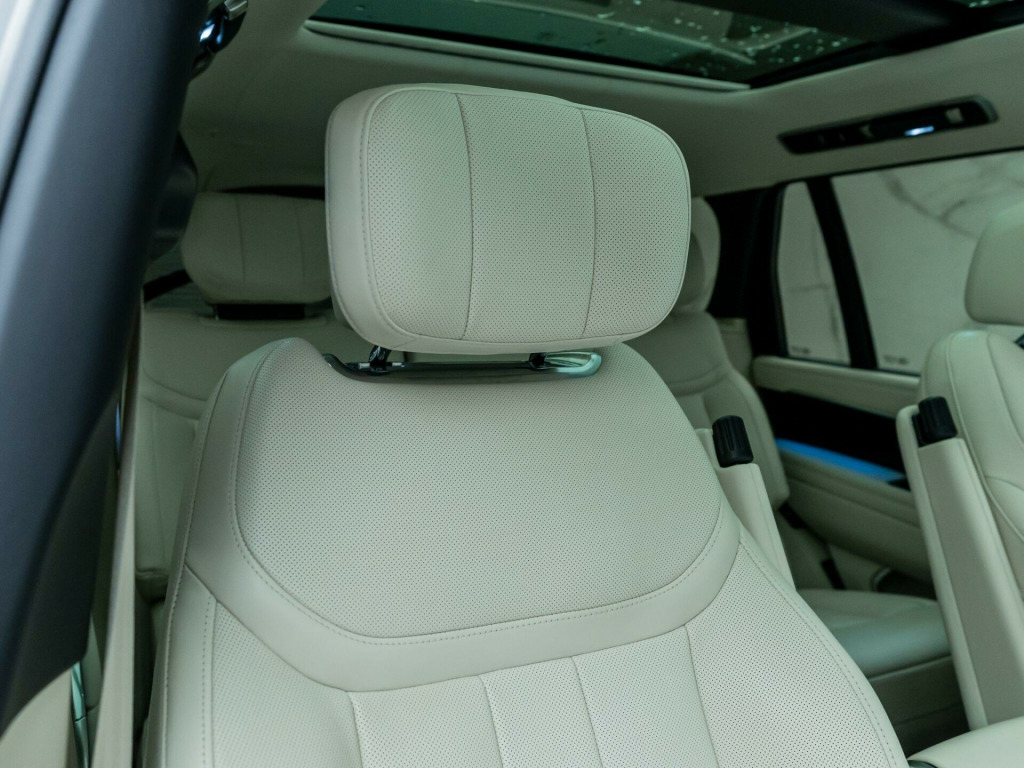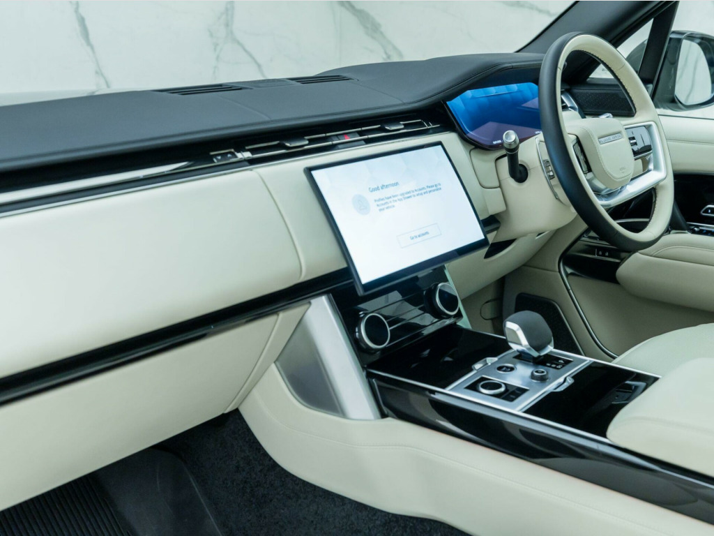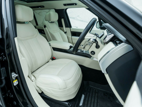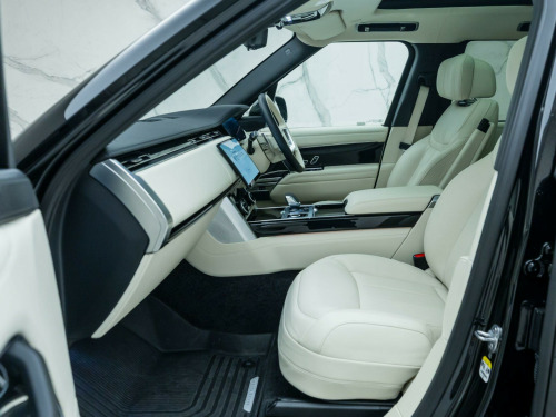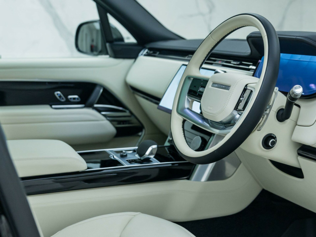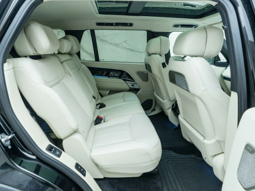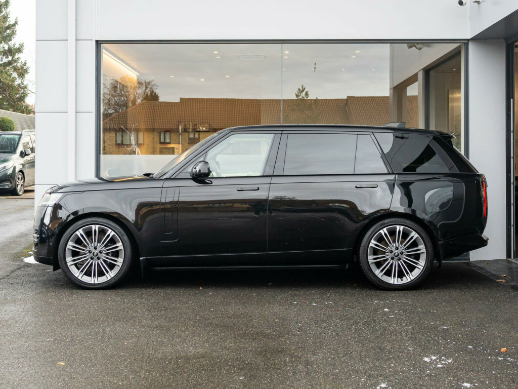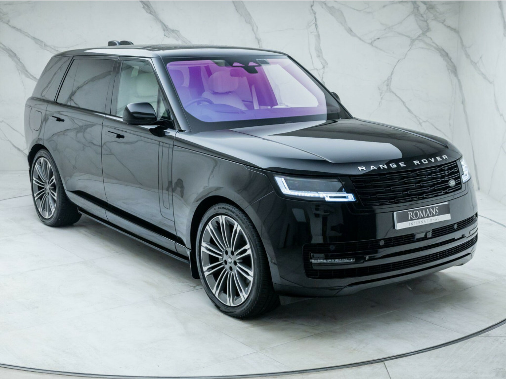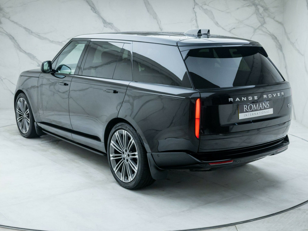Finished in Santorini Black Metallic Paint with Perlino Leather - Desirable Long Wheelbase Variant with 7 Seats - Desirably Equipped with Deployable Side Steps - Land Rover Manufacturer’s Warranty until May 2026 - UK SuppliedOptional Extras:23-Inch Style 1075 Diamond Turned Wheels with Gloss Dark Grey ContrastSantorini Black Metallic PaintDeployable Side StepsSoft Grain Leather Steering WheelCaraway Perforated Semi Aniline Leather InteriorPerlino Leather HeadliningGrand Black VeneerStandard Features:3D Surround Camera4 Wheel SteeringAdaptive Cruise Control with Steering AssistApple CarPlayBlind Spot AssistClearSight Interior Rear View MirrorDigital Audio Broadcast (DAB) RadioElectric Rear Side Window Sun BlindsHead Up DisplayHeated Steering WheelMeridian 3D Surround Sound SystemPark AssistSliding Panoramic RoofSoft Close DoorsSV Bespoke Floor Mats. 23-Inch Style 1075 Diamond Turned Wheels with Gloss Dark Grey Contrast, Santorini Black Metallic Paint, Deployable Side Steps, Soft Grain Leather Steering Wheel, Caraway Perforated Semi Aniline Leather Interior, Perlino Leather Headlining, Grand Black Veneer.