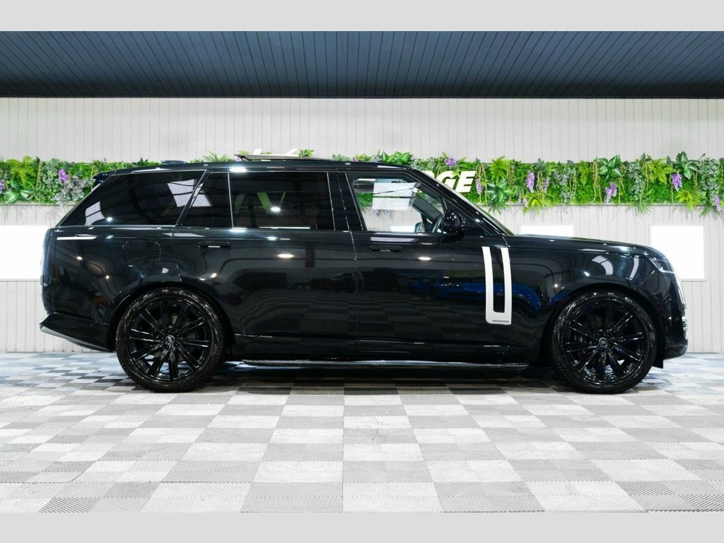 Rare Range Rover 2023 D350 Autobiography LWB. 1 Owner (+ LR Dealer) Why is the 5 seat LWB configuration so sought after? The 5-seat LWB offers vast rear space and maximum boot volume, perfect if you have children in the back or professionally drive VIP guests. While the 7-seat LWB adds a functional third row (best for kids/occasional adults) but sacrifices significant cargo room behind it, with the third row not folding perfectly flat like the standard 5-seat model's seats, creating a slightly awkward, less deep load space even when folded. The D350 MHEV is the best engine choice, giving you all the power you could possibly need, whilst still providing excellent economy. Finished in the perfect combination of Santorini Black coachwork over Ebony perforated Semi-Aniline leather seats with Ebony & matt black ash interior. The Exterior is finished with optional deployable side steps, 22" multi spoke gloss black alloy wheels, Silver anthracite exterior pack and full privacy glass. It also has the full Pixel Matrix LED headlight and dynamic LED rear lights. The interior is sumptuous ebony soft leather with matt black ash wood trim. Features include the Rear touchscreen control system, full surround sound by Meridian. Electric recline heated & cooled rear seats. Electric front heated and cooled massaging memory seats. 360 surround cameras, Adaptive cruise and lane assist, blind spot warning, 4-Zone climate control, Head up display, Heated leather steering wh 12V Power Socket, 13.1in Touchscreen, 22in Alloy Wheels - 1073 Style Diamond T, 24-Way Heated and Cooled - Massage Elect, 3D Surround Camera, ABS - Anti Lock Braking System, ATPC - All Terrain Progress Control, Active Damper Technology System, Adaptive Cruise Control with Steering As, Air Quality Sensor, Airbags - Front Side, All Terrain lnfo Centre, All Wheel Steering, Android Auto, Animated Directional Indicators, Apple CarPlay, Auto-Dimming Power Fold - Heated Door Mi, Auto-Folding Loadspace Cover, Autobiography Badge, Autobiography Exterior Pack, Automatic Access Height, Automatic Headlights, Black Painted Brake Calipers, Blind Spot Assist, Bluetooth Telephone Connectivity with St, Brake