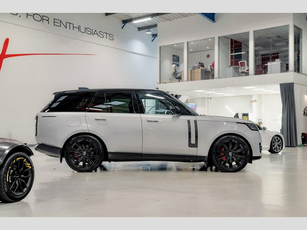 We are pleased to offer this stand out D350 Range Rover HSE. Finished in the very expensive & rare Ethereal frost SV bespoke paintwork with complimenting Black leather. SV 22 inch Black wheels with contrast Red calipers and SV centre caps. Gyeon Infinity ceramic coated. Factory spec includes; Shadow exterior pack, electric deployable towbar, privacy glass, SV Bespoke paintwork, heated & cooled seats, fixed panoramic sunroof, heated steering wheel, apple car play. Full Land Rover service history. Supplied with both remote keys and relevant documentation. 12V Power Socket, 13.1in Touchscreen, 20-Way Heated and Ventilated Electric Fr, 22in Alloy Wheels - Style 1073 - Gloss B, 22in Alloy Wheels - Style 7023, 3D Surround Camera, ABS - Anti Lock Braking System, Active Damper Technology System, Adaptive Cruise Control with Steering As, Air Quality Sensor, Airbags - Front Side, All Terrain lnfo Centre, All Wheel Steering, Aluminium Treadplates with Range Rover L, Android Auto, Animated Directional Indicators, Apple CarPlay, ATPC - All Terrain Progress Control, Auto-Dimming Power Fold - Heated Door Mi, Automatic Access Height, Automatic Headlights, Blind Spot Assist, Bluetooth Telephone Connectivity with St, Brake Hold, Bright Metal Pedals, Cabin Ai