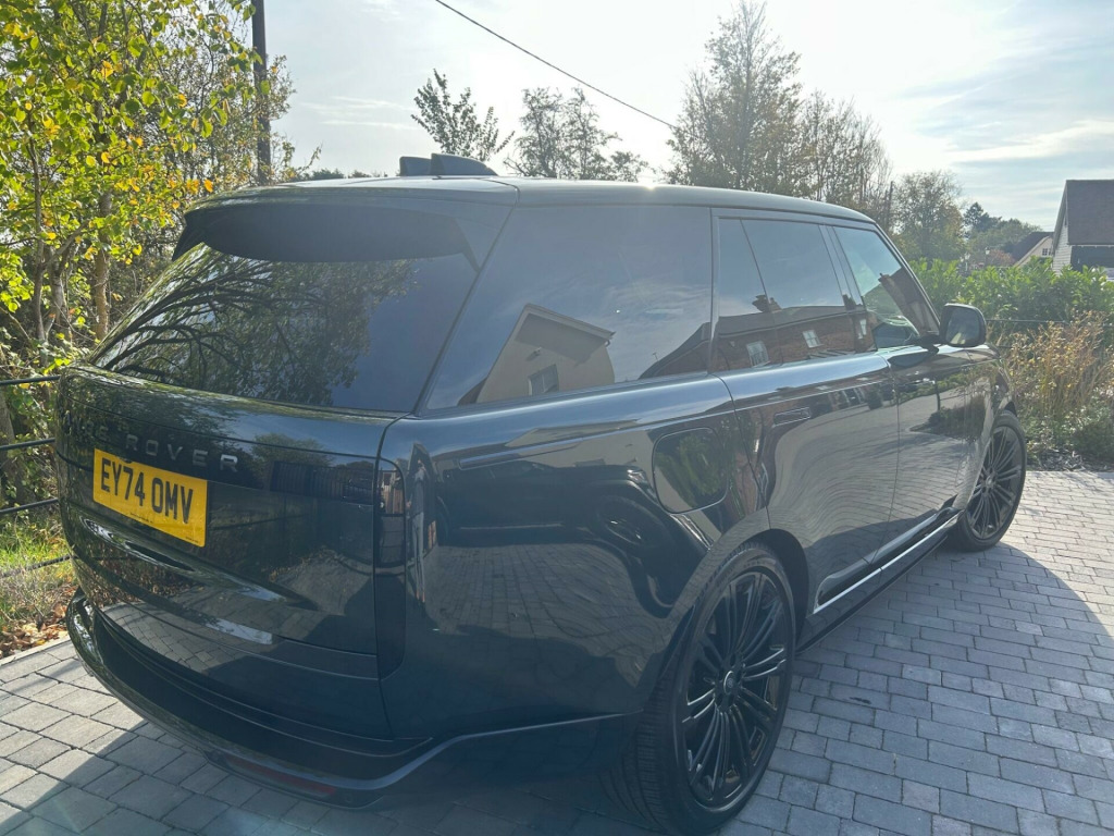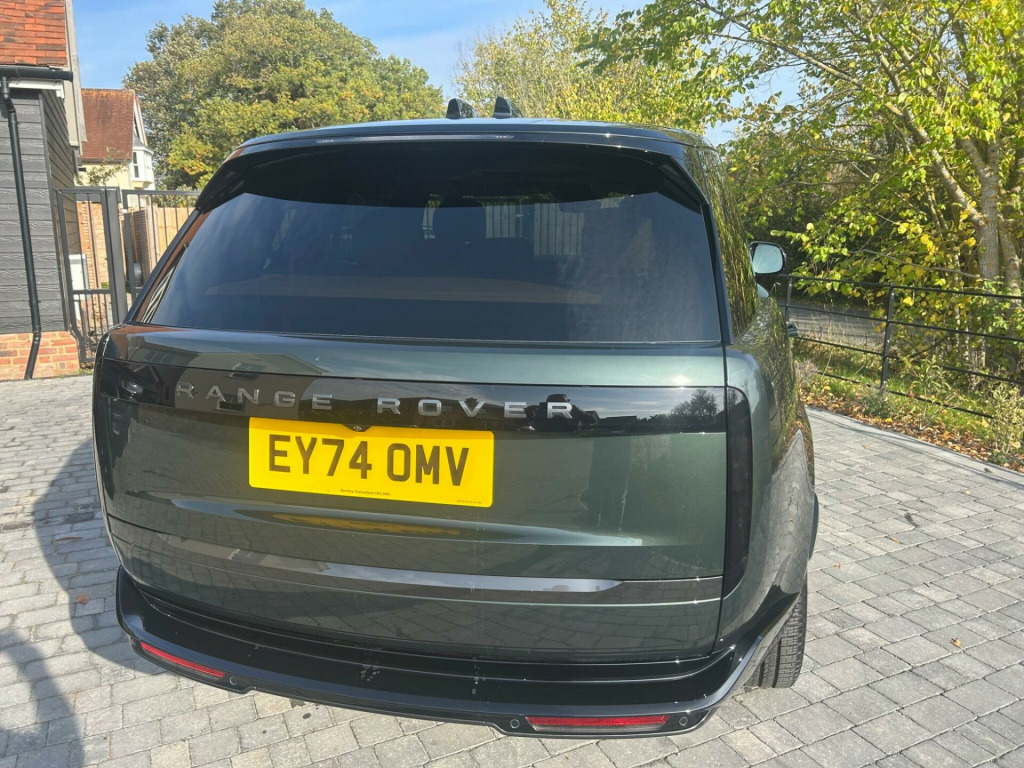 This 2024 Range Rover D350 SE is a superb example, £3500 electric side steps upgrade , 23 inch wheels upgrade cost of approximately £3500 , shadow pack upgrade , plus sliding panoramic roof , absolutely stunning dark green with tan leather heated seats ,having had only one owner since new. This exceptional vehicle boasts a powerful 3.0 litre diesel engine paired with a sophisticated Four Wheel Drive system, ensuring confident performance in all conditions. As a Euro 6 compliant model, it meets stringent emission standards. The SE trim level offers a refined experience, complemented by a Meridian 3D Surround Sound System for immersive audio. Its striking presence is enhanced by Digital LED Headlights with Signature DRL and Image Projection, alongside Laminated Front and Rear Side Glass for added tranquility. Further enhancing its appeal are the Black Painted Brake Calipers and impressive 23 inch Alloy Wheels in Gloss Black.Experience the remarkable capability of this Range Rover, which can tow up to 3500 kg, making it ideal for a variety of needs. The generous boot space provides ample room for luggage or equipment. Demonstrating its dynamic prowess, this model achieves an impressive 0-60mph in just 5.7 seconds, a performance that sets it apart from many similar vehicles. These highlights collectively underscore the superior engineering and thoughtful design that define this outstanding Range Rover. ridian 3d surround sound system, digital led headlights with signature drl and image projection, secure tracker pro, 23in alloy wheels - style 1075 - gloss black, black contrast roof, black painted brake calipers, laminated front and rear side glass, privacy glass, shadow exterior pack, sliding panoramic roof, powered gesture tailgate - boot lid, 12v power socket, 13.1in touchscreen, 20-way heated electric front seats with power recline heated rear seats, 21in alloy wheels - 5112 style, 3d surround camera, abs - anti lock braking system, active damper technology system, adaptive cruise control with steering assist, adaptive off-road cruise control, air quality sensor, airbags - front side, all terrain lnfo centre, all wheel steering, aluminium treadplates with range rover lettering, android auto, animated directional indicators, apple carplay, auto-dimming interior rear view mirror, auto-dimming power fold - heated door mirrors with memory and approach lights, automatic access height, blind spot assist, bluetooth telephone connectivity with streamed audio, brake hold, bright metal pedals, cbc - cornering brake control, cabin lighting, carpet mats, centre console with armrest, centre high mounted stop light, configurable auto lock, configurable single point entry, dab - digital audio broadcast, dsc - dynamic stability control, driver condition response, eba - emergency brake assist, ebd - electronic brake-force distribution, epas - electronic power assisted steering, epb - electronic park brake, easy boot loading, ebony carpet, electric windows with one-touch open-close and anti-trap, electrical towing preparation, electronic air suspension, emergency braking, engine cover, extended leather upgrade, fixed panoramic roof, flush deployable door handles, front airbags with passenger seat occupant detector, front fog lights, front and rear cupholders, front and rear grab handles, front and rear parking aid, front and rear recovery eyes, gearshift paddles, hdc - hill descent control, headlining - duo tone ebony-perlino, heated rear window, heated washer jets, heated windscreen, hill launch assist, interactive driver display, intrusion sensor, keyless entry, led tail lights, laminated front and toughened rear side glass, lane keep assist, loadspace cover, loadspace hooks, loadspace light, locking wheel nuts, low traction launch, luggage tie-downs in loadspace, meridian sound system, multi-function steering wheel, nickel atlas exterior pack, no badges, no rear seat entertainment, no towing, noble chrome controls, non smokers pack, occupant protection assist, online pack with data plan, open differential with torque vectoring by braking, park assist, pivi pro - connected, pixel led headlights with signature drl, power operated child locks, power tailgate - upper and lower, rsc - roll stability control, rain sensing windscreen wipers, rear centre armrest, rear collision monitor, rear fog lights, rear isofix, rear traffic monitor, remote, roof - body coloured, secure tracker pro (12 month subscription from new), side repeater indicators in mirror, soft door close, soft grain leather steering wheel, steering wheel - heated, tpms - tyre pressure monitoring system, tsa - trailer stability assist, terrain response 2, three zone climate control, traffic sign recognition and adaptive speed limiter, twin blade sunvisor with illuminated vanity mirrors, twin speed transfer box - high-low range, tyre repair system, usb sockets, unpainted brake calipers, veneer - natural brown walnut, wi-fi enabled with data plan, winter wiper park position, wireless device charging with phone signal booster