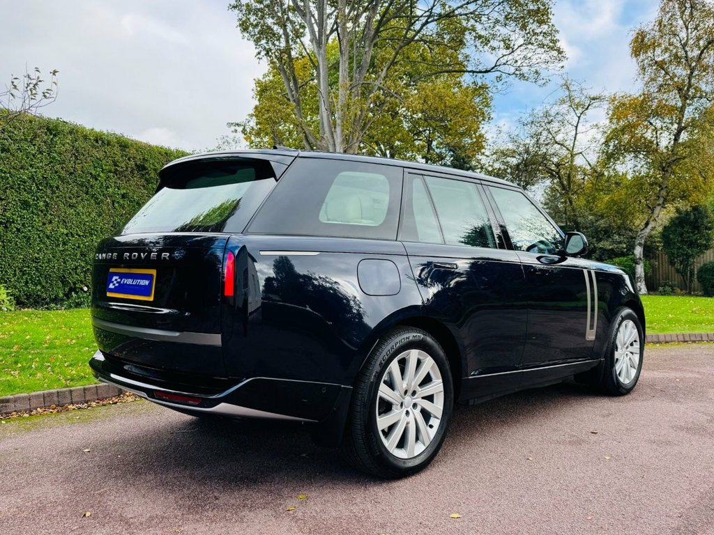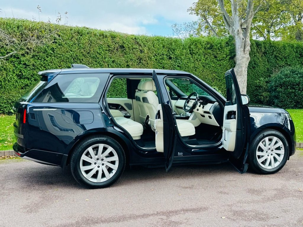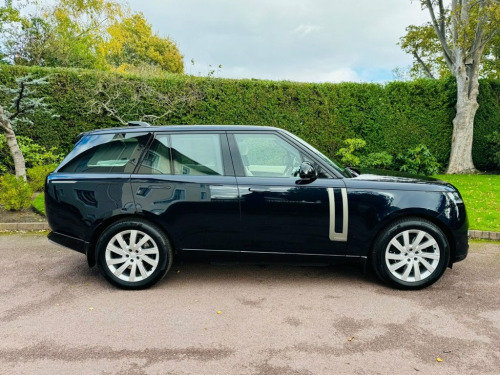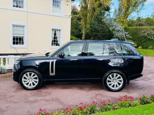 Stunning 2025 (74) Range Rover Autobiography P550E. Finishing is SVO palette Constellation Blue Metallic (£8000 option) with contrasting Perlino Leather Interior. This pampered 1 owner car has only covered 1980 mile from new. With a list price of £148000 this is offered at a significant saving from list. A very classy spec with the blue over cream with the 21 inch 5112 Style wheels finished in bright silver. Silver exterior accents, Clear glass and mud flaps. With 550BHP and a battery range of 70 miles this really is the perfect Range Rover. Full Autobiography spec with 360 cameras, sliding panoramic sunroof, leather headlining, adaptive cruise control, heated and cooled massage seats. Fridge in centre console, Meridian Surround Sound System, Piano Black Inlays, Heated steering wheel. A stunning example in a very rare colour in the perfect colour combination. Further Details and Photos to follow Headlining - SV Bespoke Ebony Leather, Semi Aniline Perforated Leather - Perlin, Constellation Blue, Domestic Plug Socket, Secure Tracker Pro, Garage Door Opener - HomeLink, Veneer - Gloss Grand Black, Reduced Section Alloy Spare Wheel, 21in Alloy Wheels - 5112 Style, 12V Power Socket, 13.1in Touchscreen, 22in Alloy Wheels - 1073 Style Diamond T, 24-Way Heated and Cooled - Massage Elect, 3D Surround Camera, ABS - Anti Lock Braking System, Active Damper Technology System, Adaptive Cruise Control with Steering As, Adaptive Dynamics, Adaptive Off-Road Cruise Control, Air Quality Sensor, Airbags - Front Side, All Wheel Steering, Android Auto, Animated Directional Indicators, Apple CarPlay, Auto-