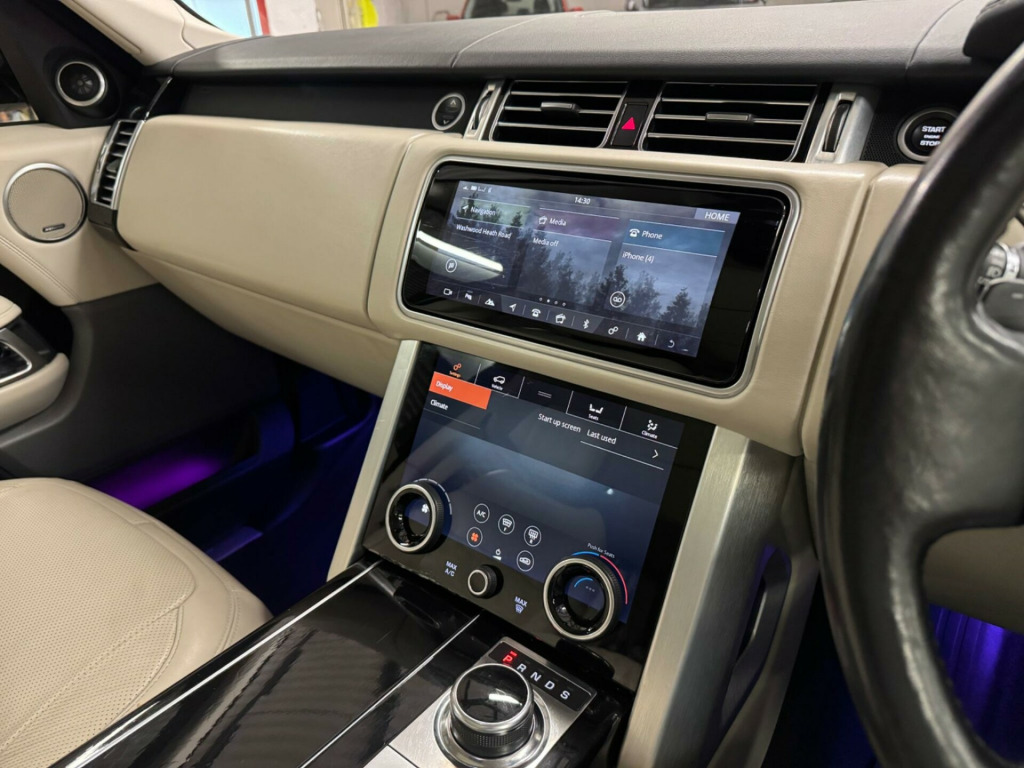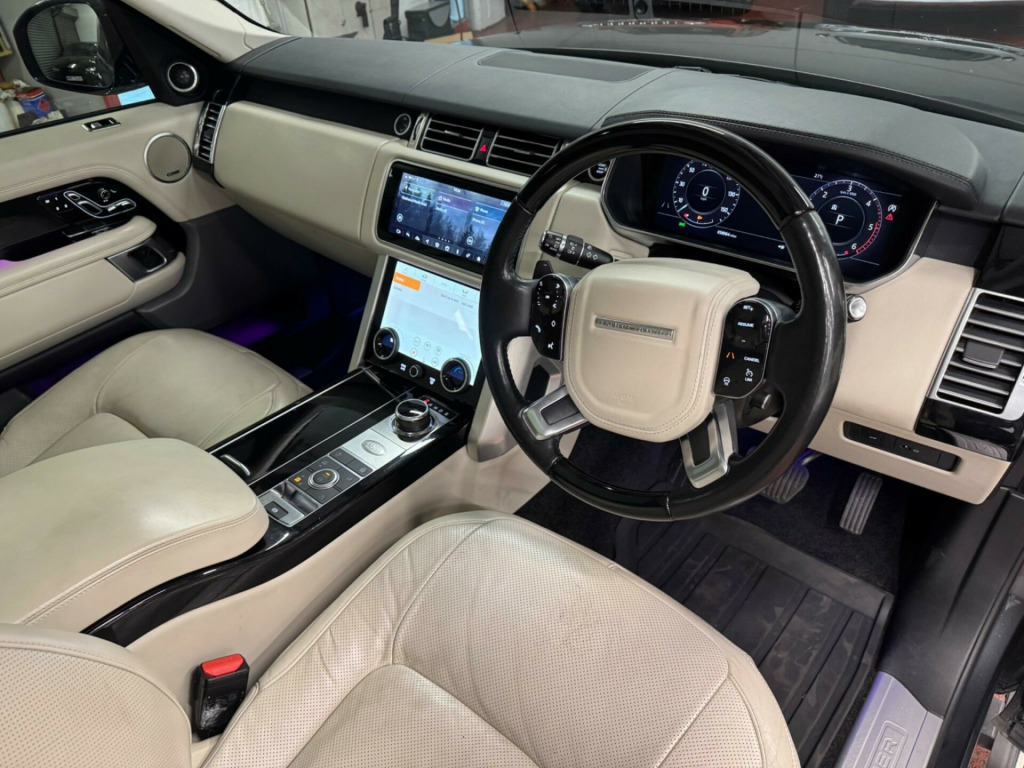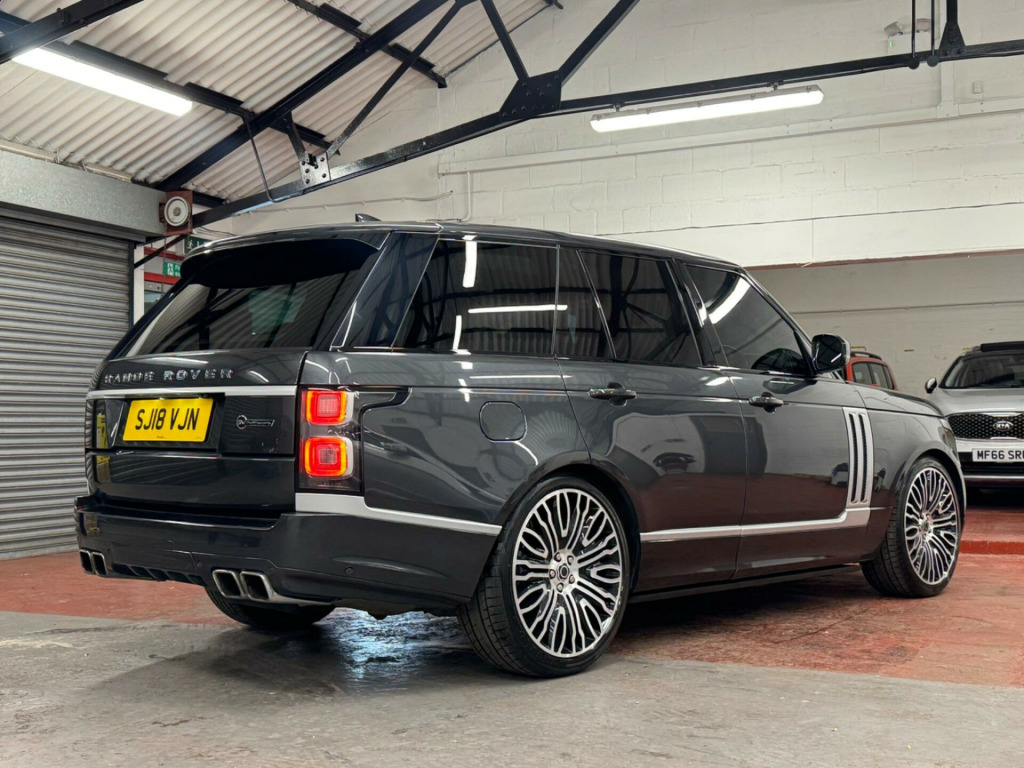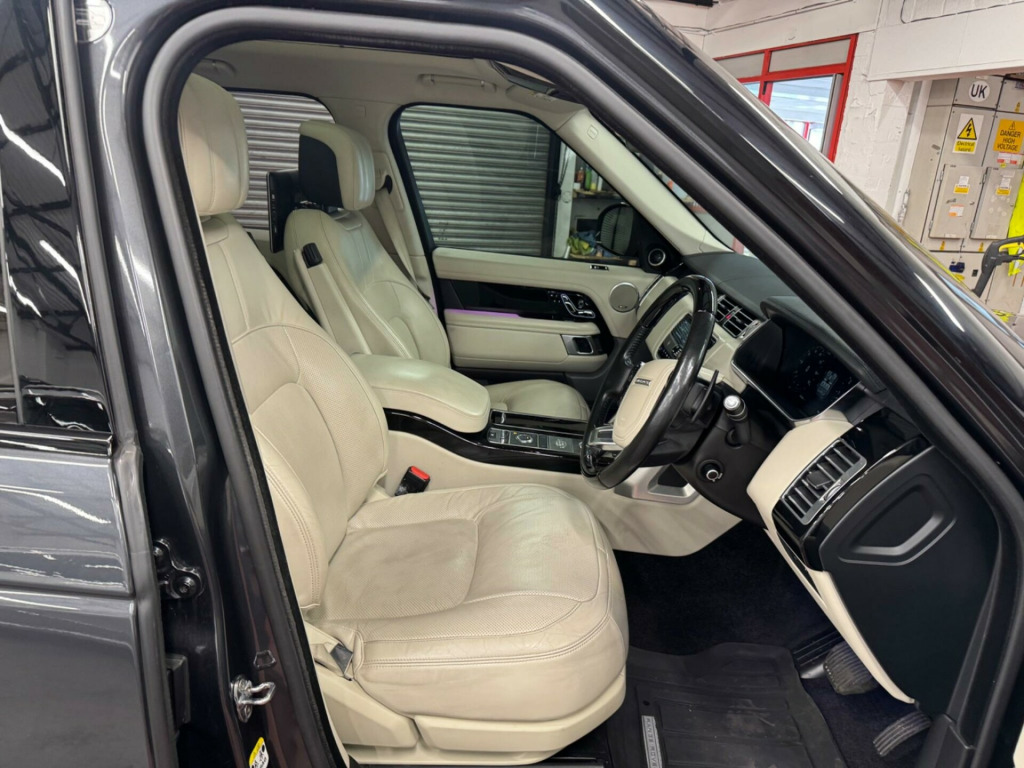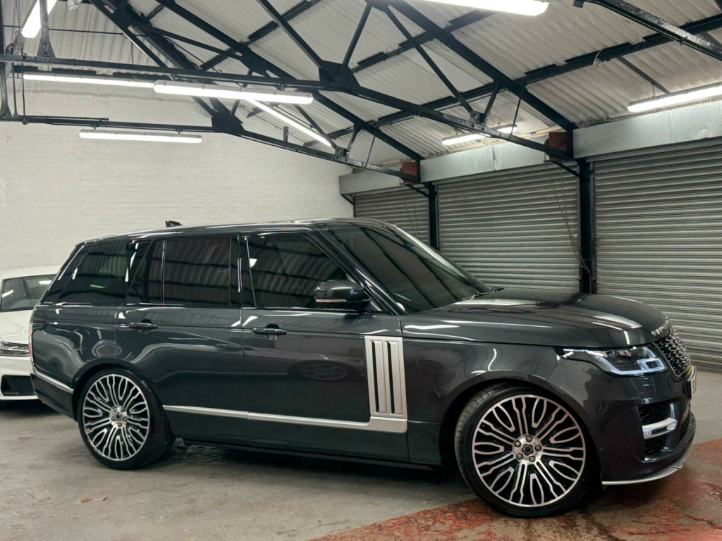 HUGE SPEC! FINISHED IN THE MOST SOUGHT AFTER CARPATHIAN GREY, INCREDIBLE LOOKING MOTOR, STUNNING CONDITION THROUGH OUT, COMPLETE WITH A FULL SERVICE HISTORY, TWO PREVIOUS OWNERS, SUPPLIED WITH TWO KEYS, SPEC INCLUDES PANORAMIC GLASS ROOF, FULL SVO BODYKIT, DEPLOYABLE SIDE STEPS, 23'' OVERFINCH ALLOY WHEELS WITH NEW TYRES ALL AROUND, REAR ENTERTAINMENT SCREENS, AMBIENT LIGHTING, PARKING CAMERA, LED HEADLIGHTS, APPLE CAR PLAY, UNDER ARMREST REFRIGERATOR, HEATED STEERING WHEEL .3in interactive driver display, 12v power socket, 20-way heated front seats with power recline heated rear seats, 20in alloy wheels - 12 spoke style 1065 with silver finish, abs - anti lock braking system, acoustic laminated windscreen, adaptive dynamics, airbags - front side, aluminium treadplates with range rover lettering, armrests - front - driver and passenger, auto access height, auto-dimming exterior mirrors, automatic headlights, autonomous emergency braking - city-urban and pedestrian, bluetooth phone connection, bonnet and tailgate lettering - atlas, cbc - cornering brake control, carpet mats, centre mounted stop light, corris grey tow eye cover, cruise control and speed limiter, dab - digital audio broadcast, dsc - dynamic stability control, ebd - electronic brake-force distribution, epas - electronic power assisted steering, epb - electronic park brake, etc - electronic traction control, electric windows with one-touch open-close and anti-trap, electrical towing preparation, electrically adjustable steering column, electronic cross linked air suspension, fixed panoramic roof, follow me home lighting, front airbags with passenger seat occupant detector, front bumper accent - atlas, front centre console cooler compartment, front grille mesh - gloss black, front grille mesh edging - atlas, front row leather covered seat-back pockets, front and rear cupholders, front and rear grab handles, front and rear parking aid, front and rear recovery hooks, glovebox - lockable, hdc - hill descent control, hazard lights under heavy braking, heated windscreen, height adjustable seatbelts, isofix child seat anchor points, incontrol apps, intrusion sensor, kalahari veneer, keyless entry, laminated front and rear side glass, lane departure warning, leather steering wheel, loadspace compartment light, loadspace cover, locking wheel nuts, low traction launch, luggage tie-downs in loadspace, matrix led headlights with signature drl, meridian sound system, mirror caps - body coloured, multi-function steering wheel, non smokers pack, perimetric and volumetric alarm with engine immobilisation, power operated child locks, powered gesture tailgate - boot lid, pro services and wi-fi hotspot, protect, push button start, rsc - roll stability control, rain sensing windscreen wipers, rear centre armrest, rear fog lights, rear lights - led, rear view camera, reduced section alloy spare wheel, remote premium, roof - body coloured, satin body-coloured exterior accents, seat-back pockets on front row, secure tracker, side accent and door graphic - satin body coloured, steering wheel - heated, tpms - tyre pressure monitoring system, tv - digital, tailgate finisher in atlas, terrain response, three zone climate control, touch pro duo - dual 10in screens, trailer stability control, twin blade sunvisor with illuminated vanity mirrors, usb sockets, unpainted brake calipers, vogue badge, cd-dvd player, entertainment pack, meridian surround sound system, rear seat entertainment - 10in screens, park pack, 22in alloy wheels - 9 split spoke style 9012 with gloss dark grey diamond turned finish, perforated windsor leather - ivory with ebony-ivory interior, steering wheel - heated - leather and wood