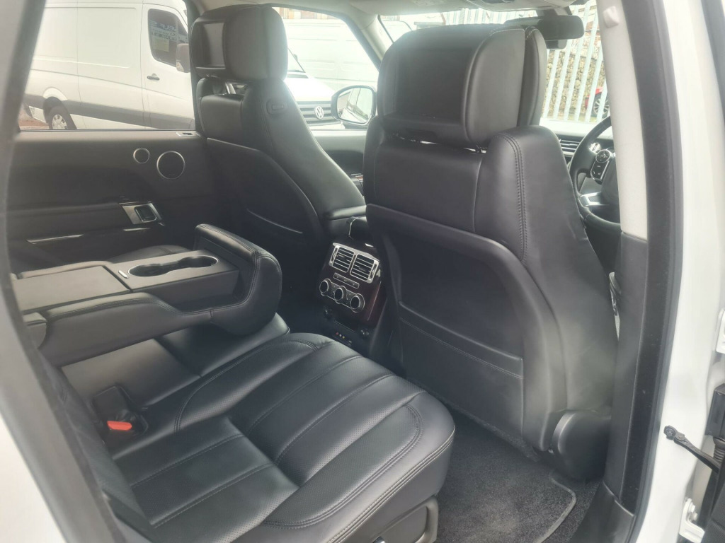 Here we have a absolute stunning condition of this 4×4 TDV6 range rover vogue SE model in lovely looking white with black pack.Full detailed service history by range rover from new. Serviced every year.Fully serviced including full Timing belt kit done on 21/9/25 invoice of £2234.50 in the folder with rest of the paperwork.Fitted with rear screens from new by land rover, 3 wireless range rover headphones, wireless range rover remote control for entertainment, 22 inch black autobiography wheels in lovely condition, steering wheel mounted gear paddle shifts, tv, fridge, cruise control with driver assistance brake and speed up, blind spot indicator, automatic lights, multi function steering wheel, phone Bluetooth, keyless entry, keyless start, parking sensors, reversing camera, turning lights, automatic high beam, heated steering wheel, all round heated and cool seats, memory seats, reclining rear seats, voice control, touch screen with dual view, soft close doors, reverse auto dipping mirrors, mud lights, daytime running lights, interior mood lights and many more.Full service history by land rover, serviced every year regardless of mileage.Comes with all handbooks, all old mot's, full service history detail of work carried out and 2 keys all in a land rover leather wallet.Lovely looking machine. Like new inside only been used by driver.Everything works as it should.Very clean outside and looks superb in white with land rover black pack.Have to look at it to see how well it looks and condition all round. Photos don't do justice.Have plenty photos on request.Mot expires 23/9/2026.Comes with 6 months warranty and breakdown recovery cover.Finance available. delivery available. part ex welcome. viewing welcome.all major cards accepted.. 18 way Drivers / 18 way Passenger Front Seats, 19 Speakers, 20in 5 Split Spoke Alloy Wheels Style 2, 3 Zone Climate Control, 825W Meridian Surround Sound System, 8in Touch Screen, ABS - Anti Lock Braking System, ASL - Active Speed limiter, Acoustic laminated windscreen, Active Vanes, Adaptive Cruise Control with Queue Assist with Intelligent Emergency Braking, Adaptive Dynamics, Adaptive Xenon Headlights, Adjustable Seat Bolsters, Airbags - Full Size Driver, Airbags - Full Size Passenger, Airbags - front seat pelvic and thorax, Alarm System - Perimetric, Aluminium tread plates with Range Rover lettering, Armrests - Front - Driver and Passenger, Audio - CD Radio, Automatic Headlight Levelling, Automatic Headlights, Automatic Headlights with High Beam Assist, Auxiliary Power Sockets 12v - Front, Battery back up sounder upgrade - perimetric/volumetric alarm, Bluetooth Audio Streaming, Bluetooth Phone Connection, Body Colour Door Mirrors, CBC - Cornering Brake Control, Carpet Mat Set - Front and Rear, Centre High Mounted Stop Light, Climate Front Seats with Heated Rear Seats, Cushion Extention, Customer configurable autolock - doors lock on driveaway, DSC - Dynamic Stability Control, Daytime Running Lights, Diesel Misfuelling Protection Device, Digital Audio Broadcast Radio - DAB, Door Mirrors - Heated - Adjustable - Powerfold with Approach Lights and Memory, Drive select rotary shifter, Driver and Passenger Memory, EBA - Emergency Brake Assist, EBD - Electronic Brake-Force Distribution, EPAS - Electronic Power Assisted Steering, ESP - Electronic stability program, ETC - Electronic Traction Control, Electric Parking Brake, Electric Windows - Front and Rear, Electrical Towing Preparation, Electronic Air Suspension - Variable Ride Height, Engine immobilisation, Exterior Mirrors - Auto Dimming, Exterior Mirrors - Driver selectable auto reverse dipping, Exterior Standard Bumper Pack, Follow me home lighting, Front and Rear Recovery Hooks, Front and rear cupholders, Front and rear grab handles, Front centre console - cooler compartment, Front centre console compartment, Front power headrest up/down, Full TFT - LCD Instrument Cluster, HDC - Hill Descent Control, Hard disk navigation system, Hazard Warning Lights Under Heavy Braking, Headlights - Power Wash, Headlining - Morziner-Cirrus-Ivory, Headrest - Front and Rear 4-Way Tilt, Heated Front Seats, Heated Rear Window, Heated off screen wiper park position - manual lift away from screen, Heated windscreen - Laminated Hydrophobic Front Door and Laminated Rear Door and Qtr light, High Beam Assist, ISOFIX Child Seat Anchor Points, Illumination - Load Compartment Light, Intelligent Emergency Braking, Interior Mood Lighting, Keyless Entry, LED Rear Lights, Leather Steering Wheel, Less Rear Seat Power Lumbar, Load Space Cover, Loadspace anchor points, Locking Fuel Flap, Locking Wheel Nuts, Metal roof, Multi-Function Steering Wheel, Non Smokers Pack, Off Road Navigation, Parking Aid - Rear View Camera, Parking aid - front park distance control, Parking aid - rear park distance control, Passenger Seat Away, Power Upper and Lower Trunk-Tailgate, Power operated child locks, Push Button Start, Queue Assist, RSC - Roll Stability Control, Rain Sensing Windscreen Wipers, Reactive grounding response, Rear Bench Seat with load through facility and Rear Manual Recline, Rear Centre Armrest - Including Rear Storage Compartment, Rear bench seat with load through facility, Rear wash/wipe, Roof - Body Coloured, Seat Map Pockets, Secure glove box stowage, Side Loadspace Nets, Side Repeater Indicators in Mirror, Single point entry - customer configurable, Soft Door Close, Spare Wheel - Temporary Reduced Section, Steering Wheel - Heated, Steering column - electric adjustment for height and reach with entry and exit tilt away, Subwoofer, TMC - Dynamic route guidance, TSA - Trailer Stability Assist, TV - Digital, Terrain Response 2 Auto, Tool Kit, Touch Screen with Dual View technology, Twin Blade Sunvisor, Twin. Full service history