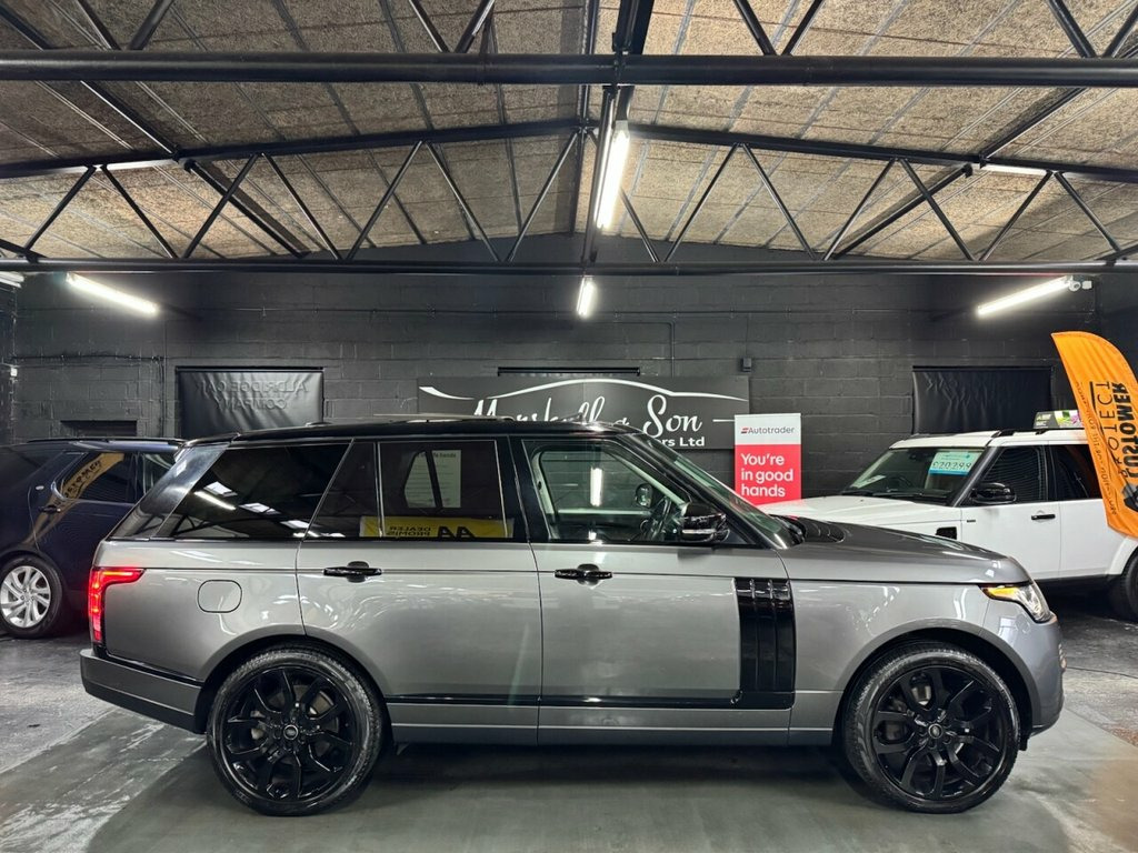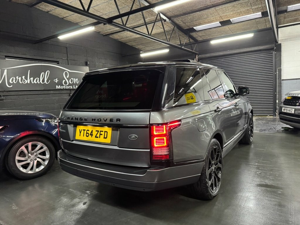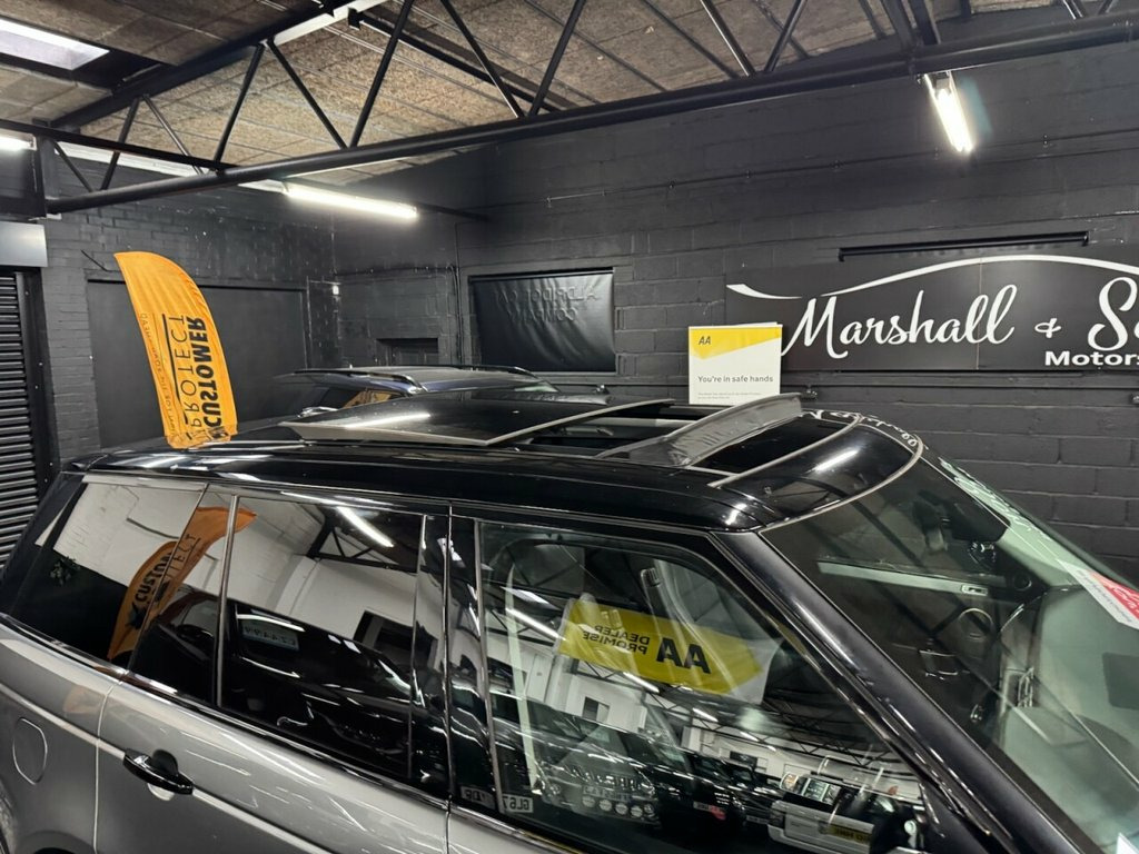 2014 (64) Land Rover Range Rover 3.0 TDV6 Vogue Corris Grey with Contrasting Santorini Black Roof | Black Leather Interior A superb example of the sought-after Range Rover Vogue, finished in elegant Corris Grey with a contrasting Santorini Black roof and exterior Black Pack for a refined yet sporty presence. This vehicle has been meticulously maintained with 8 documented services up to 80,000 miles, reflecting genuine care and attention. Key Features: Full tilt and slide panoramic glass roof 22" gloss black alloy wheels Premium Meridian sound system Heated steering wheel and heated front screen Electric memory driver's seat with power-folding mirrors Power tailgate (power boot) Fridge compartment DAB digital radio and reversing camera Xenon headlights with LED signature daytime running lights Front fog lights A perfect balance of luxury, capability, and comfort — ideal for those seeking a prestigious SUV with timeless style and strong maintenance history. Corris Grey, Oxford Leather - Ebony with Ebony-Ivory , Sliding Panoramic Roof, 22in Alloy Wheels - 7 Split Spoke Black , Black Design Pack, Headlights - Automatic with High Beam As, 8in Touch Screen, Front Fog Lights, Headlining - Morzine - Ivory, Privacy Glass, ABS - Anti-Lock Braking System, Acoustic Laminated Windscreen, Active Vanes, Adaptive Dynamics, Air Conditioning - 3 Zone Climate Contro, Airbags - Curtain, Airbags - Driver, Airbags - Front Passenger, Airbags - Front Side, Airbags - Pelvis, Airbags - Thorax, Aluminium Treadplates with Range Rover L, ASL - Active Speed Limiter, Auto Dimming Rear View Mirror, Automatic Headlight Levelling, Auxiliary Points - Front, Auxiliary Points -