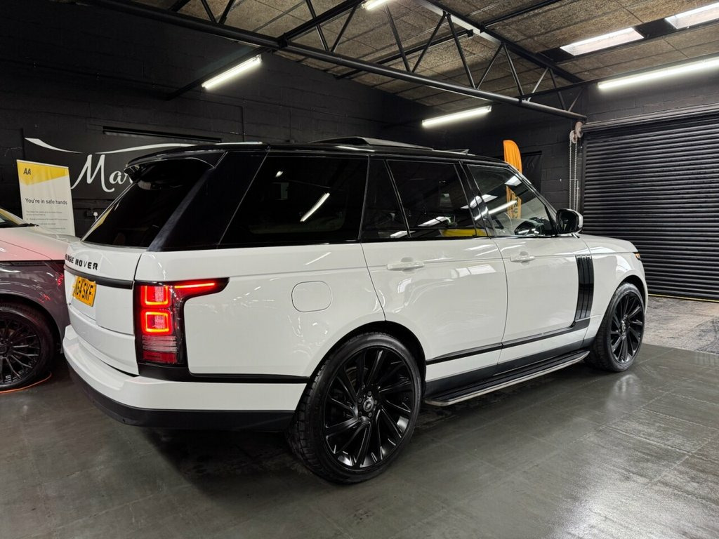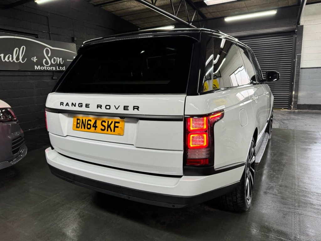 2014/64 Land Rover Range Rover Vogue 3.0 TDV6 Fuji White | Black Leather Interior A well-presented example of this iconic luxury SUV, offering comfort, performance and prestige in equal measure. Key Features & Specification: 3.0 TDV6 engine Finished in Fuji White Black leather interior Service history Satellite navigation Digital television Tilt and slide panoramic glass roof 22-inch black alloy wheels Side steps Privacy glass Comfort & Convenience: Heated steering wheel Heated front and rear seats Meridian premium sound system Power-operated tailgate Safety & Technology: Reversing camera Front and rear parking distance control (PDC) Xenon headlights A refined and spacious vehicle, ideal for both long-distance travel and everyday driving, combining luxury appointments with Land Rover's renowned capability. Fuji White, Oxford Leather - Cirrus with Ebony-Cirru, Black Design Pack, TV - Digital Receiver, 12V Socket in Loadspace, 20in Alloy Wheels - 5 Split Spoke Style , Meridian Surround Sound System 825W, 22in Alloy Wheels - 5 Split Spoke Style , 8in Touch Screen, ABS - Anti-Lock Braking System, Acoustic Laminated Windscreen, Active Vanes, Adaptive Dynamics, Air Conditioning - 3 Zone Climate Contro, Airbags - Curtain, Airbags - Driver, Airbags - Front Passenger, Airbags - Front Side, Airbags - Pelvis, Airbags - Thorax, Aluminium Treadplates with Range Rover L, ASL - Active Speed Limiter, Auto Dimming Rear View Mirror, Automatic Headlight Levelling, Auxiliary Points - Front, Auxiliary Points - Rea