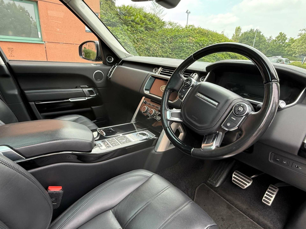 With only 69000 miles on the clock, this 2017 Land Rover Range Rover is offered in the Vogue trim. This Range Rover TD V6 Vogue is equipped with a 3.0L diesel engine and four-wheel drive. The vehicle has a clear vehicle history check. It boasts several features, including Xenon Headlamps with LED Signature Lighting, a heated leather steering wheel with multifunctional controls, and keyless entry. Parking is made easier with front and rear park distance sensors with visual display, and the InControl Touch Plus Level 2 system includes a luxury branded sound system.This Range Rover stands out with its large boot space, offering ample room for luggage, shopping, or equipment. The vehicle's acceleration, reaching 0-60mph in 7.4 seconds, demonstrates its responsive performance on the road. With a towing weight of 3500 kg and a Euro 6 emission class, this Range Rover combines practicality with environmental consciousness. in brake calipers, 20in alloy wheels - 5 split spoke style 502, abs - anti lock braking system, asl - active speed limiter, adaptive dynamics, adjustable - auto dimming - heated - power fold memory exterior mirrors with approach lamps, auto dimming rear view mirror, autonomous emergency braking - city-urban and pedestrian, auxiliary power sockets, bluetooth phone connection, body coloured door handles and front bumper vent blades, cbc - cornering brake control, carpet mats, centre mounted stop light, cruise control, customer configurable autolock - doors lock on driveaway, customer configurable single point entry, dab - digital audio broadcast, dsc - dynamic stability control, daytime running lights, driver and passenger airbags, driver and passenger armrest, driver and passenger twin blade sunvisor with illuminated vanity mirror, eba - electronic brake assist, ebd - electronic brake-force distribution, epas - electronic power assisted steering, esp - electronic stability program, etc - electronic traction control, electric windows - front and rear, electrical towing preparation, electronic cross linked air suspension, extended veneer pack, fixed panoramic roof, follow me home lighting, front centre console cooler compartment, front grille and mesh in bright atlas, front row leather covered seat-back pockets, front and rear cupholders, front and rear park distance sensors with visual display, front and rear recovery hooks, gesture tailgate, hdc - hill descent control, hdd premium navigation, hazard lights under heavy braking, heated windscreen - laminated, isofix child seat anchor points, incontrol apps, incontrol protect, incontrol remote premium for warranty period, incontrol secure for warranty period, incontrol touch pro - 10.2in touchscreen, intrusion sensor, keyless entry with push start button, lane departure warning, loadspace anchor points, loadspace compartment light, loadspace cover - hinged with hardcover, locking wheel nuts, meridian digital sound system, misfuel protection device, non smokers pack, oxford leather seats - style 3, perimetric and volumetric alarm with engine immobilisation, power operated child locks, pro services for warranty period, rsc - roll stability control, rain sensing windscreen wipers, rear fog lights, rear lights - led, rear view camera, reduced section alloy spare wheel, roof - body coloured, secure glove box stowage, steering wheel - heated, tpms - tyre pressure monitoring system, television, terrain response, three zone climate control, trailer stability control, usb sockets, veneer - grand black lacquer, vogue badge, xenon headlamps with led signature lighting