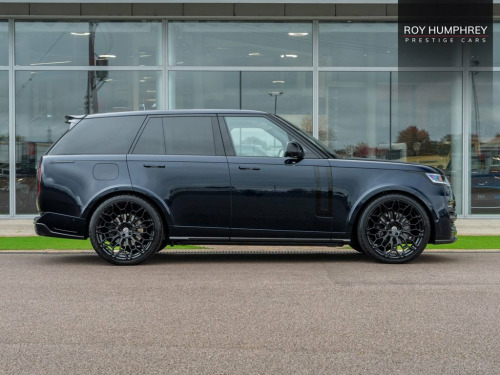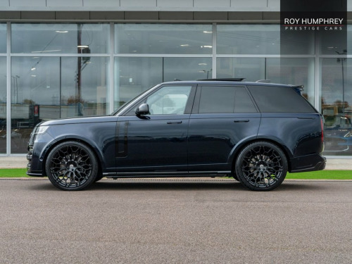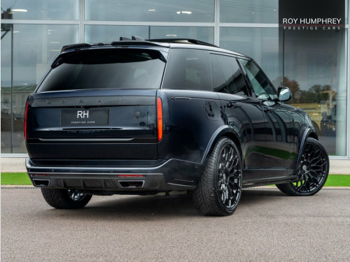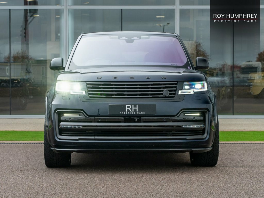 2023 Range Rover 4.4 P530 V8 Autobiography finished in Portofino Blue with Semi Aniline Leather - Ebony with Ebony Interior. Further specification includes but is not limited to, Urban Automotive Widetrack Pack, Replacement carbon fibre front bumper | Visual carbon fibre front bumper mouthpiece | Mouthpiece trim overlay in visual carbon fibre | Integrated daytime running lights with OEM fog lamp carry over | Three piece front bumper splitter in visual carbon fibre | Replacement carbon fibre rear bumper | Rear diffuser with removable skid pan in visual carbon fibre | Milled billet aluminium exhaust finishers with engraved Urban logo | Front upper 'matrix' grille in visual carbon fibre with Urban icon branding | PU-RIM widebody arch package | Lower door sills in visual carbon fibre | Upper rear spoiler | Rear Urban 'sabre' trim piece with Urban icon | Urban icon rear tailgate badge | Urban bonnet & tailgate lettering | 24" Urban Alloy sin Gloss Black | Privacy Glass | 24-Way Heated and Cooled - Massage Electric Front Seats with Exclusive Class Rear Seats | 3D Surround Camera | Adaptive Cruise Control with Steering Assist | ClearSight Interior Rear View Mirror | Digital LED Headlights with Signature DRL and Image Projection | Electric Rear Side Window Sunblinds | Electronic Air Suspension with Dynamic Response | Four Zone Climate Control | Head Up Display | Keyless Entry | Meridian Signature Sound System | SV Bespoke Full Extended Leather Upgrade | S Constellation Blue - Black, Privacy Glass, Semi Aniline Leather - Ebony with Ebony , 12V Power Socket, 13.1in Touchscreen, 24-Way Heated and Cooled - Massage Elect, 3D Surround Camera, ABS - Anti Lock Braking System, ATPC - All Terrain Progress Control, Active Damper Technology System, Adaptive Cruise Control with Steering As, Air Quality Sensor, Airbags - Front Side, All Terrain lnfo Centre, All Wheel Steering, Android Auto, Animated Directional Indicators, Apple CarPlay, Auto-Dimming Power Fold - Heated Door Mi, Auto-Folding Loadspace Cover, Autobiography Badge, Autobiography Exterior Pack, Automatic Access Height, Automatic Headlights, Black Painted Brake Calipers, Blind Spot Assist, Blue