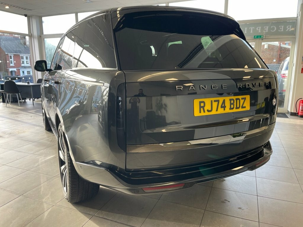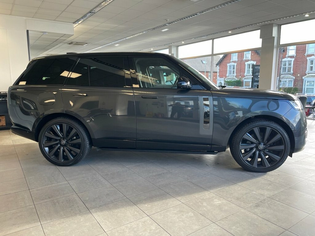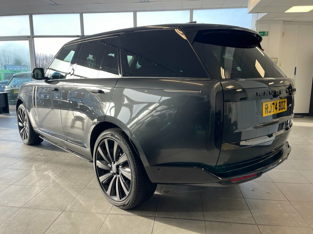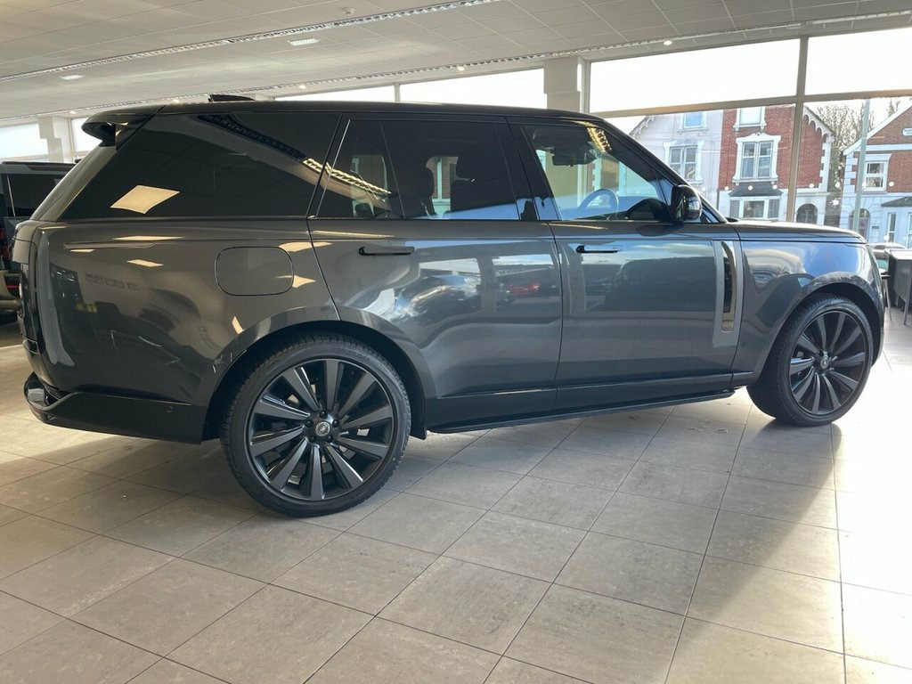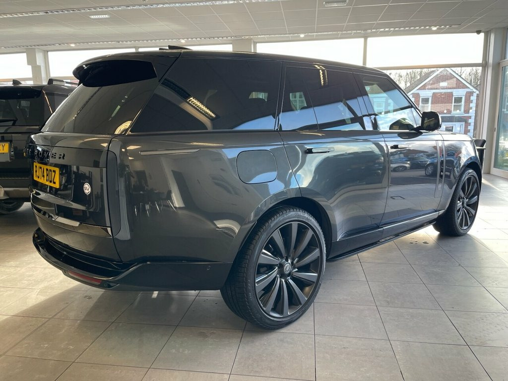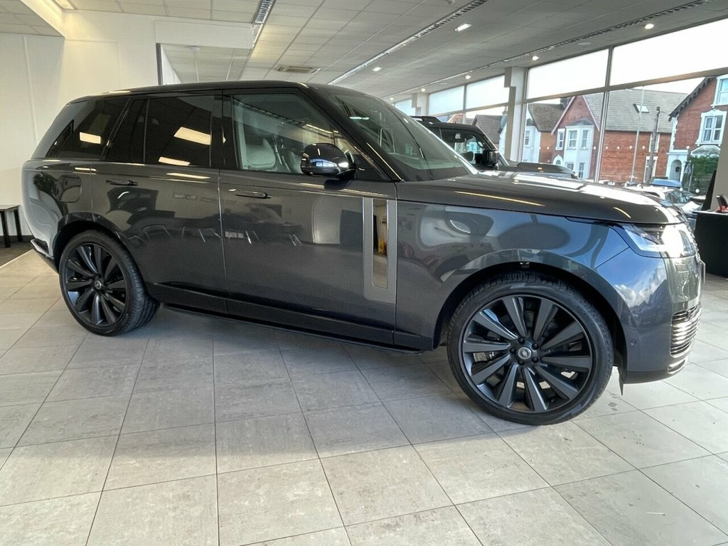 This 2025 registered Land Rover Range Rover P615 V8 SV boasts exceptionally low mileage for its age, having covered just 9650 miles. As a top of the range SV model, it features a powerful 4.4 litre petrol engine paired with a Four Wheel Drive drivetrain, ensuring capability in all conditions. This Euro 6 compliant vehicle also offers a substantial towing weight of 3500 kg, making it a versatile choice for a variety of needs. The performance of this Range Rover is truly impressive, with an acceleration of 0 to 60 miles per hour achieved in a swift 4.3 seconds, demonstrating its dynamic prowess. Complementing its power is a generously sized boot space, providing ample room for luggage or equipment. These highlights collectively indicate a superior driving experience and practical utility compared to other vehicles in its class. Dealer Fitted Deployable Side Steps Black Contrast Roof, Privacy Glass, Secure Tracker Pro, SV Intrepid and Semi-Aniline Leather - E, Carpathian Grey, Soft Grain Leather Steering Wheel, Satin Black Ceramic Controls, Black Anodised Metal Finisher, SV Intrepid Exterior Accents, 23in Full Size Spare Wheel, 23in Alloy Wheels - Forged Style 1077 - , 12V Power Socket, 13.1in Touchscreen, 22in Alloy Wheels - 7023 Style Diamond T, 24-Way Heated and Cooled - Hot Stone Mas, 3D Surround Camera, ABS - Anti Lock Braking System, Active Damper Technology System, Adaptive Cruise Control with Steering As, Adaptive Dynamics, Adaptive Off-Road Cruise Control, Air Quality Sensor, Airbags - Front Side, All Wheel Steering, Android Auto, Animated Di