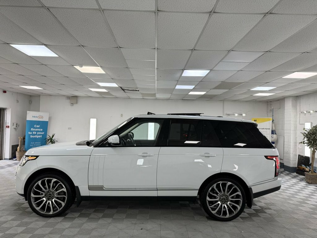 Lovely Range Rover 4.4 Sdv8 Finished In Metallic Fuji White With Contrasting Black Leather Interior. Vehicle comes With Service History Including A New Service, A New 12 Months MOT And 6 Months Natio Wide Warranty. Finance Arranged Fuji White, Atlas Side Vent Graphic, Sliding Panoramic Roof, Privacy Glass, 22in Alloy Wheels - 7 Split Spoke Black , 12V Socket in Loadspace, 20in Alloy Wheels - 5 Split Spoke Style , 20in Brake Calipers, 8in Touch Screen, ABS - Anti-Lock Braking System, ASL - Active Speed Limiter, Acoustic Laminated Windscreen, Active Vanes, Adaptive Dynamics, Air Conditioning - 3 Zone Climate Contro, Airbags - Driver, Airbags - Front Passenger, Airbags - Front Seat Thorax and Pelvis, Airbags - Front Side, Aluminium Treadplates with Range Rover L, Auto Dimming Rear View Mirror, Auxiliary Points - Front, Auxiliary Points - Rear, Bluetooth Audio Streaming, Bluetooth Phone Connection, Body Coloured Roof, CBC