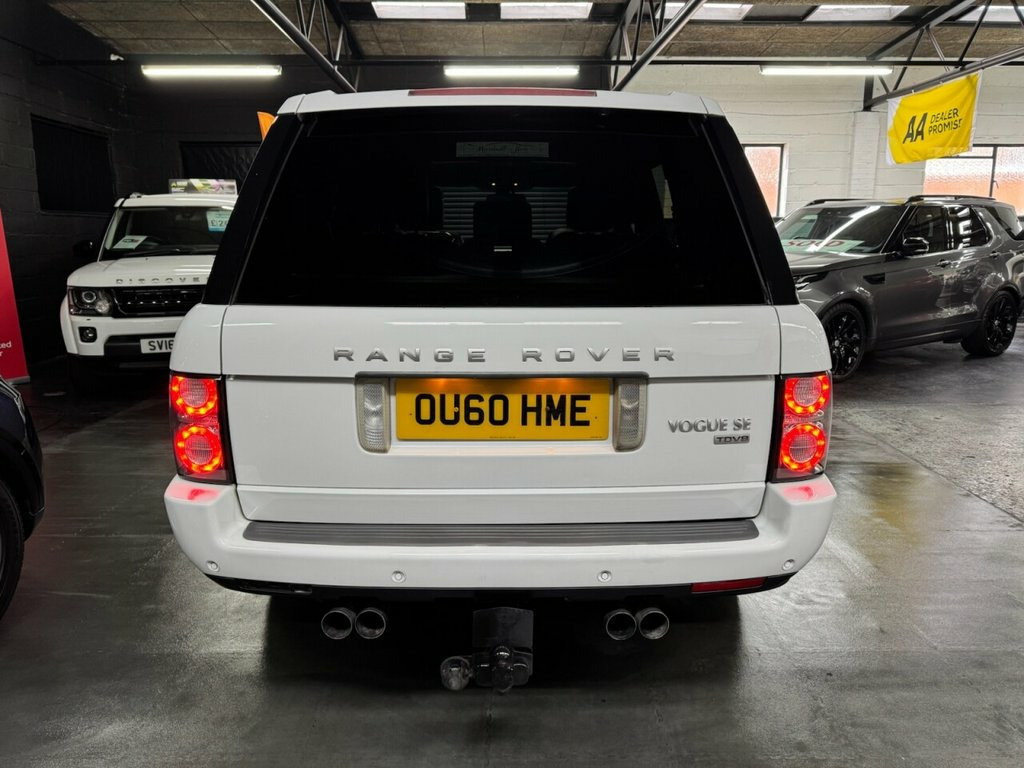 2011 Land Rover Range Rover 4.4 TDV8 Vogue SE Fuji White with Black Leather Interior 11 Services up to 120,000 miles 4.4 TDV8 Engine Satellite Navigation Heated and Cooled Seats Sunroof 20" Gloss Black Alloy Wheels Side Steps Reverse Camera Towbar Privacy Glass Heated Steering Wheel Cruise Control Piano Black Interior Inserts Xenon Headlights A beautifully maintained example of the iconic Range Rover Vogue SE, combining luxury, performance, and practicality. Finished in the sought-after Fuji White with a full Black Leather interior and an excellent service history, this vehicle represents outstanding value for anyone seeking a premium SUV that delivers comfort, style, and capability in equal measure. Fuji White, 20in Shadow chrome finish Alloy Wheels, Logic 7 Hi- fi 19 Speaker surround Sound, Bi- Xenon Headlights, Brushed tread plates with RR lettering, Burr Wood Trim, Cherry Wood Trim, Climate Control & Driver & Passe, Heated Leather Steering Wheel, Jet headlining, Jupiter grille & side vents, Leather gear knob & gaiter, Leather- Perforated semi- aniline- Jet, Logic 7 Hi- fi 14 Speaker surround Sound, Non smokers Pack, Parchment headlining, Privacy Glass, Rear view camera, Smokers Pack, Space saver spare Wheel