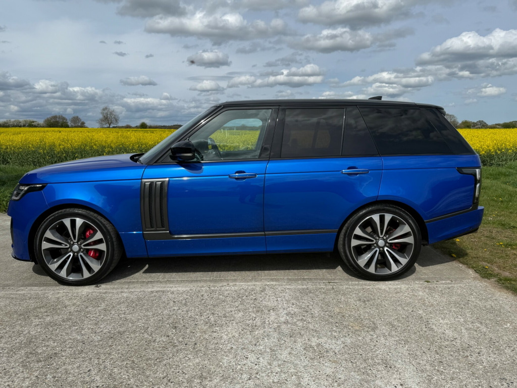 At Whitehart Service Station we are excited to offer this 2019 ''69'' Range Rover 5.0 SV Autobiography Dynamic finished in Premium Palette Blue with 59500 miles and a Full Service History. This Range Rover has a Ghost Immobiliser and a Meta Trak system. Specification includes an Ivory diamond-stitched interior, Panoramic Sliding Roof, Heated/Cooled Front and Rear Seats with Massage Modes for absolute comfort. Refrigerator in the centre armrest. Fully Reclined Rear Passenger Seats. Stay entertained on the go with cutting-edge technology and connectivity, Television Functionality & Signature Entertainment Package: rear 10'' screens with wireless headphones, Wifi connectivity and Meridian 4D surround sound. Ambient Lighting, Power-Folding Seats and much more. The personal number plate is not included in the sale. If you have any questions, call the showroom on 01702 202202 or Stuart directly on 07814 001598. v power socket, android auto, apple carplay, bluetooth connectivity, dab - digital audio broadcast, electrical towing preparation, meridian signature sound system, navigation pro, pro services and wi-fi hotspot, protect, remote premium, tv - digital, touch pro duo, usb sockets, 22in alloy wheels - 5 split spoke style 5087 with diamond turned finish and dark grey contrast, 22in full size spare wheel, acoustic laminated windscreen, auto-dimming power fold - heated door mirrors with memory and approach lights, bonnet and tailgate lettering - graphite atlas, contrast painted roof - narvik black, door handle surrounds - narvik black, electric windows with one-touch open-close and anti-trap, front bumper accent - graphite atlas, front grille mesh - gloss black, front grille mesh edging - graphite atlas with chrome inserts, front and rear recovery eyes, heated rear window, heated windscreen, integrated quad exhausts, laminated front and rear side glass, locking wheel nuts, mirror caps - narvik black, privacy glass, rear fog lights, red painted brake calipers, svautobiography dynamic badge, svautobiography dynamic exterior accents, side accent and door graphic - graphite atlas, side repeater indicators in mirror, sliding panoramic roof, solar attenuating windscreen, tailgate finisher in graphite atlas, 24-way heated and cooled hot-stone massage front seats with executive class comfort-plus rear seats, armrests - front - driver and passenger, auto access height, auto-dimming interior rear view mirror, black gearshift paddles, centre console with storage and armrest, configurable ambient interior lighting, customer configurable single point entry, electrically adjustable steering column, four zone climate control, front centre console cooler compartment, front and rear cupholders, front and rear grab handles, glovebox - lockable, illuminated aluminium treadplates with illuminated svautobiography lettering, interactive driver display, leather steering wheel, loadspace compartment light, loadspace cover - hinged with hardcover, luggage tie-downs in loadspace, multi-function steering wheel, non smokers pack, powered gesture tailgate - boot lid, premium carpet mats, push button start, rain sensing windscreen wipers, rear centre armrest, svautobiography pedals with knurled effect, soft door close, steel weave carbon fibre trim finisher, steering wheel - heated, twin blade sunvisor with illuminated vanity mirrors, 360 degree parking aid, 360 degree surround camera system, atpc - all terrain progress control, active rear locking differential, adaptive cruise control with steering assist, adaptive dynamics, blind spot assist, driver condition monitor, dynamic response, epas - electronic power assisted steering, electronic air suspension, park assist, park heat with remote control, tpms - tyre pressure monitoring system, terrain response 2, traffic sign recognition and adaptive speed limiter, trip computer, voice control, abs - anti lock braking system, airbags - curtain, airbags - front side, autonomous emergency braking - city-urban and pedestrian, cbc - cornering brake control, clear exit monitor, customer configurable autolock, dsc - dynamic stability control, ebd - electronic brake-force distribution, epb - electronic park brake, etc - electronic traction control, front airbags with passenger seat occupant detector, hdc - hill descent control, high speed emergency braking, hill launch assist, intrusion sensor, keyless entry, lane keep assist, low traction launch, perimetric and volumetric alarm with engine immobilisation, power operated child locks, rsc - roll stability control, rear isofix, rear traffic monitor, rear wash wiper, secure tracker, tsa - trailer stability assist, wade sensing, automatic headlights, centre high mounted stop light, follow me home lighting, front fog lights, headlight power wash, pixel-laser led headlights with signature drl, rear lights - led