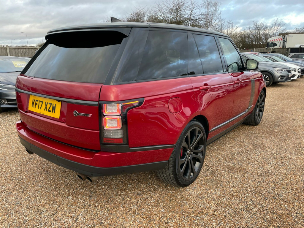 This 2017 Land Rover Range Rover V8 SV Autobiography Dynamic boasts an exceptional full dealership service history, a testament to its meticulous care. This premium model features a powerful 5.0 litre petrol engine paired with a Four Wheel Drive drivetrain, ensuring robust performance and capability. With a Euro 6 emission class, it meets modern environmental standards. Notable features include a Head Up Display for convenient information access, an electrically deployable towbar with a 3000 kg towing weight, and advanced parking assistance with front and rear park distance sensors and visual display, alongside parallel and perpendicular park assist. Front and rear recovery hooks are also included.This Range Rover offers impressive acceleration, reaching 0-60mph in just 5.1 seconds, a performance highlight that sets it apart from many similar vehicles. Its low mileage of 60,000 miles for its age is another key advantage, suggesting less wear and tear. The generous boot space provides ample room for luggage or equipment, making it a practical choice for various needs. A 6 months warranty and a 12 months MOT provided on purchase offer further peace of mind for the next owner.. 20in Brake Calipers, 22in Alloy Wheels - 5 Split Spoke Diamond Turned Finish Style 514, 360 Degree Parking Aid, 360 Degree Surround Camera System, ABS - Anti Lock Braking System, ASL - Active Speed Limiter, ATPC - All Terrain Progress Control, Active Rear Locking Differential, Adaptive Cruise Control with Queue Assist and Intelligent Emergency Braking, Adaptive Dynamics, Adaptive Xenon Headlamps with LED Signature Lighting, Adjustable - Auto Dimming - Heated - Power Fold Memory Exterior Mirrors with Approach Lamps, Auto Dimming Rear View Mirror, Automatic High Beam Assist, Autonomous Emergency Braking - City-Urban and Pedestrian, Auxiliary Power Sockets, Blind Spot Assist with Reverse Traffic Detection, Blind Spot Monitor with Reverse Traffic Detection, Bluetooth Phone Connection, Body Coloured Door Handles and Front Bumper Vent Blades, CBC - Cornering Brake Control, Centre Mounted Stop Light, Contrast Painted Roof - Narvik Black, Customer Configurable Autolock - Doors Lock on Driveaway, Customer Configurable Interior Mood Lighting, Customer Configurable Single Point Entry, DAB - Digital Audio Broadcast, DSC - Dynamic Stability Control, Daytime Running Lights, Driver Condition Monitor, Driver and Passenger Airbags, Driver and Passenger Armrest, Driver and Passenger Twin Blade Sunvisor with Illuminated Vanity Mirror, Dual View Touchscreen, EBA - Electronic Brake Assist, EBD - Electronic Brake-Force Distribution, EPAS - Electronic Power Assisted Steering, ESP - Electronic Stability Program, ETC - Electronic Traction Control, Electric Windows - Front and Rear, Electrical Towing Preparation, Electronic Cross Linked Air Suspension, Extended Veneer Pack, Follow Me Home Lighting, Four Zone Climate Control, Front Centre Console Cooler Compartment, Front Fog Lights, Front Grille Ribs Finished in Bright Chrome Plating, Front Grille and Mesh in Bright Atlas, Front Premium Carpet Mats, Front Row Leather Covered Seat-back Pockets, Front and Rear Cupholders, Front and Rear Park Distance Sensors with Visual Display, Front and Rear Recovery Hooks, Full Size Spare Wheel, Gesture Tailgate, Graphite Atlas Exterior Accents Pack, HDC - Hill Descent Control, HDD Premium Navigation, Hazard Lights Under Heavy Braking, Heated Windscreen, ISOFIX Child Seat Anchor Points, Illuminated Aluminium Tread Plates with Unique Autobiography Script, InControl Apps, InControl Protect, InControl Remote Premium for Warranty Period, InControl Secure for Warranty Period, InControl Touch Pro - 10.2in Touchscreen, Intrusion Sensor, Keyless Entry with Push Start Button, Lane Keep Assist, Loadspace Anchor Points, Loadspace Compartment Light, Loadspace Cover - Hinged with Hardcover, Locking Wheel Nuts, Meridian Digital Reference Sound System, Misfuel Protection Device, Non Smokers Pack, Park Assist - Parallel-Parking Exit and Perpendicular Park, Perimetric and Volumetric Alarm with Engine Immobilisation, Power Operated Child Locks, Pro Services for Warranty Period, RSC - Roll Stability Control, Rain Sensing Windscreen Wipers, Rear Fog Lights, Rear Lights - LED, Remote Park Heat with Timed Climate, SVAutobiography Dynamic Badge, SVAutobiography Dynamic Seat, Seats - Semi Aniline Leather Rear Executive Class Style 27, Secure Glove Box Stowage, Sliding Panoramic Roof, Soft Door Close, Solar Attenuating Windscreen with Laminated Hydrophobic Front Door Glass and Rear Door - Quarter Light and Rear Windscreen Privacy Glass, Steering Wheel - Heated, TPMS - Tyre Pressure Monitoring System, Television, Terrain Response 2 Auto, Traffic Sign Recognition and Intelligent Speed Limiter, Trailer Stability Control, USB Sockets, Veneer - Grand Black with Red Key Line, Wade Sensing, Head Up Display, Rear Seat Entertainment System - with 10.2in Screen, Electrically Deployable Towbar, Privacy Glass, Semi Aniline Perforated Leather - Ebony-Pimento Duo-Tone with Ebony-Pimento Interior, Advanced Tow Assist, Headlining - Alston - Ebony. Full dealership history
