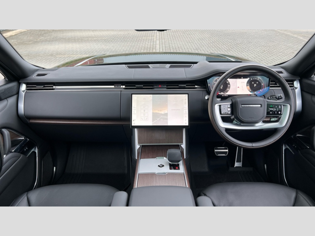 Land Rover Range Rover 3.0 D350 Autobiography 4dr Auto 13.1" Touchscreen, 3D surround camera inc frwd traffic detection,vehicle clearance guidance,3D view,clearsight ground view,manoevure light,360 parking aid,wade sensing, Adaptive cruise control with steering assist, All Terrain Info Centre, All wheel steering, Blind spot assist, Bluetooth connectivity streaming, Configurable programs, Driver monitoring and response with driver facing camera & driver distraction monitor, Eco mode, Electric power assisted steering (EPAS), Emergency call service, Front and rear parking aid, Head up Display, Interactive driver display, Lane keep assist, Park assist, Powered gesture tailgate/boot lid, Rear collision monitor, Rear traffic monitor, Remote, Traffic sign recognition with adaptive speed limiter, Wi-Fi Enabled with data plan, Wireless Apple CarPlay/Android Auto, Wireless device charging, 8 speed automatic transmission, Active damper technology system, Adaptive dynamics, Adaptive off-road cruise control, All Wheel Drive (AWD), Automatic access height, Terrain Response 2 Auto, Twin speed transfer box, Digital Audio Broadcast radio-DAB, Meridian 1600W signature sound system, Pivi pro including smart settings, Connected navigation pro, nuance speech, USB socket, Acoustic laminated windscreen, Animated directional indicators, Automatic headlights, Automatic levelling headlights, Centre high mounted stop light, ClearSight interior rear view mirror, Electric windows with one touch open/close and anti trap, Engine cover, Flush deployable exterior door handles, Front and rear recovery eyes, Front fog lights including cornering lamp, Headlamp power wash, Heated rear window, Heated washer jets, Illuminated metal treadplates with Autobiography script, Laminated front and rear side glass, LED tail lights, Power fold, auto-dimming, heated door mirrors with approach lights, Rain sensing windscreen wipers, Rear boot, Rear fog lights, Rear side wing doors, Side repeater indicators in mirror, Solar attenuating windscreen, Standard bonnet, Winter wiper park position, 3 seat bench in 2nd row, 30 Colours configurable cabin lighting with 4 lighting zones, Air quality sensor, Auto folding loadspace cover, Bright metal pedals, Cabin air purification pro, Customer configurable single point entry, Driver and passenger front seat armrests, Easy boot loading, Ebony Carpet, Electric rear side window sunblinds, Four zone climate control, Front and rear cupholders, Front and rear grab handles, Front centre console refrigerator compartment, Front head restraints, Heated steering wheel, Hook in load space, Loadspace light, Luggage tie down in loadspace, Multifunction steering wheel, Rear centre armrest, Rear head restraints, Rear ISOFIX, Satin chrome gearshift paddles, Single front passenger seat, Soft close doors, SV bespoke carpet mats, Twin blade sunvisors with Illuminated vanity mirrors, Upper and lower glovebox, Online pack with data plan - Range Rover, 3x3 point rear seat belts, Anti-lock braking system (ABS), Black brake calipers, Brake hold function, Cornering brake control (CBC), Customer configurable autolock, DSC - Dynamic Stability Control, Electronic brake force distribution, Electronic parking brake, Electronic traction control, Emergency braking, Front airbags with passenger seat occupant detector, Front side airbags, Hill descent control, Hill launch assist, Illuminated seat belt buckles, Low traction launch, Occupant protection assist, Power operated child locks, Roll stability control, Tyre pressure monitoring system (TPMS), Immobiliser, Intrusion sensor and alarm, Keyless entry, Locking wheel nuts, Remote central locking, Noble chrome controls
