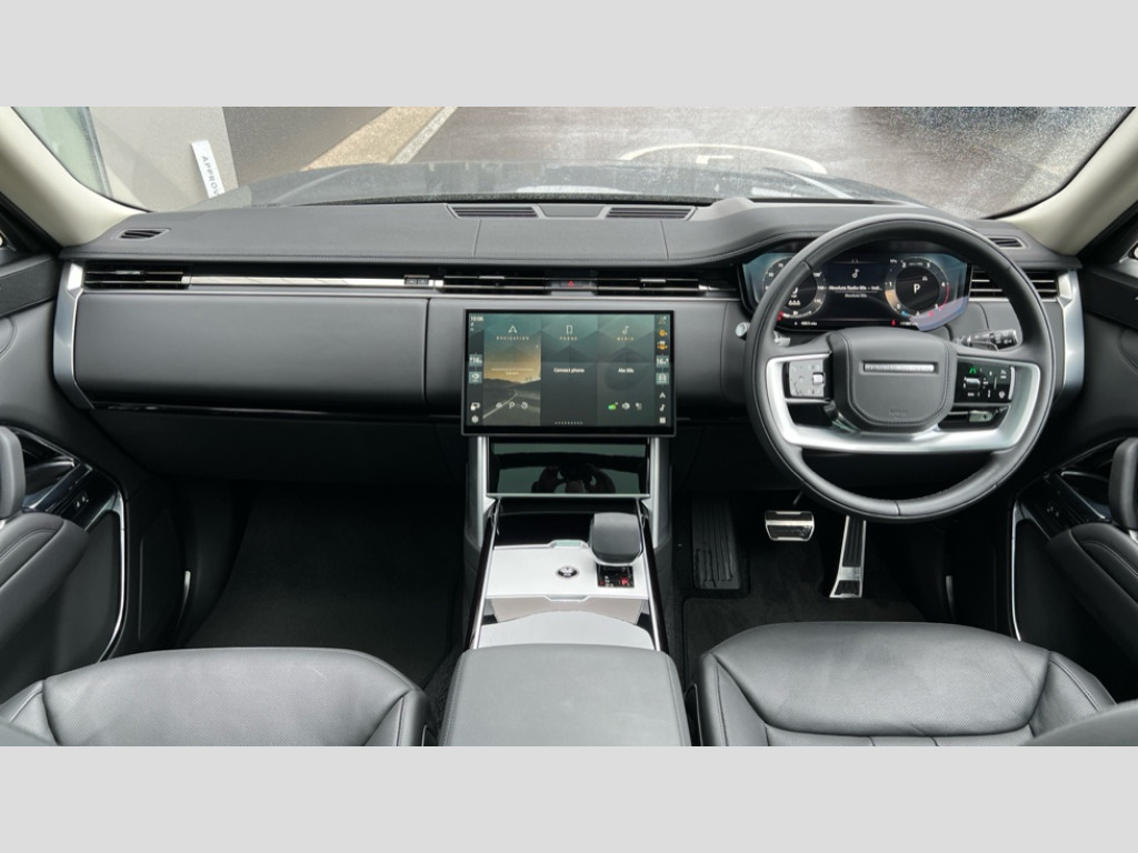 Land Rover Range Rover 3.0 D350 SE 4dr Auto 13.1" Touchscreen, 3D surround camera inc frwd traffic detection,vehicle clearance guidance,3D view,clearsight ground view,manoevure light,360 parking aid,wade sensing, All Terrain Info Centre, All wheel steering, Android Auto, Apple car play, Blind spot assist, Bluetooth connectivity streaming, Driver condition response, Eco mode, Electric power assisted steering (EPAS), Emergency call service, Front and rear parking aid, Interactive driver display, Lane keep assist, Park assist, Rear collision monitor, Rear traffic monitor, Remote, Traffic sign recognition with adaptive speed limiter, Wi-Fi Enabled with data plan, Wireless device charging with phone signal booster, 8 speed automatic transmission, Active damper technology system, Adaptive dynamics, Adaptive off-road cruise control, All Wheel Drive (AWD), Automatic access height, Terrain Response 2 Auto, Twin speed transfer box, Digital Audio Broadcast radio-DAB, Pivi pro including smart settings, Connected navigation pro, nuance speech, USB socket, Acoustic laminated windscreen, Animated directional indicators, Automatic headlights, Automatic levelling headlights, Centre high mounted stop light, Electric windows with one touch open/close and anti trap, Engine cover, Flush deployable exterior door handles, Front and rear recovery eyes, Front fog lights, Headlamp power wash, Heated rear window, Heated washer jets, Illuminated aluminum treadplates with Range Rover script, LED tail lights, No badges, Pixel LED headlights with signature DRL, Power fold, auto-dimming, heated door mirrors with approach lights, Rain sensing windscreen wipers, Rear boot, Rear fog lights, Rear side wing doors, Side repeater indicators in mirror, Trailer stability assist, Winter wiper park position, 12V power sockets, 3 seat bench in 2nd row, Air quality sensor, Bright metal pedals, Cabin lighting, Customer configurable single point entry, Driver and passenger front seat armrests, Easy boot loading, Ebony Carpet, Front and rear cupholders, Front and rear grab handles, Front head restraints, Gearshift paddles, Heated steering wheel, Hook in load space, Loadspace light, Luggage tie down in loadspace, Multifunction steering wheel, Rear centre armrest, Rear head restraints, Rear ISOFIX, Single front passenger seat, Soft close doors, Upper and lower glovebox, Online pack with data plan - Range Rover, 3x3 point rear seat belts, Anti-lock braking system (ABS), Brake hold function, Cornering brake control (CBC), Customer configurable autolock, DSC - Dynamic Stability Control, Electronic brake force distribution, Electronic parking brake, Electronic traction control, Emergency braking, Front airbags with passenger seat occupant detector, Front side airbags, Hill descent control, Hill launch assist, Low traction launch, Occupant protection assist, Power operated child locks, Roll stability control, Tyre pressure monitoring system (TPMS), Immobiliser, Intrusion sensor and alarm, Keyless entry, Locking wheel nuts, Remote central locking, Noble chrome controls