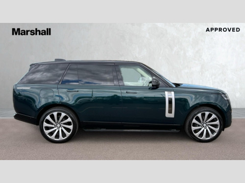 Land Rover Range Rover 3.0 D350 SV LWB 4dr Auto 13.1" Touchscreen, 3D surround camera inc frwd traffic detection,vehicle clearance guidance,3D view,clearsight ground view,manoevure light,360 parking aid,wade sensing, Adaptive cruise control with steering assist, All Terrain Info Centre, All wheel steering, Android Auto, Apple car play, Blind spot assist, Bluetooth connectivity streaming, Configurable programs, Driver condition response, Eco mode, Electric power assisted steering (EPAS), Emergency call service, Front and rear parking aid, Head up Display, Homelink (programmable garage door opener), Interactive driver display, Lane keep assist, Powered gesture tailgate/boot lid, Rear collision monitor, Rear traffic monitor, Remote, Traffic sign recognition with adaptive speed limiter, Wi-Fi Enabled with data plan, Wireless device charging with phone signal booster, 8 speed automatic transmission, Active damper technology system, Adaptive dynamics, All terrain progress control, All Wheel Drive (AWD), Automatic access height, Electronic active differential with torque vectoring by braking, Electronic air suspension with dynamic response, Terrain Response 2 Auto, Twin speed transfer box, Digital Audio Broadcast radio-DAB, Meridian 1600W signature sound system, Pivi pro including smart settings, Connected navigation pro, nuance speech, USB socket, Acoustic laminated windscreen, Animated directional indicators, Automatic headlights, Automatic levelling headlights, Centre high mounted stop light, ClearSight interior rear view mirror, Digital LED headlights with signature DRL and image projection, Electric windows with one touch open/close and anti trap, Flush deployable exterior door handles, Front and rear recovery eyes, Front fog lights, Headlamp power wash, Heated rear window, Heated washer jets, Illuminated aluminum treadplates with illuminated SV script, Laminated front and rear side glass, LED tail lights, Power fold, auto-dimming, heated door mirrors with approach lights, Privacy glass, Rain sensing windscreen wipers, Rear boot, Rear fog lights, Rear side wing doors, Rear wash/wipe, Side repeater indicators in mirror, Solar attenuating windscreen, SV branded puddle lamps, SV etched roundel on side gill inserts, SV exclusive front bumper and grille design, SV exterior badge, SV white ceramic exterior badge with black SV roundel, Trailer stability assist, Winter wiper park position, 12V power sockets, 24-way heated and cooled, hot stone massage electric front seats with Executive Class Comfort Plus rear seats - 401AS, 3 seat bench in 2nd row, Air quality sensor, Auto folding loadspace cover, Bright metal pedals, Cabin air purification pro, Cabin lighting, Cabin pre-conditioning, Customer configurable single point entry, Domestic plug socket, Driver and passenger front seat armrests, Easy boot loading, Electric rear side window sunblinds, Four zone climate control, Front and rear cupholders, Front and rear grab handles, Front centre console refrigerator compartment, Front head restraints, Gearshift paddles, Heated steering wheel, Hook in load space, Loadspace light, Luggage tie down in loadspace, Multifunction steering wheel, Rear centre armrest, Rear head restraints, Rear ISOFIX, Single front passenger seat, SV exclusive seat foams and sculpting, SV exclusive seat pattern embroidery/ perforation, SV exclusive speaker grille design, SV start up graphics in IP screen, Twin blade sunvisors with Illuminated vanity mirrors, Upper and lower glovebox, Versatile loadspace floor in tailgate, Online pack with data plan - Range Rover, 3x3 point rear seat belts, Anti-lock braking system (ABS), Brake hold function, Cornering brake control (CBC), Customer configurable autolock, DSC - Dynamic Stability Control, Electronic brake force distribution, Electronic parking brake, Electronic traction control, Emergency brake assist, Emergency braking, Front airbags with passenger seat occupant detector, Front side airbags, Hill descent control, Hill launch assist, Illuminated seat belt buckles, Low traction launch, Occupant protection assist, Power operated child locks, Roll stability control, Tyre pressure monitoring system (TPMS), Activity key, Immobiliser, Intrusion sensor and alarm, Keyless entry, Locking wheel nuts, Remote central locking, SV exclusive key fob with white and black SV roundel, Gloss white ceramic controls