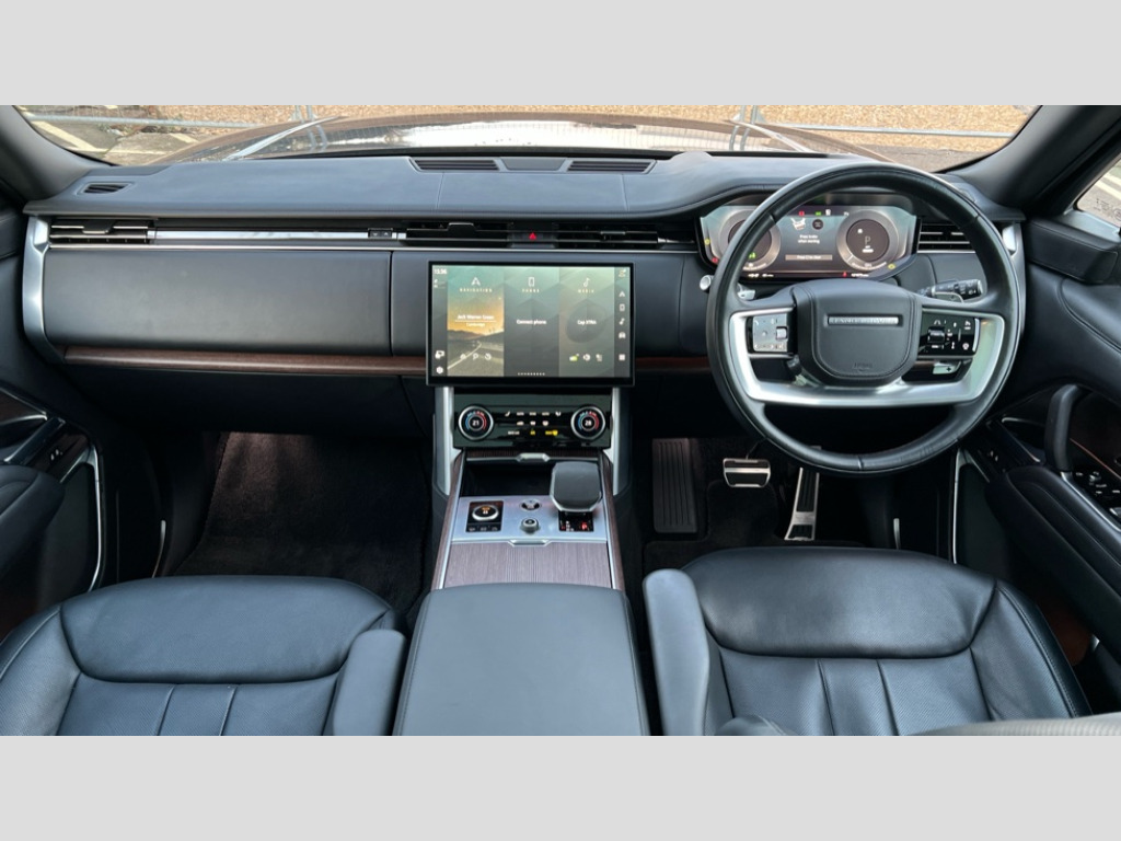 Land Rover Range Rover 3.0 P440e Autobiography 4dr Auto 13.1" Touchscreen, 3D surround camera inc frwd traffic detection,vehicle clearance guidance,3D view,clearsight ground view,manoevure light,360 parking aid,wade sensing, Adaptive cruise control with steering assist, All Terrain Info Centre, All wheel steering, Android Auto, Apple car play, Blind spot assist, Bluetooth connectivity streaming, Configurable programs, Driver condition response, Eco mode, Electric power assisted steering (EPAS), Emergency call service, Head up Display, Interactive driver display, Lane keep assist, Powered gesture tailgate/boot lid, Rear collision monitor, Rear traffic monitor, Remote, Traffic sign recognition with adaptive speed limiter, Wi-Fi Enabled with data plan, Wireless device charging with phone signal booster, 7 kW onboard charger, 8 speed automatic transmission, Active damper technology system, Adaptive dynamics, All terrain progress control, All Wheel Drive (AWD), Automatic access height, Home charging cable 5m Mode 2 including plugs, Public charging cable 5m Mode 2 including plugs, Terrain Response 2 Auto, Twin speed transfer box, Digital Audio Broadcast radio-DAB, Pivi pro including smart settings, Connected navigation pro, nuance speech, USB socket, Acoustic laminated windscreen, Animated directional indicators, Automatic headlights, Automatic levelling headlights, Centre high mounted stop light, ClearSight interior rear view mirror, Electric windows with one touch open/close and anti trap, Flush deployable exterior door handles, Front and rear recovery eyes, Front fog lights, Headlamp power wash, Heated rear window, Heated washer jets, Illuminated metal treadplates with Autobiography script, Laminated front and rear side glass, LED tail lights, Power fold, auto-dimming, heated door mirrors with approach lights, Rain sensing windscreen wipers, Rear boot, Rear fog lights, Rear side wing doors, Rear wash/wipe, Side repeater indicators in mirror, Solar attenuating windscreen, Trailer stability assist, Winter wiper park position, 12V power sockets, 3 seat bench in 2nd row, Air quality sensor, Auto folding loadspace cover, Bright metal pedals, Cabin air purification pro, Cabin lighting, Customer configurable single point entry, Driver and passenger front seat armrests, Easy boot loading, Ebony Carpet, Electric rear side window sunblinds, Four zone climate control, Front and rear cupholders, Front and rear grab handles, Front head restraints, Gearshift paddles, Heated steering wheel, Hook in load space, Loadspace light, Luggage tie down in loadspace, Multifunction steering wheel, Rear centre armrest, Rear head restraints, Rear ISOFIX, Single front passenger seat, SV bespoke carpet mats, Twin blade sunvisors with Illuminated vanity mirrors, Upper and lower glovebox, Versatile loadspace floor in tailgate, Online pack with data plan - Range Rover, 3x3 point rear seat belts, Anti-lock braking system (ABS), Black brake calipers, Brake hold function, Cornering brake control (CBC), Customer configurable autolock, DSC - Dynamic Stability Control, Electronic brake force distribution, Electronic parking brake, Electronic traction control, Emergency brake assist, Emergency braking, Front airbags with passenger seat occupant detector, Front side airbags, Hill descent control, Hill launch assist, Illuminated seat belt buckles, Low traction launch, Occupant protection assist, Power operated child locks, Roll stability control, Tyre pressure monitoring system (TPMS), Immobiliser, Intrusion sensor and alarm, Keyless entry, Locking wheel nuts, Remote central locking, Noble chrome controls