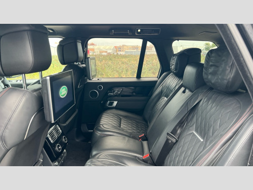 Land Rover Range Rover 5.0 V8 S/C 565 SVAutobiography Dynamic 4dr Auto 360 degree Park Distance Control, 360 degree surround camera, Blind spot assist, Bluetooth mobile phone connection, Clear exit monitor, Driver condition monitor, Dynamic response, Dynamic route guidance, Electric power assisted steering (EPAS), InControl remote premium, InControl secure Tracker, Interactive Driver display instrument cluster, Lane keep assist, Navigation pro system with 10" touch screen, app interface and media storage, Park Assist - Parallel Park/Parking Exit/Perpendicular park, Powered gesture tailgate/boot lid, Pro services and wifi hotspot, Push button starter, Rear camera wash, Rear traffic monitor, Rotary shifter, Service interval indicator, Surround camera system, Touch pro duo system, Traffic sign recognition with adaptive speed limiter, Trip computer, Voice control system, Wade Sensing, 8 speed automatic transmission, Active rear locking differential, Adaptive dynamics, All terrain progress control, All Wheel Drive (AWD), Automatic access height, Electronic air suspension, Terrain Response 2 Auto, Twin speed transfer box, Digital Audio Broadcast radio-DAB, Digital TV, InControl app, InControl protect, USB socket, Acoustic windscreen, Auto dimming interior rear view mirror, Auto self levelling headlights, Automatic headlights, Body coloured bumpers, Centre high mounted stop light, Door/quarter lights in toughened plate glass, Electric windows with one touch open/close and anti trap, Electrical towing preparation, Follow me home headlights, Front and rear recovery eyes, Front fog lights, Headlamp power wash, Heated rear window, Heated windscreen, Illuminated aluminium treadplates with SVAutobiography script, Integrated Quad exhaust, Laminated front and rear side glass, LED rear lamps, LED tail lights, Pixel laser LED headlights with signature DRL, Power fold, auto-dimming, heated door mirrors with memory and approach lights, Power front/rear windows with global close, Rain sensing windscreen wipers, Rear fog lights, Rear wash/wipe, Side repeater indicators in mirror, Solar attenuating windscreen, SVAutobiography dynamic badge, SVAutobiography dynamic exterior accents, Trailer stability assist, 12V power point in luggage area, 12V power sockets, 24 way heated and cooled hot stone massage front seats with executive class comfort plus rear seats, 3 rear headrests, Centre console with storage and armrest, Configurable Ambient interior lighting, Customer configurable single point entry, Driver and passenger front seat armrests, Easy boot loading, Electrically adjustable steering column, Extreme passenger seat away, Folding rear seats, Foot rest (behind front passenger only), Four zone climate control, Front and rear cupholders, Front and rear grab handles, Front seat back map pockets, Heated rear armrest with Heated calf rest and heated seat back map pocket, Heated steering wheel, Loadspace cover, Loadspace light, Lockable glovebox, Luggage compartment lighting, Luggage tie down in loadspace, Parking heat with remote control, Power deployable rear centre console, Premium carpet mats, Quilted Perforated Semi-Aniline leather upholstery, Rear centre armrest, Rear ISOFIX, Rear seat adjustable bolsters, Rear seat lumbar and powered headrest with wings, Rear upper seat articulation, Remote intelligent seat fold, Soft close doors, SV Autobiography pedals with knurled effect, Through load facility, Twin blade sunvisors with Illuminated vanity mirrors, 3 rear 3 point seatbelts, Anti-lock braking system (ABS), Auto lock system when vehicle in motion, Cornering brake control (CBC), Curtain airbags, Customer configurable autolock, Driver/front passenger head+thorax airbag, Drivers knee airbag, DSC - Dynamic Stability Control, Electronic brake force distribution, Electronic parking brake, Electronic traction control, Emergency brake assist, Emergency braking, ESP, Front airbags with passenger seat occupant detector, Front seatbelt pretensioners with force limiters, Front side airbags, Height adjustable front seatbelts, High speed emergency braking, Hill descent control, Hill launch assist, Low traction launch, Power operated child locks, Roll stability control, Tyre pressure monitoring system (TPMS), Immobiliser, Intrusion sensor and alarm, Keyless entry, Locking wheel nuts, Remote central locking