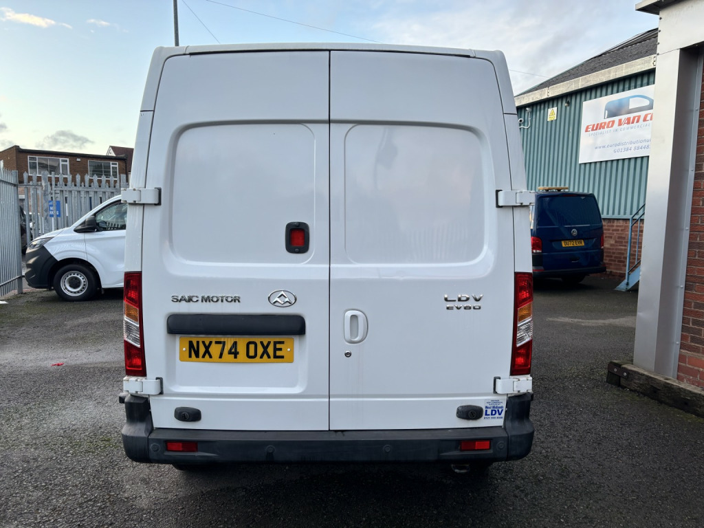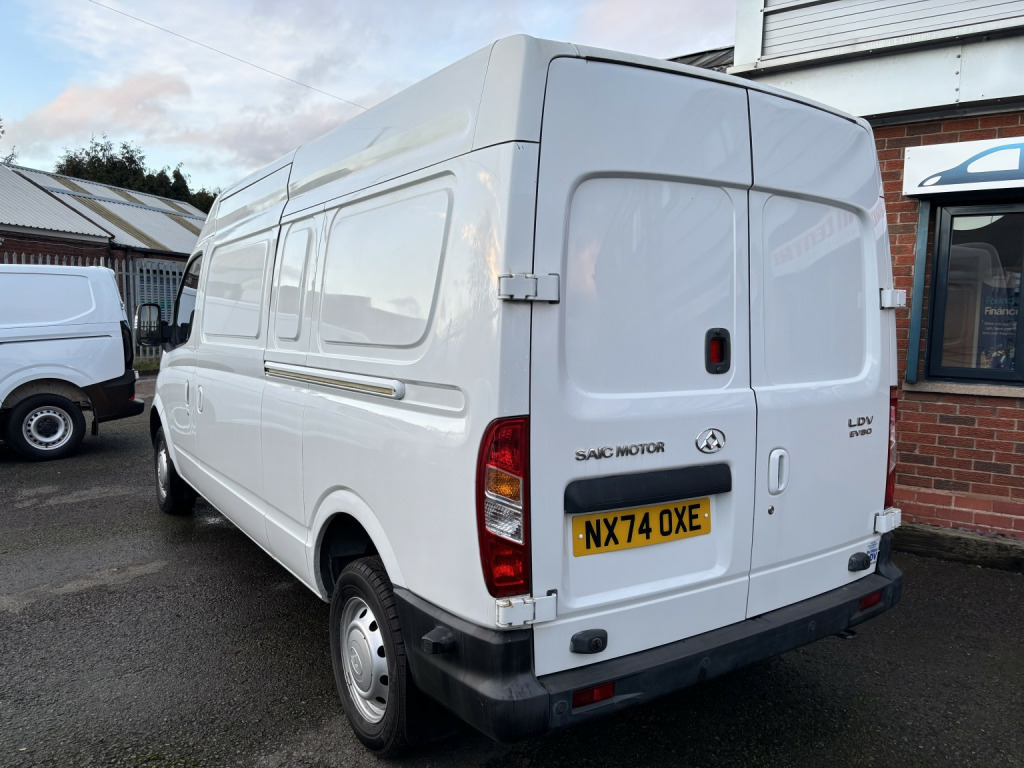 The all-electric LDV EV80 panel van has a 56 kWh lithium-ion-phosphate EV battery. The electric van has a claimed range up to 120 miles (NEDC). Of course, the real-world e-range will be lower, impacted by a number of factors. A 90 miles e-range will be more realistic. , The e-van offer DC charging capability up to 30kW DC and can be charged up to 80% in 90 minutes. The EV80 incorporates a 6.6kW AC (single-phase) onboard charger as standard. However, the manufacturer does offer an option to upgrade to a three-phase onboard AC charger. If you have access to three-phase EV charging, we would recommend upgrading. Using a single-phase EV charger, it will take up to 7 hours for a full charge. , According to the automotive manufacturer, the LDV EV80 is the most sophisticated electric power system high-capacity lithium ion phosphate battery, permanent magnet synchronous electric motor controller bringing you high-efficiency and steady power output. The EV has a high power PMSM power: 92 kW and 320 NM of torque (123 hp). , The LDV electric van is available in a high roof (5700 mm x 1998 mm x 2552 mm) and medium roof (5700 mm x 1998 mm x 2345 mm) option. Both have a wheel base of 3850 mm and can achieve 0 to 62 mph in 24 sec. The Gross Vehicle Weight (GVW) is 3,500 kg and the Unladen Vehicle Weight (UVW) is 2,495 kg. , Standard interior features include, air conditioning (front), power windows (front), three-seater cabin, drivers seat with arm rest and FM/AM/MP3 player, electric park brake system, digital intelligent CVT and a single sliding door for easy access. Vehicle registered: 30/01/2025