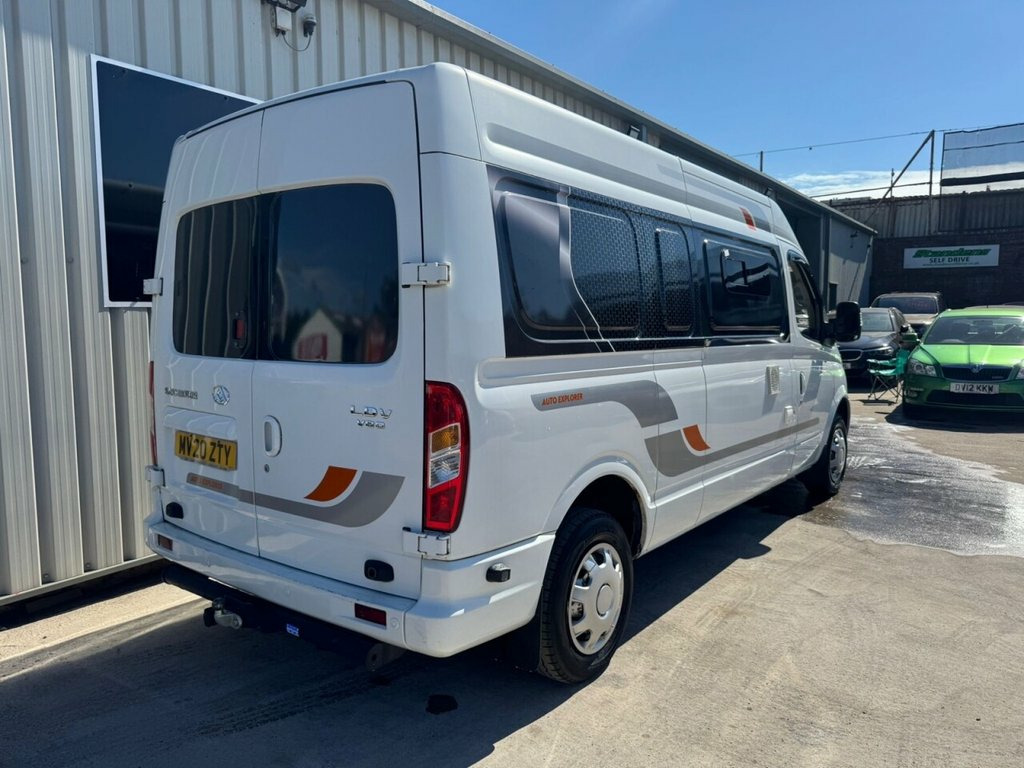 August 2020 LDV V80 2 Berth Motorhome finished in white. This is a high quality/standard conversion carried out by a professional company, The van has covered 130k miles from new and had just 1 previous keeper from new, The van has been registry serviced and maintained regardless to cost. The LDV starts runs and drives superb and is very spacious and comfortable inside, the specification includes fully insulated with laminate flooring & frontal partition, Large Power Invertor, Pifco Air Condition Unit, Cook works Oven & Hobs Large Bush Television wall mounted, 240V plugs, Rock & Roll Bed, LED Lighting, Shelving & Storage Cupboards, electric windows, power steering, remote central locking, electric mirrors, power steering. There is a small singled bed at the rear of the van which is perfect for a child or pet. 12 MONTHS MOT - NATIONWIDE EXTENDABLE WARRANTY - 12 MONTHS AA BREAKDOWN COVER - FRESH SERVICE FOR THE SALE   Blanc White, Cloth - Grey, 16in Steel Wheels, 2 Adjustable Sunvisors, 2 Speakers, 255 Degree Opening Rear Doors - Unglazed, 3 Point Seatbelts for All Seats, 8 Way Adjustable Drivers Seat, ABS - Anti-Skid Braking System, Air Conditioning - Front, Auto Locking on Drive-Away, Aux Input Socket, BAS - Brake Assist System, Cold Start -20 Degrees, Courtesy Light, Cruise Control, Daytime Running Lights, Driver and Passenger Airbag, Driver and Passenger Deep Door Storage, Drivers Seat Armrest, EBA - Electronic Brake Assistance, EBD - Electronic Brake Force Distributio, ESP - Electronically Stability Programme, Easy Clean Non Slip Cargo Mat, Electrically Heated and Adjustable Door , FM-AM-MP3 Player a