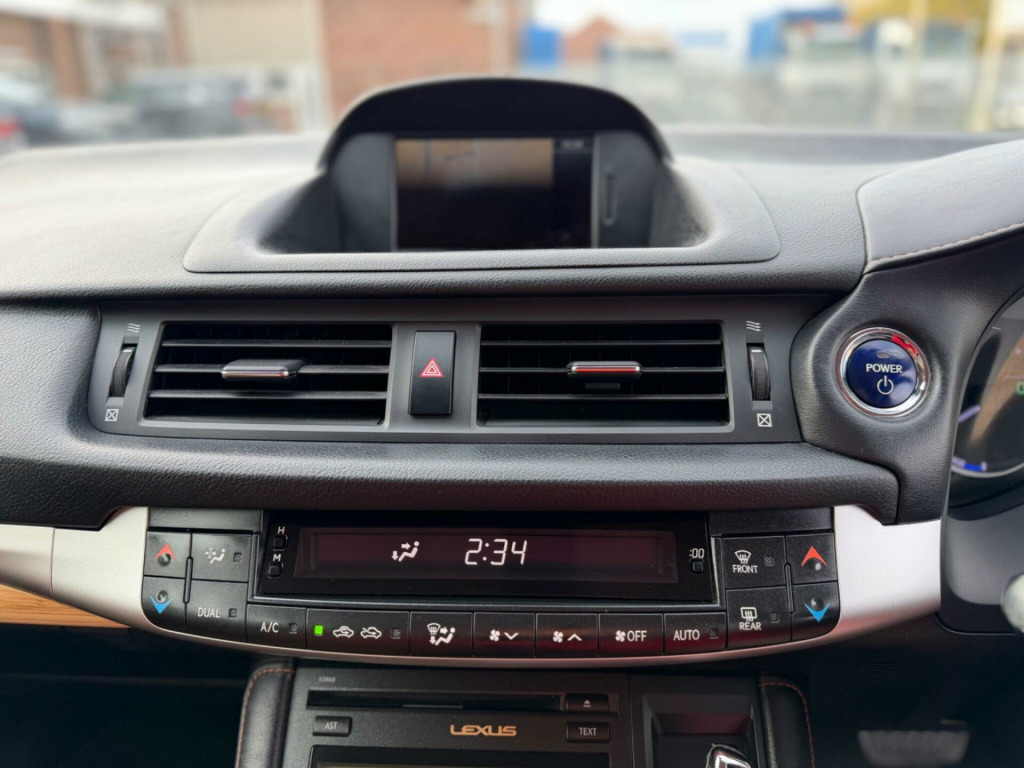 Discover this exceptional 2013 Lexus CT 200h Advance, boasting remarkably low mileage for its age at just 55,000 miles. This stylish hatchback is powered by an efficient 1.8L petrol hybrid engine, offering a smooth and economical driving experience. The Advance trim level comes equipped with a suite of convenient features, including dual zone climate control to keep all occupants comfortable, and a rear view camera complemented by front and rear parking sensors to make manoeuvring effortless. Stay connected on the go with Bluetooth connectivity, ensuring your music and calls are always within reach.This Lexus CT stands out with its impressive practicality, offering generous boot space for all your luggage and shopping needs. Furthermore, its placement in a low insurance group means you can enjoy peace of mind with potentially lower running costs, making it a sensible choice for many drivers. The combination of its advanced hybrid technology, low mileage, and thoughtful features makes this Lexus CT 200h Advance a compelling option for those seeking a refined and cost effective vehicle. in alloy wheels, 5.8in wqvga display, abs - anti-lock braking system, airbags - curtain shield, airbags - driver 2-stage, airbags - front knee, airbags - front side, audio system with speakers x6, airbags - passenger 2-stage, anti theft system alarm, bas - brake assist system, bluetooth connectivity, cd-radio, camera - rear view, climate control - dual zone, cruise control, door mirrors - electrical foldable - heated, driving modes - normal-eco-sport-comfort-ev, ebd - electronic brakeforce distribution, electric windows - front and rear, electrochromatic rear view mirror with integral parking monitor, front fog lights, headlights - halogen with daytime running lights - led, moveon navigation system, panasonic audio, parking assistance - front sensor, parking assistance - rear sensor, power steering - electric speed sensitive, push start button, rain sensitive windscreen wipers, rear privacy glass, seats - front 6-way manual adjustment, smart entry and start system, soft touch centre armrest pad, speed sensitive auto door lock, spoiler - rear, steering wheel - leather, steering wheel - tilt and telescopic, trc - traction control system, taillights and active brake lights - led, tyre repair kit, usb input, vsc - vehicle stability control, tahara synthetic leather - tan