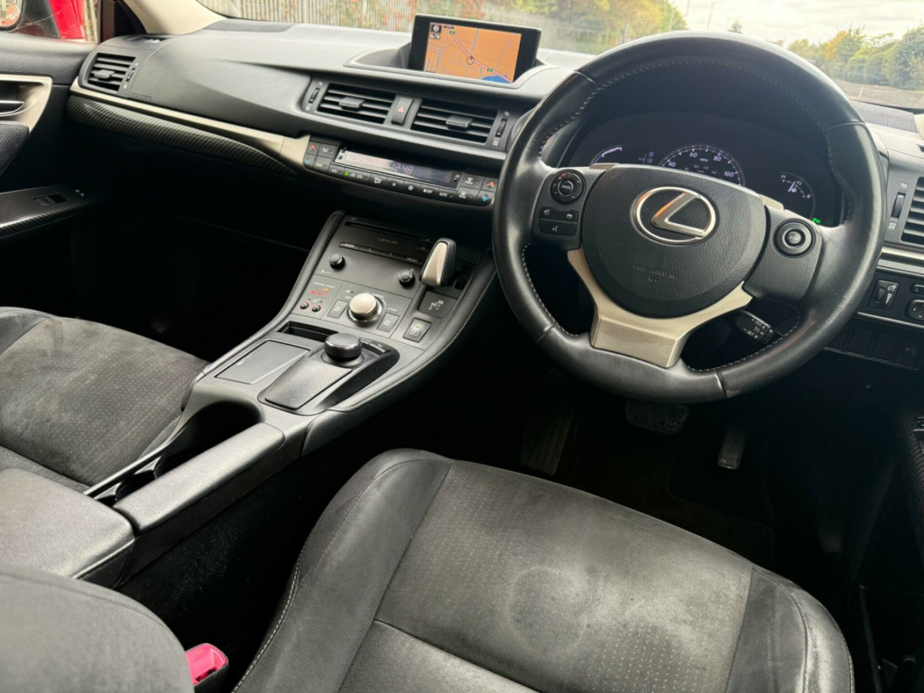 This 2014 Lexus CT 200h Advance is presented with a clear vehicle history check, offering peace of mind for its next owner. This stylish hatchback features a 1.8 litre petrol hybrid engine, meeting Euro 6 emissions standards. Inside, you'll find a wealth of desirable features including dual zone climate control for personalised comfort, heated front seats for those colder mornings, and a smart entry and start system for effortless access. Stay connected on the go with Bluetooth connectivity, and benefit from the convenience of front parking sensors to aid manoeuvring.The Lexus CT 200h Advance stands out with its exceptionally low insurance group, making it an economical choice for many drivers. Furthermore, its generous boot space provides ample room for shopping, luggage, or sports equipment, indicating its practicality for everyday use and longer journeys. These aspects, combined with its hybrid technology and refined Lexus build quality, position this vehicle as a compelling option when compared to other hatchbacks in its class. in alloy wheels, abs - anti-lock braking system, aux connection, airbags - curtain shield, airbags - driver 2-stage, airbags - front knee, airbags - front passenger cut off switch, airbags - front side, airbags - passenger 2-stage, anti theft system alarm, armrest - front, bas - brake assist system, bluetooth connectivity, cd-radio, climate control - dual zone, colour screen 7in, cruise control, dab radio, daytime running lights - led, door mirrors - electrical foldable - heated, driving modes - normal-eco-sport-comfort-ev, ebd - electronic brakeforce distribution, electric windows - front and rear, front fog lights, hac - hill assist control, headlights - hid - high intensity discharge-halogen, isofix child restraint system, immobiliser, inlays - black, parking assistance - front sensor, parking assistance - rear sensor, power steering - electric speed sensitive, push start button, rain sensitive windscreen wipers, rear privacy glass, remote rotary dial, satellite navigation - lexus navigation system, scuff plates - black, seats - front 6-way manual adjustment, seats - front heated, seats - passengers 4-way adjustment, shark fin antenna, smart entry and start system, space saver spare wheel, speakers x6, speed sensitive auto door lock, spoiler - rear, steering wheel - leather, steering wheel - tilt and telescopic, tpws - tyre pressure warning system, trc - traction control system, taillights and active brake lights - led, usb input, vsc - vehicle stability control, cloth - black
