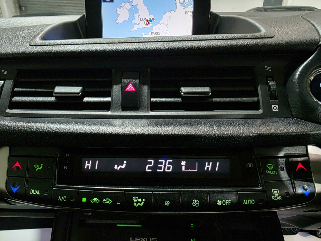 Service History, HPI Clear, Excellent condition, 3 Owner From NewSatellite Navigation - Lexus Navigation SystemColour Screen 7inBluetooth Audio StreamingBluetooth ConnectivityDAB RadioParking Assistance - Front SensorSeats - Front HeatedABS - Anti-Lock Braking SystemAUX ConnectionAirbags - Curtain ShieldAirbags - Driver 2-StageAirbags - Front KneeAirbags - Front Passenger Cut Off SwitchAirbags - Front SideAirbags - Passenger 2-StageArmrest - Soft Touch Centre PadAudible and Visual Seatbelt WarningBAS - Brake Assist SystemClimate Control - Dual ZoneCruise ControlDaytime Running Lights - LEDDoor Mirrors - Electrical Foldable - HeatedDouble Locking Door LockDriving Modes - Normal-Eco-Sport-Comfort-EVEBD - Electronic Brakeforce DistributionTRC - Traction Control SystemTaillights and Active Brake Lights - LEDUSB Connection x2UV-Reduction GlassVSC - Vehicle Stability ControlVTR CompatibilityVoice Command - Bluetooth Mobile Phone FunctionWIL - Whiplash Injury Lessening Front Seats and HeadrestsAnti Theft System Alarm, Folding Mirrors, Fog lights, Xenon light, Bluetooth, airbags, ABS, PAS, TPWS - Tyre Pressure Warning System17in Alloy Wheels - 5-Spoke tellite navigation - lexus navigation system, colour screen 7in, bluetooth audio streaming, bluetooth connectivity, dab radio, parking assistance - front sensor, seats - front heated, abs - anti-lock braking system, aux connection, airbags - curtain shield, airbags - driver 2-stage, airbags - front knee, airbags - front passenger cut off switch, airbags - front side, airbags - passenger 2-stage, armrest - soft touch centre pad, audible and visual seatbelt warning, bas - brake assist system, climate control - dual zone, cruise control, daytime running lights - led, door mirrors - electrical foldable - heated, double locking door lock, driving modes - normal-eco-sport-comfort-ev, ebd - electronic brakeforce distribution, electric windows - front and rear, front fog lights, front and rear seats - pre-tensioners, gearshift lever - leather trimmed with chrome inlay, hac - hill assist control, headlights - led with halogen high beam, heat insulating glass, illuminated entry system, immobiliser, inlays - black, parking assistance - rear sensor, pollen filter, power steering - electric speed sensitive, push start button, rain sensitive windscreen wipers, rear licence plate illumination - led, rear privacy glass, remote rotary dial, seats - driver 6-way manual adjustment, seats - front passenger - 4-way manual adjustment, smart entry and start system, space saver spare wheel, speakers x6 - panasonic, speed sensitive auto door lock, spoiler - rear, steering wheel - 3 spoke leather, steering wheel - multifunction, steering wheel - tilt and telescopic, trc - traction control system, taillights and active brake lights - led, usb connection x2, uv-reduction glass, vsc - vehicle stability control, vtr compatibility, voice command - bluetooth mobile phone function, wil - whiplash injury lessening front seats and headrests, anti theft system alarm, tpws - tyre pressure warning system, 17in alloy wheels - 5-spoke