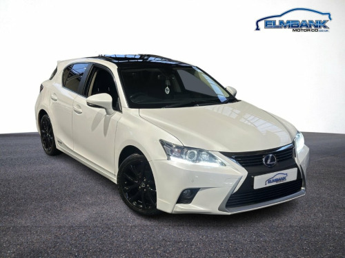 2015 65 LEXUS CT 1.8 200H ADVANCE PLUS HATCHBACK 5DR PETROL HYBRID CVT EURO 6 (S/S) (136ps). ULEZ PETROL HYBRID IN PEARLESCENT WHITE. SPECIFICATIONS INCLUDE: LEXUS NAVIGATION SYSTEM, HEATED FRONT SEATS, CRUISE CONTROL, FRONT AND REAR PARKING SENSORS, REMOTE DIAL CONTROL, HYBRID FUNCTIONALITY, BLUETOOTH CONNECTIVITY, VOICE RECOGNITION, SUNROOF, F SPORT ROOF SPOILER, TWO TONE PAINT FINISH, 17 INCH ALLOYS, CLIMATE CONTROL, DAB RADIO, MEDIA PLAYER. CAR COMES WITH 12 MONTHS MOT WITH NO ADVISORIES, INCLUDES PRE-DELIVERY SERVICE AND INSPECTION. WE CAN OFFER BESPOKE FINANCE PACKAGES AND PART EXCHANGE FACILITIES. FOR MORE INFORMATION CONTACT ELMBANK MOTOR COMPANY. 17in Alloy Wheels - Darkened, ABS - Anti-Lock Braking System, AUX Connection, Airbags - Curtain Shield, Airbags - Driver 2-Stage, Airbags - Front Knee, Airbags - Front Passenger Cut Off Switch, Airbags - Front Side, Airbags - Passenger 2-Stage, Anti Theft System Alarm, Armrest - Front, BAS - Brake Assist System, Bluetooth Connectivity, CD-Radio, Climate Control - Dual Zone, Colour Screen 7in, Cruise Control, DAB Radio, Daytime Running Lights - LED, Door Mirrors - Electrical Foldable - Hea, Driving Modes - Normal-Eco-Sport-Comfort, EBD - Electronic Brakeforce Distribution, Electric Windows - Front and Rear, Front Fog Lights, HAC - Hill Assist Control, Headlights - HID - High Intensity Discha,