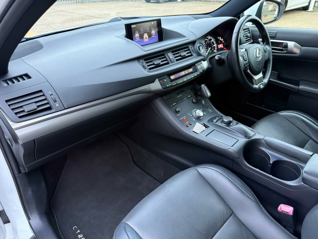 This 2014 Lexus CT 200h F Sport presents a compelling proposition with its remarkably low mileage of just 80,000 miles and a history of only two owners, all supported by a clear vehicle history check. Under the bonnet, you'll find an efficient 1.8L petrol hybrid engine, compliant with Euro 6 emissions standards, offering a blend of performance and economy. Inside, the F Sport trim boasts luxurious black F SPORT leather upholstery, heated front seats for added comfort, and electric adjustment for the driver's seat with memory function. Convenience is further enhanced by the Smart Entry and Start System, allowing keyless entry and ignition, and rear parking sensors to aid manoeuvring.This Lexus CT 200h F Sport stands out from other vehicles in its class due to several key advantages. Its low insurance group rating means more affordable running costs, a significant benefit for many drivers. Furthermore, the generous boot space provides ample room for shopping, luggage, or equipment, making it a practical choice for everyday use and longer journeys. The combination of its efficient hybrid powertrain, premium F Sport features, and excellent provenance makes this a well rounded and attractive option. in alloy wheels - f sport darkened, abs - anti-lock braking system, aux connection, airbags - curtain shield, airbags - driver 2-stage, airbags - front knee, airbags - front passenger cut off switch, airbags - front side, airbags - passenger 2-stage, aluminium sports pedals, anti theft system alarm, armrest - front, auto dimming rear view mirror, bas - brake assist system, bluetooth connectivity, bumpers - f sport front and rear, cd-radio, climate control - dual zone, colour screen 7in, cruise control, dab radio, daytime running lights - led, door mirrors - electrical foldable - heated, driving modes - normal-eco-sport-comfort-ev, ebd - electronic brakeforce distribution, electric windows - front and rear, f sport side skirt, front fog lights, grille - front f sport honeycomb, hac - hill assist control, headlights - hid - high intensity discharge-halogen, isofix child restraint system, immobiliser, inlays - metal film, lateral damping system, parking assistance - front sensor, parking assistance - rear sensor, power steering - electric speed sensitive, push start button, rain sensitive windscreen wipers, rear privacy glass, remote rotary dial, scuff plates - f sport, seats - front electric adjustment with memory, seats - front heated, seats - lumbar support, seats - passengers 4-way adjustment, seats - passengers electric adjustment, shark fin antenna, smart entry and start system, space saver spare wheel, speakers x6, speed sensitive auto door lock, spoiler - roof f-sport, steering wheel - leather-f sport, steering wheel - tilt and telescopic, suspension - f sport, tpws - tyre pressure warning system, trc - traction control system, taillights and active brake lights - led, usb input, vsc - vehicle stability control, f sport leather - black