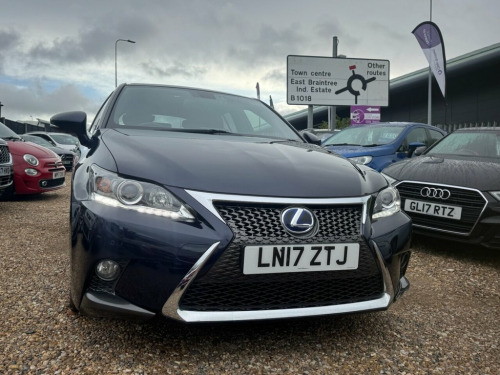 This 2017 Lexus CT 200h 1.8 200h F Sport Hatchback 5dr Petrol Hybrid CVT E Hatchback is currently available for £13,239 in Braintree Essex with Automatic gearbox. For more information or to arrange a viewing, click here to send us an email using form below.