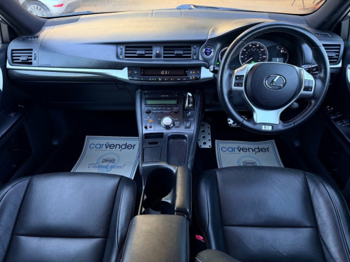 At Carvender we are introducing The 2013 Lexus CT 1.8 200h F Sport Hybrid 5dr. The 2013 Lexus CT is a premium compact hybrid hatchback that offers a blend of luxury, efficiency, and advanced technology. This 200h is powered by a 1.8 litre hybrid engine paired with an electric motor and delivers an efficient and eco-friendly driving experience with 136 brake horse power. The Lexus CT boasts a sleek and sophisticated exterior design, characterized by elegant lines, a bold grille, and stylish LED headlights. This CT 200h is equipped with a range of advanced technology features to elevate the driving experience including Reversing & Front Parking Sensors, Reversing Camera, Cruise Control, Leather Heated Seats and much more. Please refer to advert photos for more features. This Lexus Is very fuel efficient and affordable only £20 Road Tax for 12 month. This Lexus is very rear low mileage and has been looked after very well as we have 5 services in the file. Services have been carried out at the mileages of 10029, 14158, 23000, 27435 and 31120 on 05/10/2025. Do not miss on the opportunity to own this beautiful desirable low mileage car. Contact us today to schedule a test drive or visit our website for home delivery. 17in Alloy Wheels - F Sport Darkened, ABS - Anti-Lock Braking System, Airbags - Curtain Shield, Airbags - Driver 2-Stage, Airbags - Front Knee, Airbags - Front Side, Airbags - Passenger 2-Stage, Aluminium Sports Pedals, Anti Theft System Alarm, Audio System with Speakers x6, BAS - Brake Assist System, Bluetooth Connectivity, Bumper - Front F Sport, Bumper - Rear F SPORT, CD-Radio, Camera - Rear View with Guide Monitor, Climate Control - Dual Zone, Cruise Control, Daytime Running Lights - LED, Door Mirrors - Electrical Foldable - Hea, Driving Modes - Normal-Eco-Sport-Comfort, EBD - Electronic Brakeforce Distribution, Electric Windows - Front and Rear, F Sport Side Skirt, Front Fog Lights, Gri
