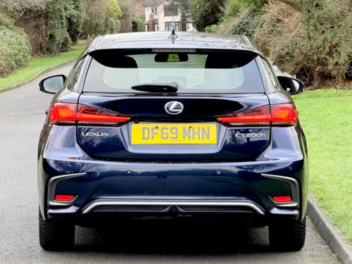 This 2020 Lexus CT 200h presents a superb ownership proposition, having been meticulously maintained by just one owner from new and boasting a clear vehicle history check. This stylish hatchback is powered by an efficient 1.8L petrol hybrid engine, meeting Euro 6 emissions standards. Inside, you'll find a host of desirable features designed for comfort and convenience, including dual zone climate control air conditioning, Sat Nav, Bluetooth mobile phone connectivity, and a reversing camera complemented by rear parking sensors. The advanced Lexus Safety System Plus, which includes adaptive cruise control, further enhances your driving experience. The Lexus CT 200h stands out with its remarkably low CO2 emissions, making it an environmentally conscious choice. Furthermore, its placement in a low insurance group means that running costs are kept to a minimum, offering excellent value for money. These factors combined indicate that this particular vehicle offers a superior ownership experience compared to many others in its class, blending sophisticated technology with practical, economical motoring. Deep Blue, 17in Alloy Wheels, 2x Coat Hooks in Rear, 2x Cup Holders in Centre Console, 2x Map Pockets in Rear of Front Seats, 2x Sun Visors with Vanity Mirror and Lam, 2x USB Sockets, 4x Tie Down Hooks in Boot, ABS - Anti-Lock Braking System, AUX Socket with VTR Compatibility, Anti Theft System Alarm, Armrest - Front Centre with Storage, BAS - Brake Assist System, Bluetooth Mobile Phone Connectivity, Card Holder in Drivers Sun Visor, Curtain Shield Airbags - Front and Rear, DAB Radio, Daytime Running Lights - LED, Drive Mode Select System, Driver and Front Passenger 2-Stage Airba, Driver and Front Passenger Knee Airbags, Driver and Front Passenger Side Airbags, Driver and Passenger Door Pock