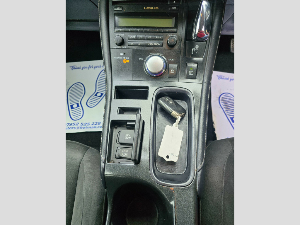 Car has full service history , 2 keys , long mot , roof rack can be removed on customer demand . Discover this 2011 Lexus CT 200h SE-I, a remarkably well preserved example with low mileage for its year, having covered just 99,100 miles. This hybrid hatchback combines a 1.8 litre petrol engine with electric power for efficient driving. The SE-I trim level offers a comfortable and convenient experience, featuring dual zone climate control to keep all occupants happy, and Bluetooth connectivity for seamless integration of your devices.This Lexus CT stands out with its generous boot space, making it a practical choice for everyday use and longer journeys alike. Furthermore, its low insurance group rating indicates that running costs are kept to a minimum, offering excellent value. These factors, combined with the renowned Lexus build quality, position this CT 200h SE-I as a compelling option compared to other vehicles in its class. in alloy wheels, abs - anti-lock braking system, air conditioning, airbags - curtain shield, airbags - driver 2-stage, airbags - front knee, airbags - front side, airbags - passenger 2-stage, airbags - thorax abdomen pelvis - tap, anti theft system alarm, auto door locking, bas - brake assist system, bluetooth connectivity, cd-radio, central locking, climate control - dual zone, door mirrors - electrically adjustable and heated, ebd - electronic brakeforce distribution, esc - electronic stability control, front fog lights, isofix child restraint system, power steering - electric speed sensitive, push start button, rain sensitive windscreen wipers, rear privacy glass, seats - front 6-way manual adjustment, speed sensitive auto door lock, steering wheel - leather, tpws - tyre pressure warning system, trc - traction control system, taillights and active brake lights - led, usb multimedia jack, vsc - vehicle stability control