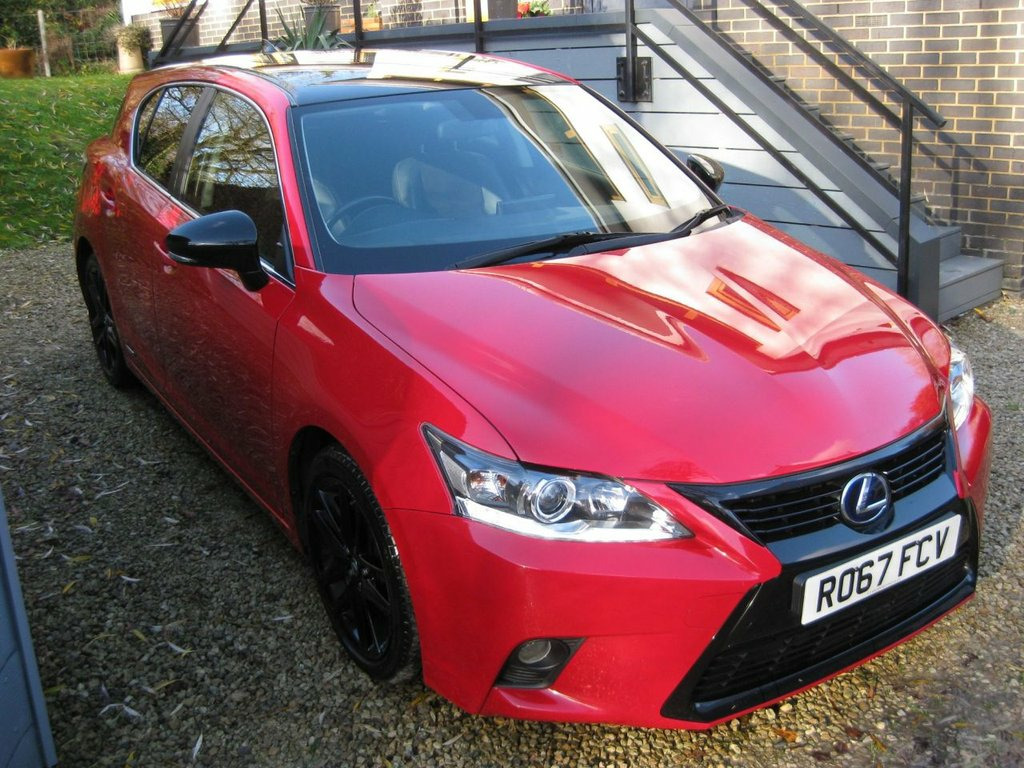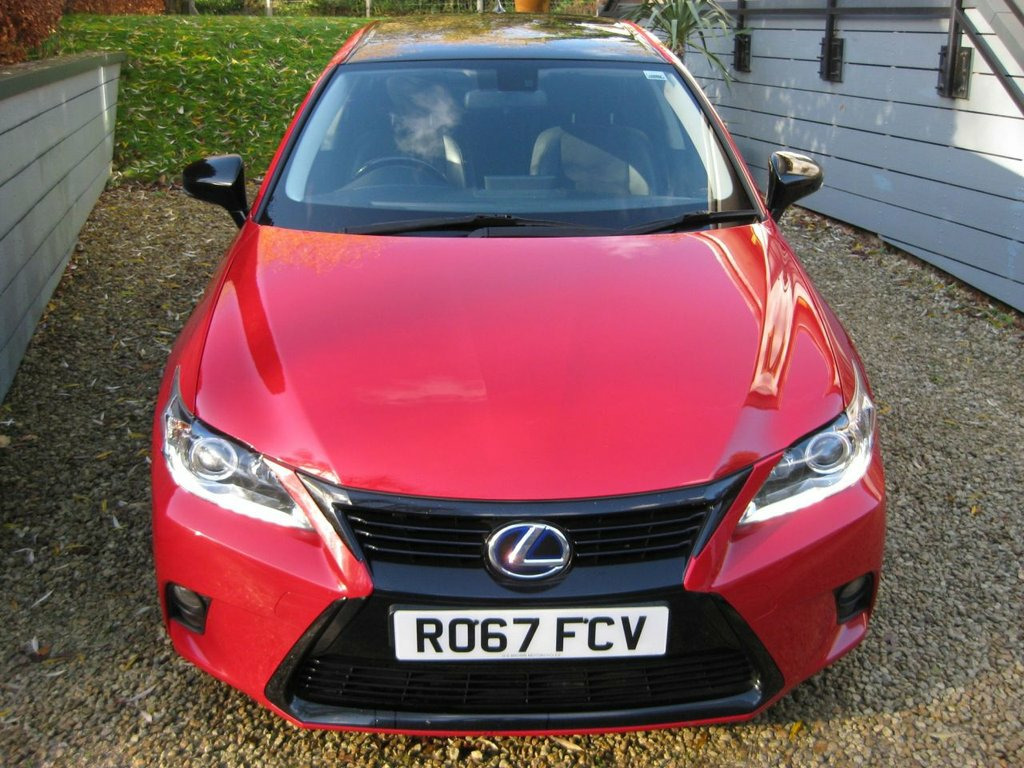 Fuji Red with Black Leather and Alcantara. Full Lexus service history by 2 owners. Navigation, Bluetooth and USB connection. DAB radio. Daytime LED running lights. Rain sensor. Cruise control. Reverse camera. Electric folding exterior mirrors. Leather multi function steering wheel. Sport package including 17'' Black alloy wheels, black roof, sports suspension and black mirror caps. All handbooks, keys and documentation. Full Lexus history recorded in original service book with invoices. Services completed at 8.8k, 22.1k, 41.3k, 55.7k, 73k, 84.5k and recent full service at 93.6k with Lexus Hybrid health check pass certificate. This Lexus was purchased and serviced locally, it has had two owners in total the last of which purchased the car at 11 months old. Full pre sale inspection done and MOT until December 2026 with no advisory notes. Sport Pack, Black Roof, Fuji Red, 17in Alloys Wheels - Black Gloss, 2x Coat Hooks in Rear, 2x Cup Holders in Centre Console, 2x Map Pockets in Rear of Front Seats, 2x Sun Visors with Vanity Mirror and Lam, 2x USB Sockets, 4x Tie Down Hooks in Boot, ABS - Anti-Lock Braking System, AUX Socket with VTR Compatibility, Anti Theft System Alarm, Armrest - Front Centre with Storage, BAS - Brake Assist System, Bluetooth Mobile Phone Connectivity, Card Holder in Drivers Sun Visor, Cruise Control, Curtain Shield Airbags - Front and Rear, DAB Radio, Daytime Running Lights - LED, Driver and Front Passenger 2-Stage Airba, Driver and Front Passenger Knee Airbags, Driver and Front Passenger Side Airbags, Dr