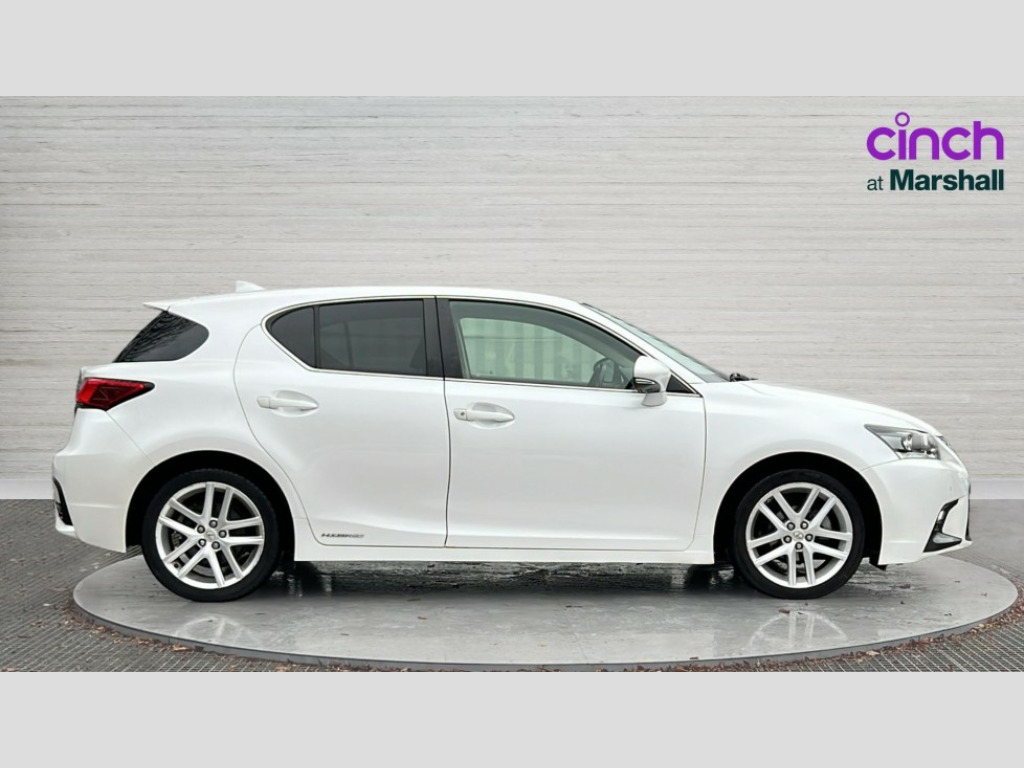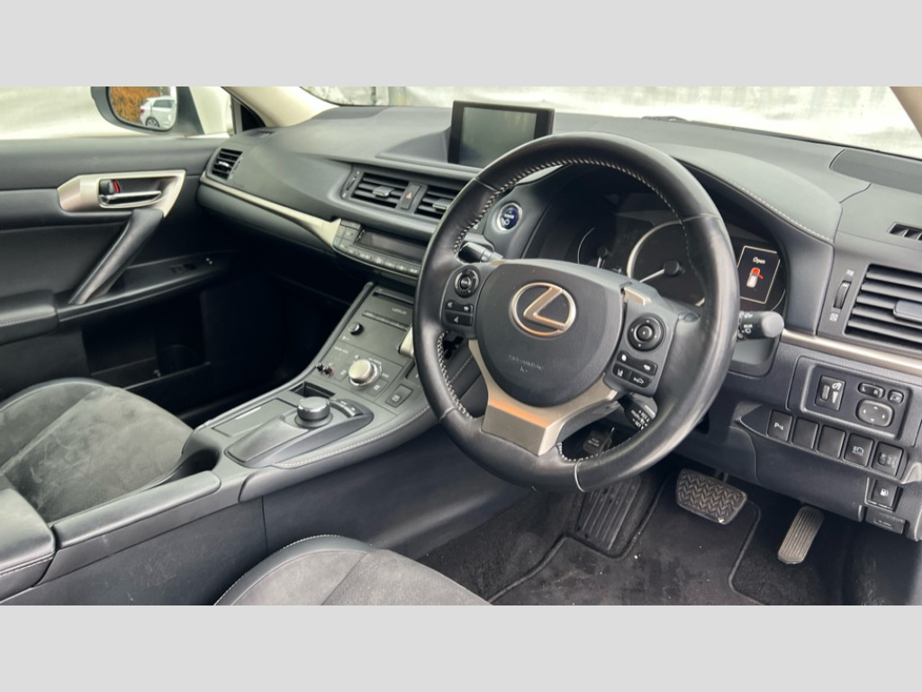 Lexus CT 200h 1.8 Luxury 5dr CVT 7" colour screen, Adaptive cruise control, Bluetooth telephone connectivity, Drive mode selector, Front and rear parking sensors, Lexus Navigaton System, Push button starter, Reversing camera, Speed sensitive power steering, Traffic sign recognition, Trip computer, Vehicle Dynamics Integrated Management, Vehicle Stability Control (VSC), 6 speakers, Auxiliary input socket, DAB Digital radio, Radio/CD + MP3, Steering wheel audio controls, USB connection, Adaptive rear spoiler, Auto high beam, Black scuff plates, Body colour bumpers, Door mirror puddle lights, Electric adjustable door mirrors, Electric folding door mirrors, Front and rear electric windows, Front fog lights, Green tinted UV reducing windscreen glass, Heated door mirrors, LED brake lights, LED daytime running lights, LED tail lights, Privacy glass (rear side windows and rear screen), Rain sensor windscreen wipers, Rear diffuser, Rear wiper, Shark fin roof aerial, 2 cupholders in front centre console, 4 load securing hooks in luggage area, 5 headrests, 60/40 split folding rear seat, Carpet mats, Centre arm rests, Driver/passenger sunvisors with illuminated vanity mirrors, Dual zone climate control, Front door pockets, Heated front seats, Illuminated entry system, Isofix child seat attachment, Leather steering wheel, Leather upholstery, Manually adjustable front seats - 6 way driver/4 way passenger, Map pocket on front seat backs, Rear armrest, Rear coat hook, Storage compartment in centre console, Storage compartment under load area floor, Tilt/telescopic adjustable steering wheel, ABS, Brake assist function, Curtain shield airbag, Driver and passenger side airbags, Drivers knee airbag, Dual stage driver/passenger airbags, Electronic brake force distribution, Front seatbelt pretensioner, Hill start assist control (HAC), Passenger airbag cut-off device, Passenger knee airbag, Pre crash system, Seatbelt warning, Sway warning system, Three 3 point rear seatbelts, Traction control, Tyre pressure warning, WHIPS whiplash protection system - front, Anti theft system, Double locking, Immobiliser, Intrusion sensor and alarm, Locking wheel nuts, Remote central locking, Smart entry + Smart start, Speed sensitive power door locks, VIN Window etching, Space saver spare wheel