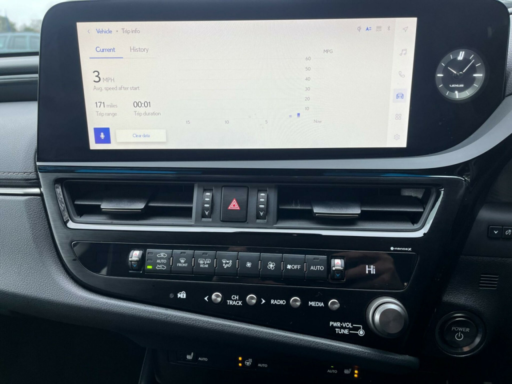FACE LIFT TOUCH SREEN MODEL. EXCEPTIONAL CONDITION BOTH INSIDE AND OUT. LEXUS PRE REGISTERD CAR AND ONE OWNER. FULL SERVICE HISTORY. SUPPLIED FULLY SERVICED BY LEXUS WITH A 12 MONTH LEXUS WARRANTY. THIS CAR WILL NOT DISSAPOINT. PART ECHANGE WELCOME. GREAT FINANCE OPTION'S AVAILABLE. 2023 Lexus ES 300h boasts a full service history and a clear vehicle history check, offering peace of mind for its next owner. This sophisticated saloon features a 2.5 litre petrol hybrid engine, compliant with Euro 6 emissions standards, and comes with a 12 month warranty and 12 months MOT provided on purchase. The Premium Pack enhances the driving experience with automatic headlights and a reversing camera with guide lines for easier parking. Inside, you'll find comfortable front seats with Tahara trim, 8 way power adjustment, headrest adjustment, and heating, alongside Bluetooth connectivity for seamless device integration.The Lexus ES 300h stands out with its impressive fuel economy, achieving a remarkable 54 miles per gallon, which indicates its efficiency compared to other vehicles in its class. Furthermore, its low CO2 emissions highlight its environmentally conscious design. With its last service completed at 31,000 miles, this well maintained Lexus ES 300h is ready for many more miles of refined driving., xus navigation, premium pack, smooth leather - black, 1 eye 2 led headlights with ahb, 1-cd, 10-speaker pioneer audio with 1-cd, 12v accessory connector, 17in alloy wheels, 2 cup holders in front centre console, 2 usb ports for charging in rear of centre console, 2 usb ports in front centre console, 2 x isofix child rear seat restraints, 2- zone driver and passenger auto ac with climate concierge and nanoe ion generator, 2-way - driver and passenger lumbar support, 4 driving modes - normal - ev - eco and sport, 4x tie down hooks in boot, 8in display screen with remote touch interface, abs - anti-lock braking system, agc - auto glide control, aux connection, acoustic noise reducing front windscreen, adjustable seat belt anchor points, aluminium front scuff plates with lexus logo, analogue clock with illumination led, anti theft system alarm, apple carplay and android auto, armrest - front centre with storage, auto headlight function, auto levelling headlights, auto-dimming interior rear view mirror, bsm - blind spot monitor with rctab - rear cross traffic alert and auto brake, black grain inlay, bluetooth connectivity, card holder installed in the drivers and passengers sun visors, centre rear seatbelt - 3 - point seat belts with elr - emergency locking retractor, cornering lights, curtain shield airbags - front and rear, dab radio, door pockets front and rear, drive mode select controller, driver and front passenger 2-stage airbags, driver and front passenger knee airbags, driver and front passenger side airbags, epb - electronic parking brake, eps - electric power steering - speed sensitive, easy entry and exit facility - steering wheel tilt and telescopic, electric windows - one touch power front and rear with anti-jam protection, engine immobiliser, fixed rear seat with luggage pass through, folding heated auto dimming wide angle outside mirrors, front and rear seat belts with pre - tensioners 3-point elr - emergency locking retractor, green uv glass with water repellent coating on front side windows, hac - hill-start assist control including brake hold, headlight cleaners, headlights - follow me home function, hooks for shopping in luggage compartment, intelligent parking sensors 4x - front and 4x- rear with brake function, led ambient lighting, led daytime running lights, led rear lights, lane change flasher function, leather shift knob, leather steering wheel, lexus link connected services, lexus safety system plus, locking wheel nuts - thatcham approved, luggage compartment side storage under deck board, passenger airbag cut off switch, power adjustable steering wheel - paddle shift with lock protect, push button start, rear armrest with 2 cup holders - storage, rear outer passenger side airbag, rear spoiler, reversing camera with guide lines, seat - tahara trim - front 8 way power adjust including headrest with heater, smart entry and start system, speed sensitive auto door lock, sunroof, tpms - tyre pressure monitoring system, trc - traction control system, textile carpet mats, two motion door lock - double lock, tyre repair kit, vdim - vehicle dynamics integrated management, vin etching, vsc - vehicle stability control
