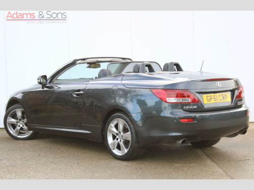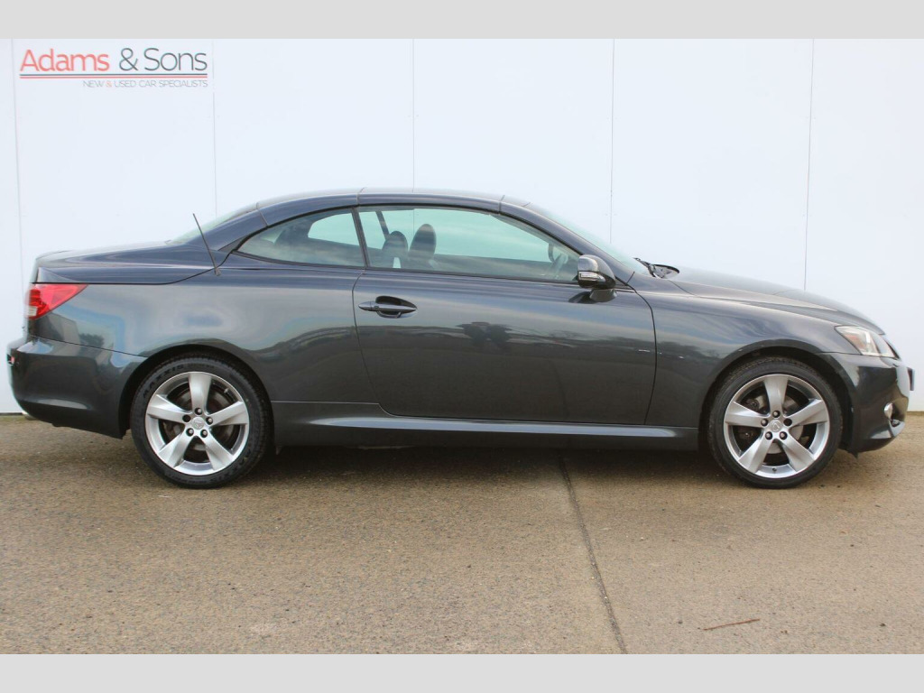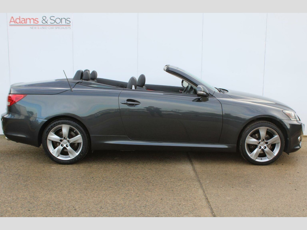 Fantastic specification example of this super rare 2011 (61 plate registered) Lexus IS250 2.5 V6 automatic cabriolet. Very good looking car finished in striking Smoky Granite Mica Grey against contrasting red and black heated/cooled leather interior. This particular low mileage for the year IS250 benefits from a fully documented Lexus main dealer service history record from new containing 11 services matched to both keys really honours the provenance of this two owner car from new. Specification includes optional Red /Black leather interior, electric memory seats, Satellite navigation, bluetooth telephone, rear parking camera, keyless entry, automatic headlights, automatic wipers and metallic paint. A fantastic opportunity to own a hard to find hard top convertible with Lexus refinement and equipment. Low rate hire purchase /PCP funding plans available upon request (subject to applicant credit score). Here at Adams and sons we do not charge any dealer administration fees and pride ourselves on paramount customer service. Adams & Sons make every effort to ensure vehicle details on this listing are correct. However, the vehicle specifications can sometimes differ from that shown. Please satisfy yourself that a vehicle has a specific feature that is important to you before purchasing. Our staff will be happy to assist you.