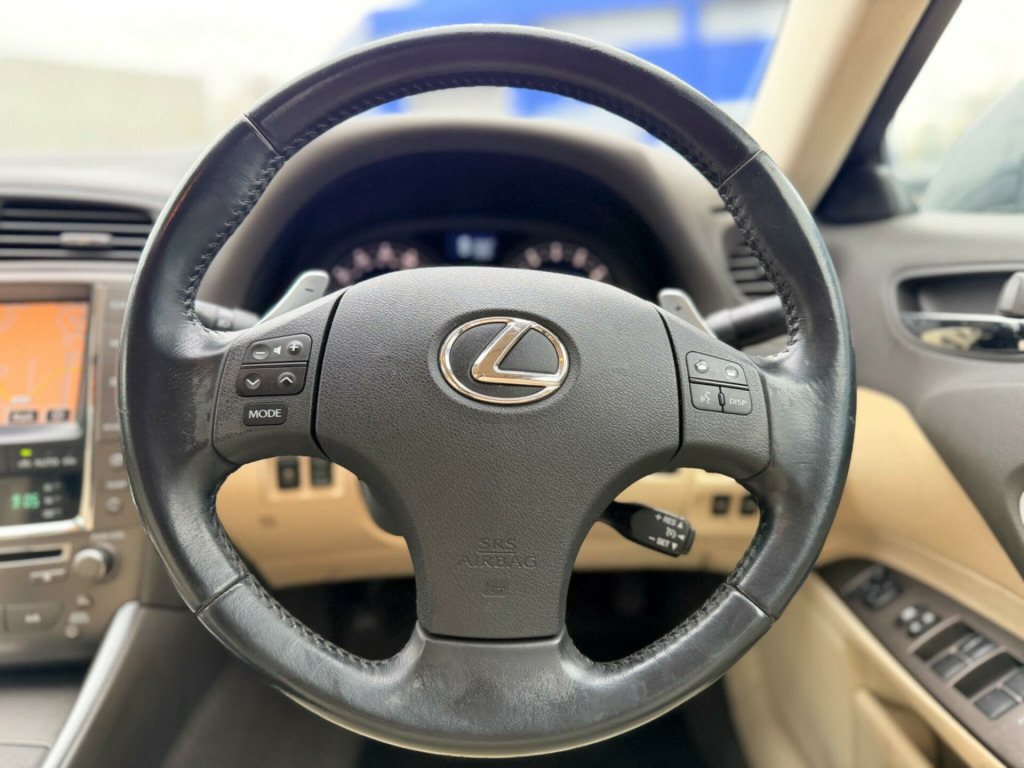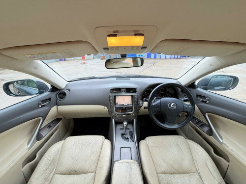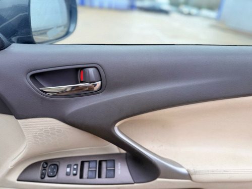 We Are Selling Lexus IS 250 Se-i Automatic 250 v6 Grey Colour Convertible 2499cc Petrol Car Comes With Full Specs On ** Air Condition ** Electric Windows ** Adjustable Seats & Steering ** Parking Sensors **Reversing Camera**Navigation** Cruise Controller **SEPT Expires MOT **Full Service History/Partially From Main Dealer** ULEZ FREE ** HPI Clear**Cream Leather Interior**Heated Seats **02 Keys**01 Owner Car Only From New**Warranted Low Mileage Car Only 74k ** Central Locking ** AUX** Central Locking ** Alloys ** Very Well Maintained Neat & Clean Car Inside Out Drives Perfectly Fine ** Warrenty Available ** Nationwide Delivery Available ** Part Exchange Welcome . justable steering column/wheel, air bag driver, air bag knee, air bag passenger, air bag side, alarm, alloy wheels (17in), anti-lock brakes, armrest, carpet, central door locking, centre rear seat belt, climate control, cruise control, deadlocks, electric windows (front/rear), electronic brake force distribution, electronic stability programme, front fog lights, gear knob leather, head restraints, immobiliser, in car entertainment (radio/cd autochanger/mp3), mirrors external (memory electric/folding), parking aid (front/rear), power-assisted steering, seat - isofix anchorage point, seat height adjustment, seats electric (driver/passenger), seats heated (driver/passenger), spare wheel (space saver), speakers, steering wheel leather, tinted glass (rear windows), traction control system, upholstery leather