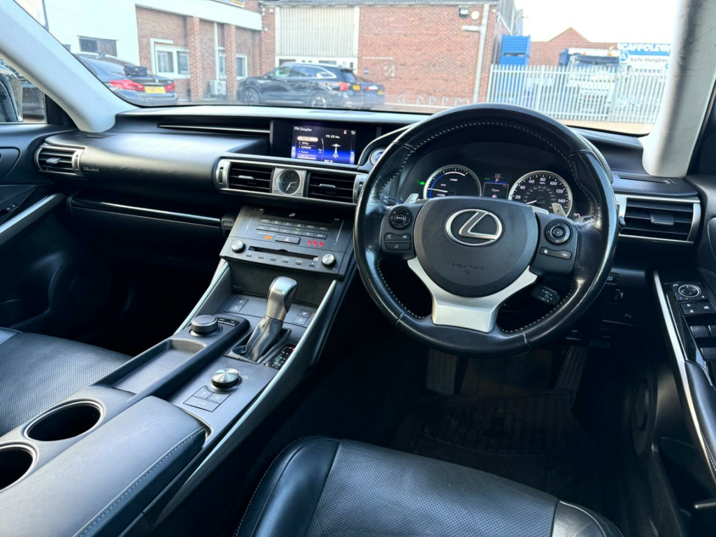 This 2016 Lexus IS 300h Advance is presented with a clear vehicle history, offering peace of mind for its next owner. This stylish saloon features a 2.5 litre petrol hybrid engine, compliant with Euro 6 emissions standards. The Advance trim level ensures a well equipped driving experience, enhanced by features such as front parking sensors to aid manoeuvrability, and Bluetooth connectivity for seamless integration of your devices.Inside, you will appreciate the comfort provided by the heated and ventilated front seats, perfect for any season, alongside the dual zone climate control that allows personalised temperature settings for both driver and passenger. The smart entry and start system adds a touch of modern convenience, allowing you to unlock and start the car without needing to reach for your keys. These thoughtful additions demonstrate the Lexus commitment to a refined and practical driving experience. in alloy wheels, abs - anti-lock braking system, asc - active sound control, aux connection, airbags - curtain front and rear, airbags - driver, airbags - front knee, airbags - front side, airbags - manual cut off switch, airbags - passenger, airbags - rear passenger side, analogue clock, antenna in rear glass, anti theft system alarm, armrest - front, armrest - rear, bas - brake assist system, bluetooth connectivity, camera - rear view, climate control - dual zone, colour screen 7in, cruise control, cup holders - front x2, cupholders x2 - in rear armrest, dab radio, daytime running lights - led, door mirrors - electrical foldable - heated, door mirrors - puddle lights, driving modes - normal-eco-sport-comfort-ev, ebd - electronic brakeforce distribution, ecb - electronically controlled braking, electric windows - front and rear, electrochromatic rear view mirror, front fog lights, full map navigation - europe, glove box insert - black gloss, hac - hill assist control, headlights - dusk sensor, headlights - washers, headlights - xenon, isofix child restraint system, immobiliser, leather gear stick, lexus display audio - 1 cd, multimedia coordination function, puh - pop up hood, parking assistance - front sensor, parking assistance - rear sensor, power steering - electric, rain sensitive windscreen wipers, rear and brake light - led, remote rotary dial, satellite navigation - lexus navigation system, seats - 60-40 split folding rear, seats - drivers 2-way lumbar support, seats - front 8-way electric adjustment-heated-sports, seats - front heated and ventilated, seats - front height adjustment, seats - lumbar support, smart entry and start system, speakers x6, steering column - manual adjustment, steering wheel - 3 spoke leather, steering wheel - paddle shift, tmc-tpeg - traffic information, tpws - tyre pressure warning system, trc - traction control system, tyre repair kit, usb input, vdim - vehicle dynamics integrated management, vsc - vehicle stability control, voice control capability, leather - electric and ventilated - grey