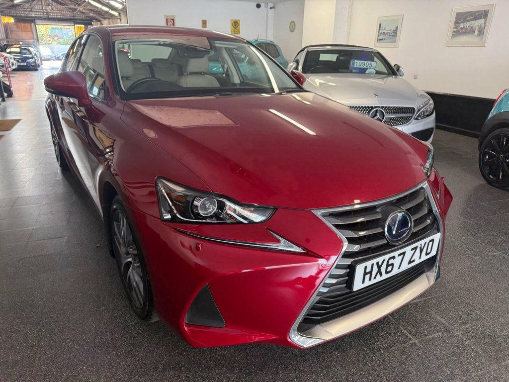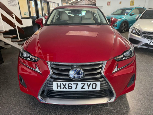 1 Private Owner. Rear Camera and Hot and Cold Electric leather Seats. Supplied with a Lexus Service and 12 months Lexus Warranty. ULEZ Compliant. This Elegant Lexus IS 300H Advance Edition Automatic with Paddle shift is finished in Metallic Mesa Red with Cream heated and ventilated electric seats. Its is fitted with rear camera, Lexus Media Navigation, DAB with USB, aux port, Bluetooth, LED Lights, 17" Alloys, power fold mirrors, hill assist, Lane Departure warning, Speed Limit Assist, Pre Collision, Cruise control, 2 keys and more. Its had 1 previous owner, and has been serviced by Lexus at 9156/15733/18177/20182/22172 miles. We will supply it with a Lexus Service and 12 Months Lexus warranty, along with 12 Months MOT. This car offers everything in executive comfort. With the economy of Hybrid and performance of petrol power. Its condition is superb throughout for its mileage and has not been smoked in. Its service history and ownership is second to none. 17in Alloy Wheels, 2 Map Pockets in the Rear, 2-Way Electrical Lumbar Adjustment for D, 2x Coat Hooks in Rear, 2x Cup Holders in Centre Console, 2x Sun Visors with Vanity Mirror and Lam, 2x USB Sockets, 3 Spoke Leather Steering Wheel with Padd, 4x Tie Down Hooks in Boot, 60-40 Split Folding Rear Seat with Locki, ABS - Anti-Lock Braking System, Analogue Clock, Anti-Theft System, ASC - Active Sound Control, Auto Dimming Rear View Mirror, AUX Connection, BAS - Brake Assist System, Black Scuff Plates, Bluetooth Mobile Phone Connectivity, Card Holder Installed In the Drivers and, Centre Armrest with Storage, Cruise Control, Curtain Shield Airbags - Front and Rear, DAB Radio, Daytime Running Light