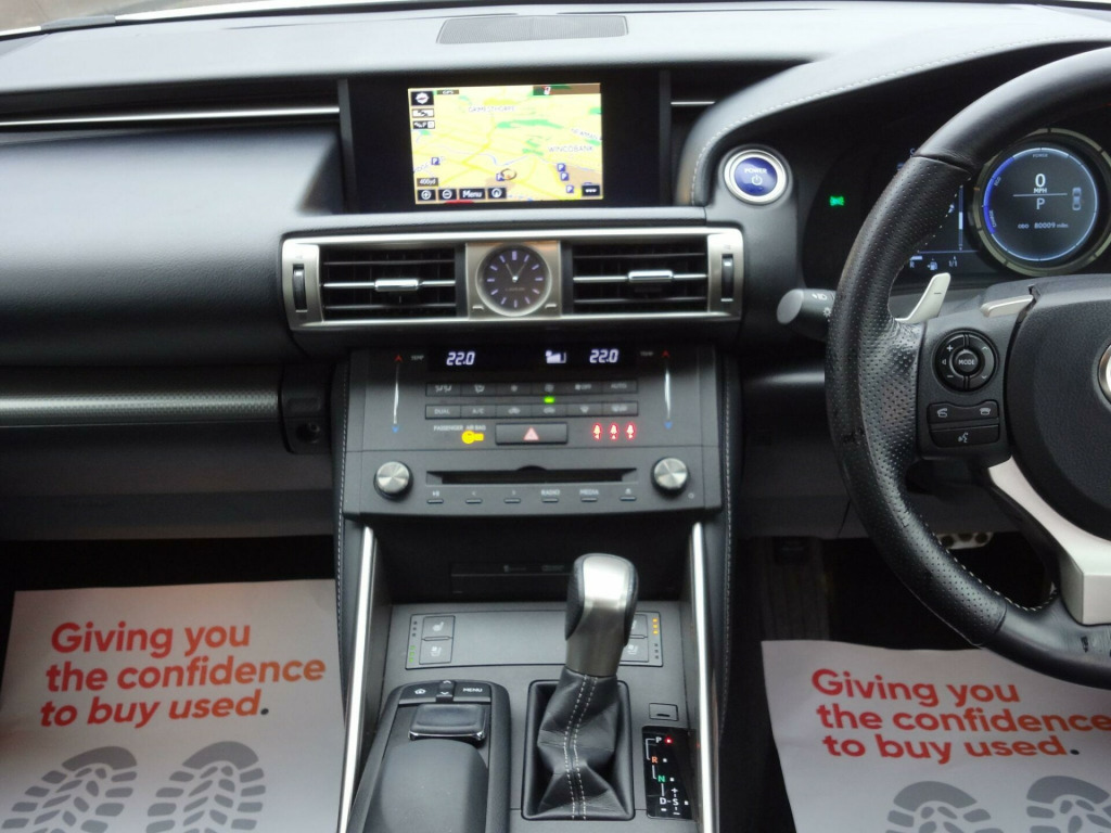 FULL LEXUS MAIN DEALER SERVICE HISTORY, 1 OWNER FROM NEW. £20 PER YEAR ROAD TAX MODEL. 6 MONTHS WARRANTYStunning looking self charging Hybrid F Sport Model. Serviced at Lexus at- 9k, 19k, 29k, 38k, 49k, 60k, 70k and just serviced by ourselves at 79k along with a fresh MOT. Only 1 owner from new. Great specification including- Premium Sat Nav with Mouse Control (rather than the basic rotary dial controller), Heated and Cooled Leather Seats, Electric / Memory Seats, F Sport Bodystyling, Rear Parking Camera, Auto Headlights, Rain Sensing Wipers, Xenon Headlights, Cruise Control, Bluetooth, DAB, Digital Dash Pod, Power Folding Mirrors, Split Folding Rear Seats and much more.FULLY HPI CLEAR AND NEVER BEEN SMOKED IN. Taken in part exchange at the main dealer then supplied directly to ourselves. These Hybrids are incredibly desirable. They charge themselves so no worrying about range, simply let it do its own thing and it will swap between petrol and electric automatically, constantly maintaining its optimum battery use and charging making them incredibly reliable and great on fuel. This one is only £20 to tax for the year too. Stunning looking in the most desirable colour combination and F Sport spec with the addition of the Premium Sat NavIncludes 6 Months Warrantywise Warranty free of charge, a fresh service and mot, ready to drive away. Premium Brand Tyres fitted.. 18in Alloy Wheels - 10 Spoke, ABS - Anti-Lock Braking System, ASC - Active Sound Control, AUX Connection, Airbags - Curtain Front and Rear, Airbags - Driver, Airbags - Front Knee, Airbags - Front Side, Airbags - Manual Cut Off Switch, Airbags - Passenger, Airbags - Rear Passenger Side, Analogue Clock, Antenna in Rear Glass, Anti Theft System Alarm, Armrest - Front, Armrest - Rear, BAS - Brake Assist System, Bluetooth Connectivity, Climate Control - Dual Zone, Colour Screen 7in, Console Knee Pad, Cruise Control, Cup Holders - Front x2, Cupholders x2 - in Rear Armrest, DAB Radio, Daytime Running Lights - LED, Door Mirrors - Electrical Foldable - Heated, Door Mirrors - Puddle Lights, Driving Modes - Normal-Eco-Sport-Comfort-EV, EBD - Electronic Brakeforce Distribution, ECB - Electronically Controlled Braking, Electric Windows - Front and Rear, Electrochromatic Rear View Mirror, F SPORT Leather Gear Lever, F SPORT Titanium Effect Trim, F Sport Insert - Glovebox, F Sport Styling Elements - Interior and Exterior, Front Fog Lights - LED, Grille - F Sport Mesh, Grille - Front F Sport, HAC - Hill Assist Control, Headlights - Dusk Sensor, Headlights - Washers, Headlights - Xenon, ISOFIX Child Restraint System, Immobiliser, LFA - Style Instrument Meters, Lateral Damping System, Lexus Display Audio - 1 CD, Multimedia Coordination Function, PUH - Pop Up Hood, Parking Assistance - Front Sensor, Parking Assistance - Rear Sensor, Power Steering - Electric, Rain Sensitive Windscreen Wipers, Rear and Brake Light - LED, Remote Rotary Dial, Scuff Plates - F SPORT, Seats - 60-40 Split Folding Rear, Seats - Drivers 2-Way Lumbar Support, Seats - Front Heated, Seats - Front Height Adjustment, Seats - Front Sports, Smart Entry and Start System, Speakers x6, Sports Pedals - F SPORT Aluminium, Steering Column - Manual Adjustment, Steering Wheel - Leather-F Sport, Steering Wheel - Paddle Shift, Suspension - F Sport, TMC-TPEG - Traffic Information, TPWS - Tyre Pressure Warning System, TRC - Traction Control System, Tyre Repair Kit, USB Input, VDIM - Vehicle Dynamics Integrated Management, VSC - Vehicle Stability Control, Satellite Navigation - Lexus Navigation System, Leather - Electric and Ventilated - Black, Lexus Premium Navigation System. Full dealership history